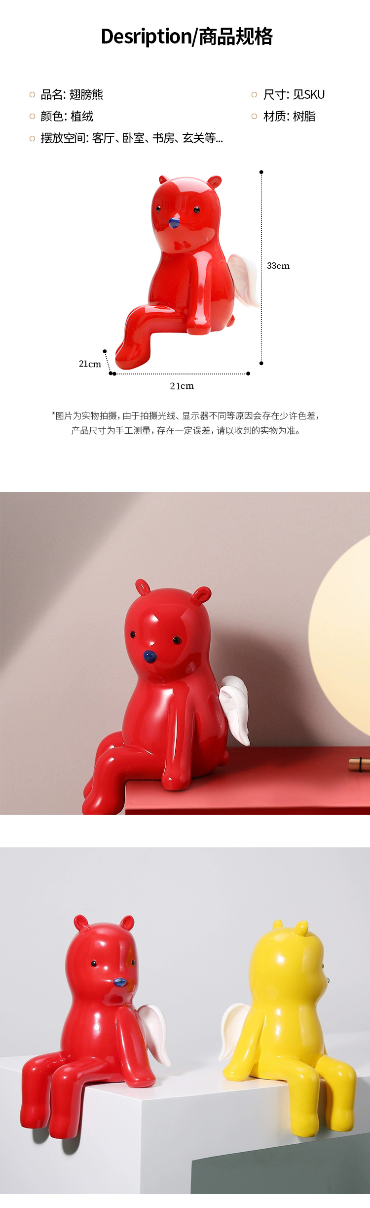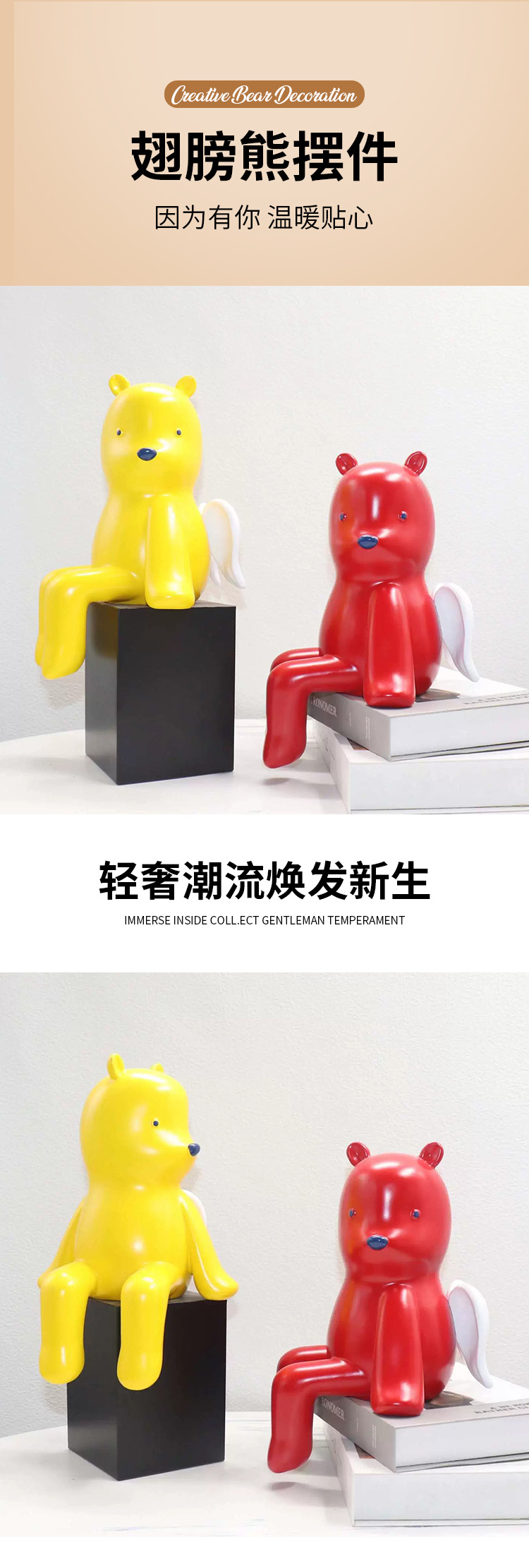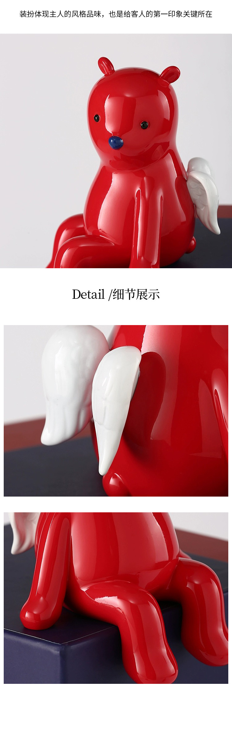 Jinxuan 파빌리온 귀여운 창조적 인 둥지 곰 천사 장식품 가정 장식 빛 고급 거실 책장 TV 캐비닛
