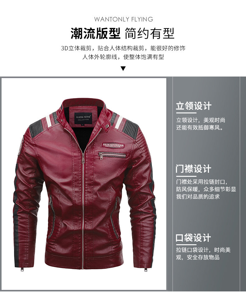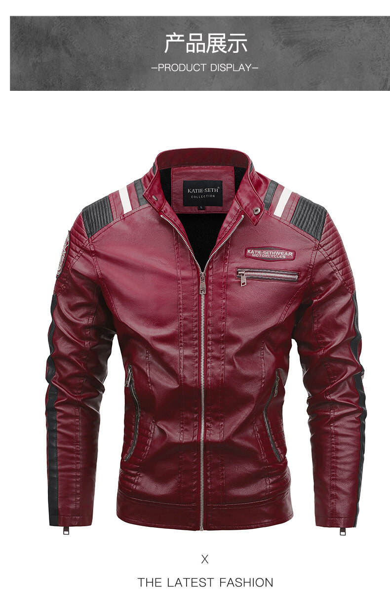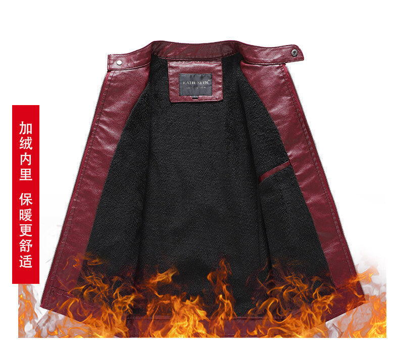 가을과 겨울 새로운 남성 캐주얼 올 매치 코트 PU 가죽 수직 칼라 오토바이 코트가있는 남성용 따뜻한 가죽 자켓스토어 가기