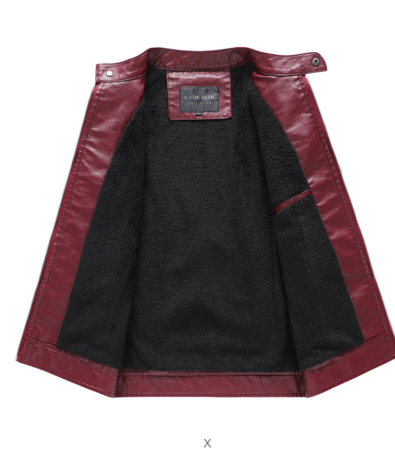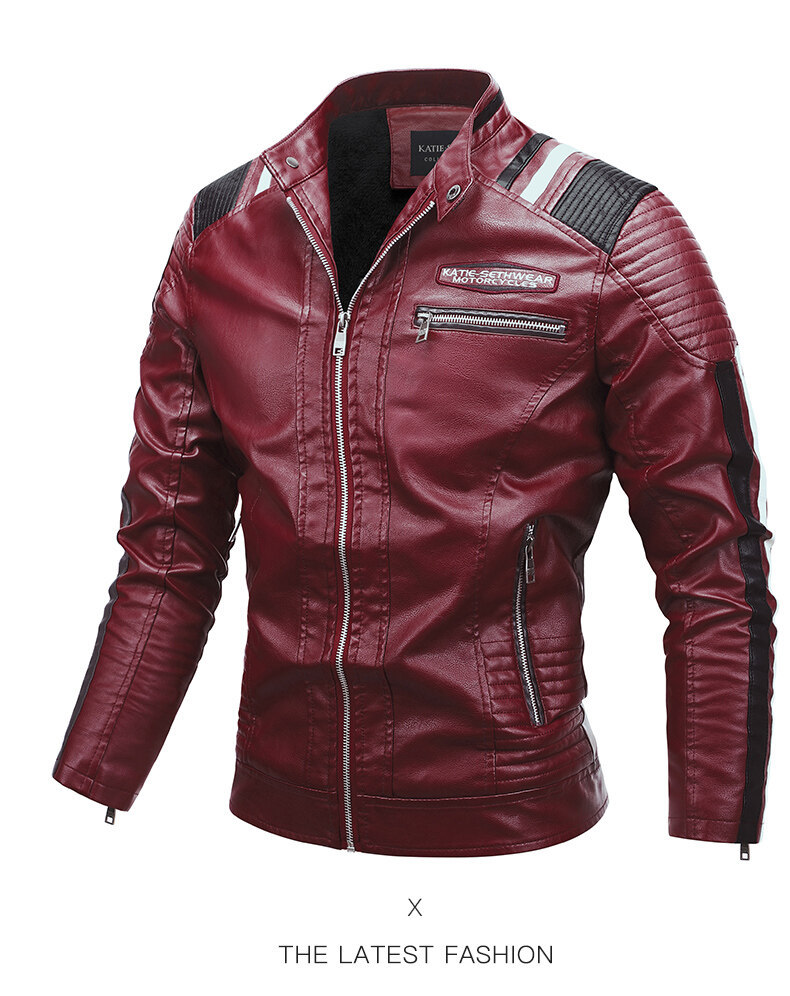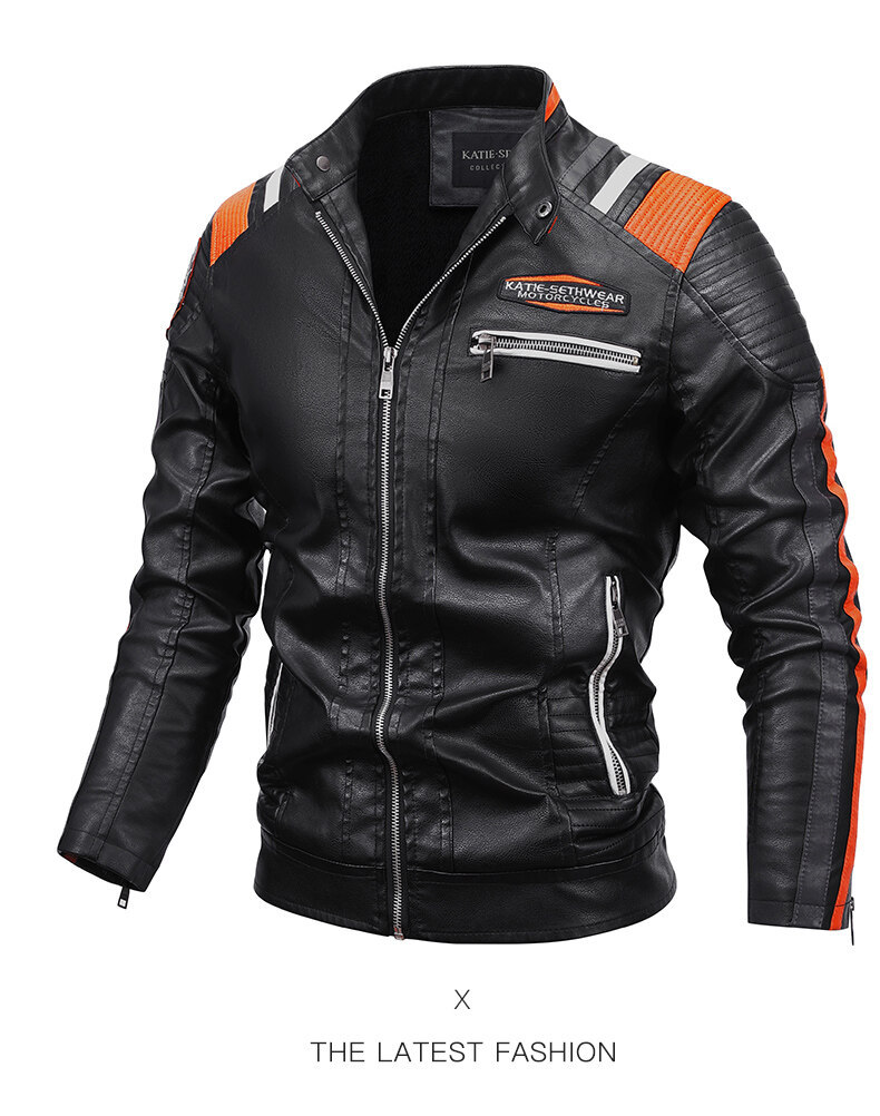 가을과 겨울 새로운 남성 캐주얼 올 매치 코트 PU 가죽 수직 칼라 오토바이 코트가있는 남성용 따뜻한 가죽 자켓