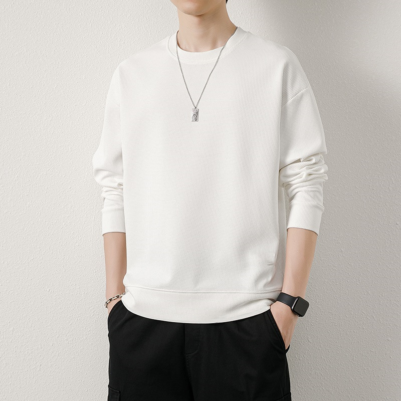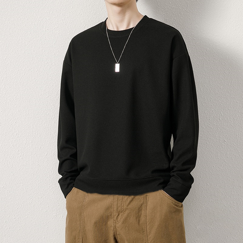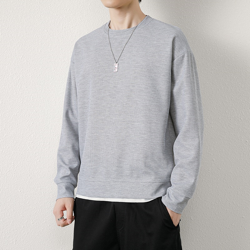 와플 가을 새로운 남자의 트렌디 한 브랜드 느슨한 라운드 넥 긴 소매 캐주얼 느슨한 학생 커플 패션