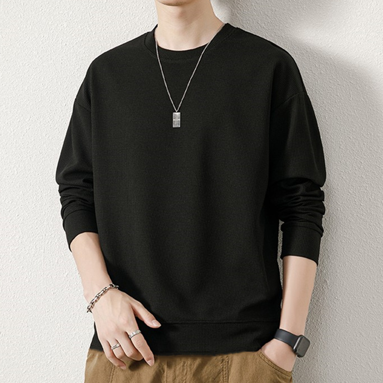 와플 가을 새로운 남자의 트렌디 한 브랜드 느슨한 라운드 넥 긴 소매 캐주얼 느슨한 학생 커플 패션스토어 가기