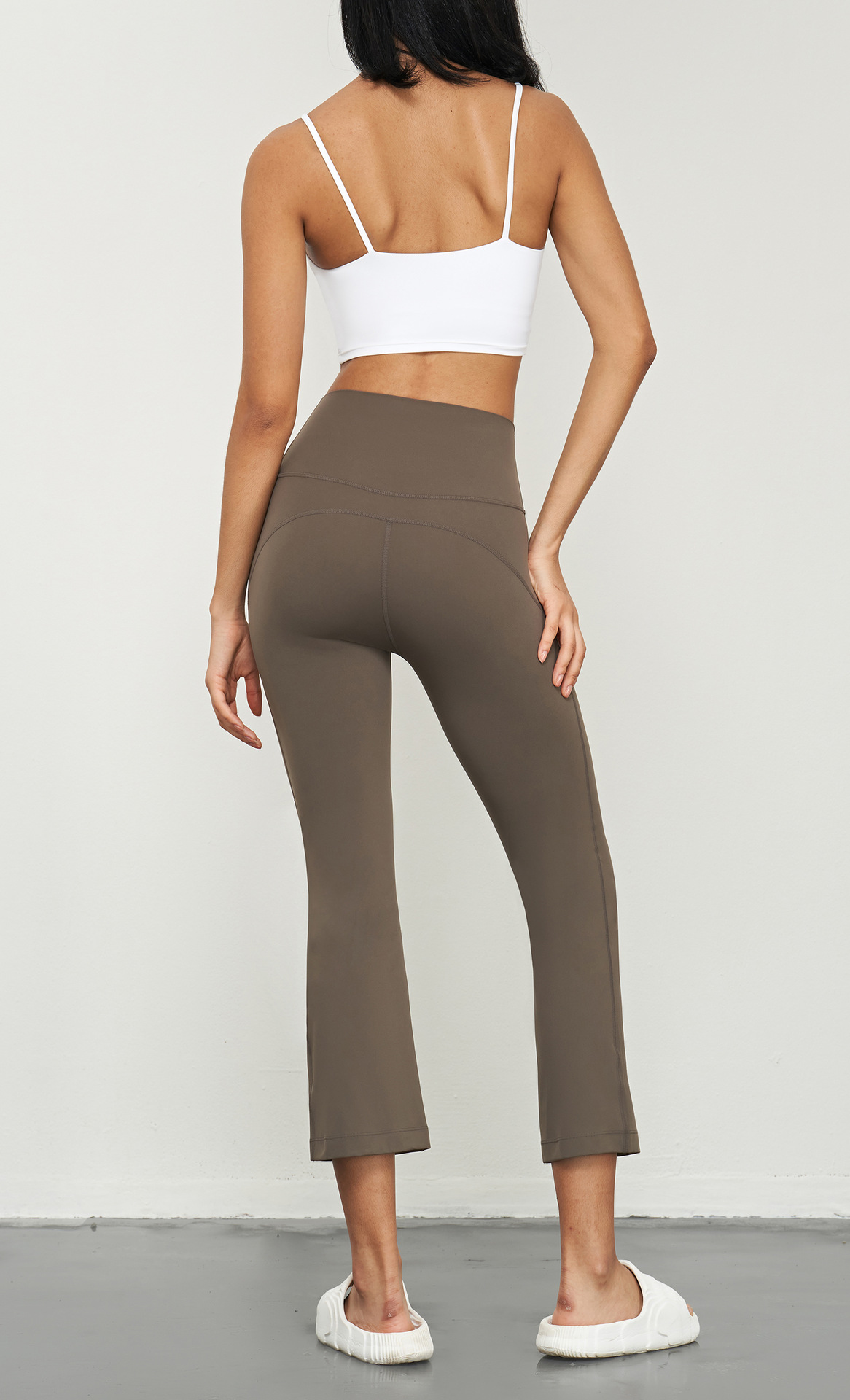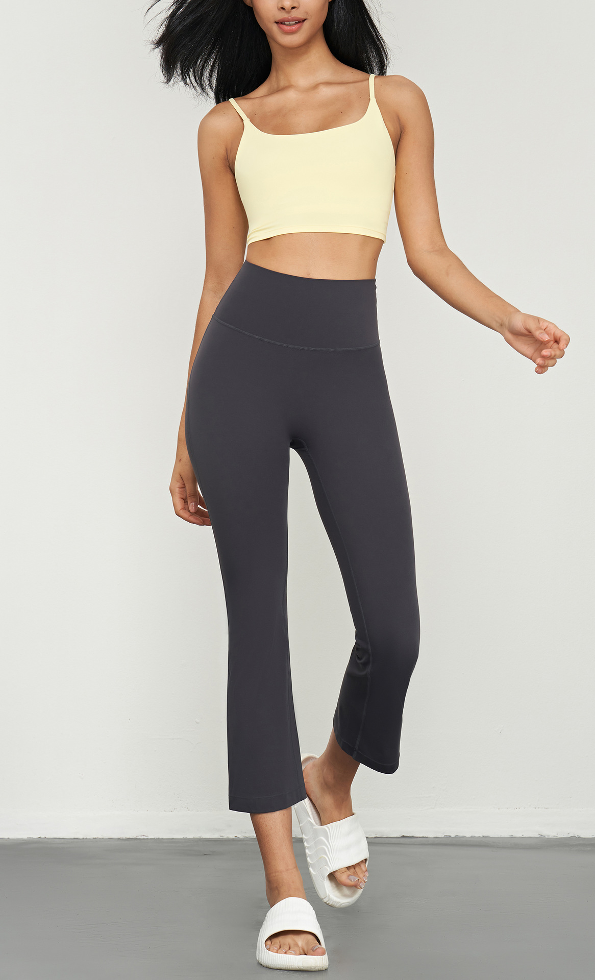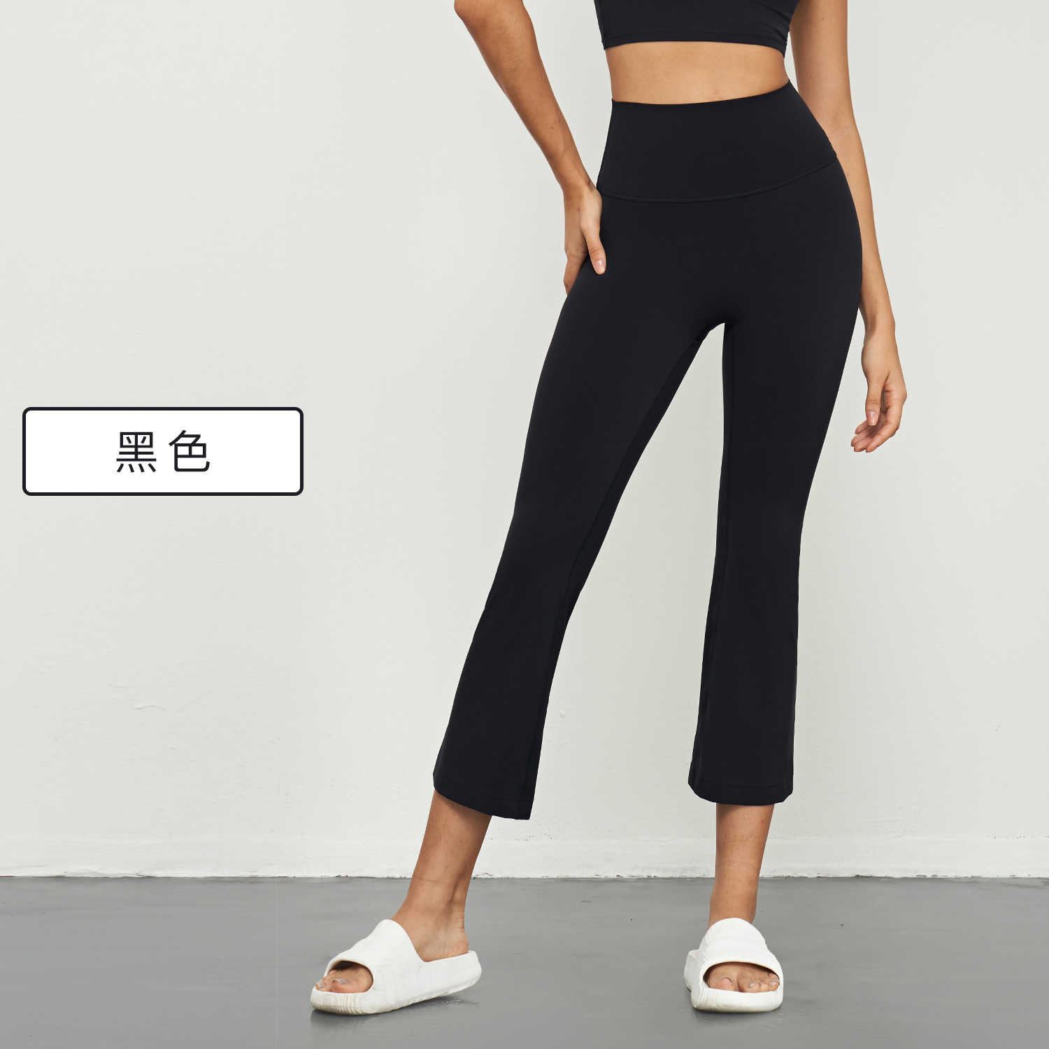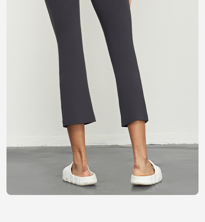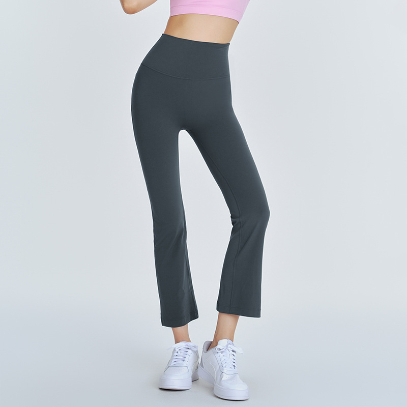 Huanpan 라이크라 마이크로 플레어 요가 바지 하이 웨이스트 배꼽 컨트롤 복숭아 엉덩이 바지 필라테스 피트니스 바지 여성용 꽉 스포츠 바지