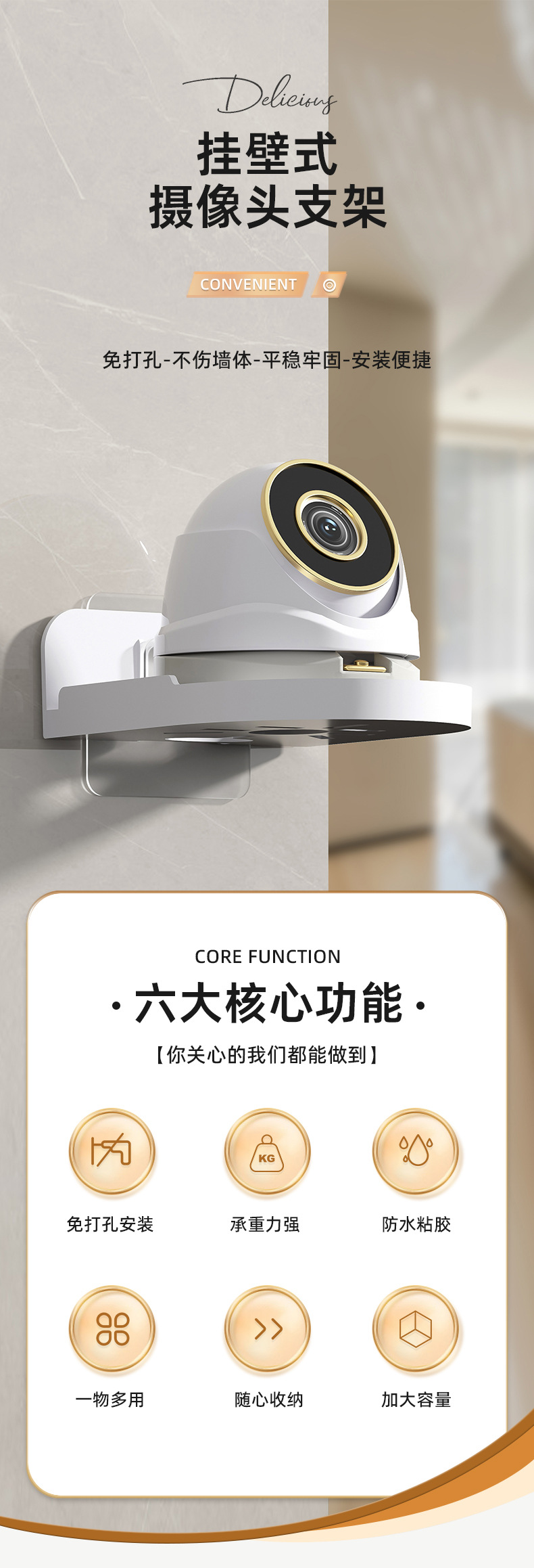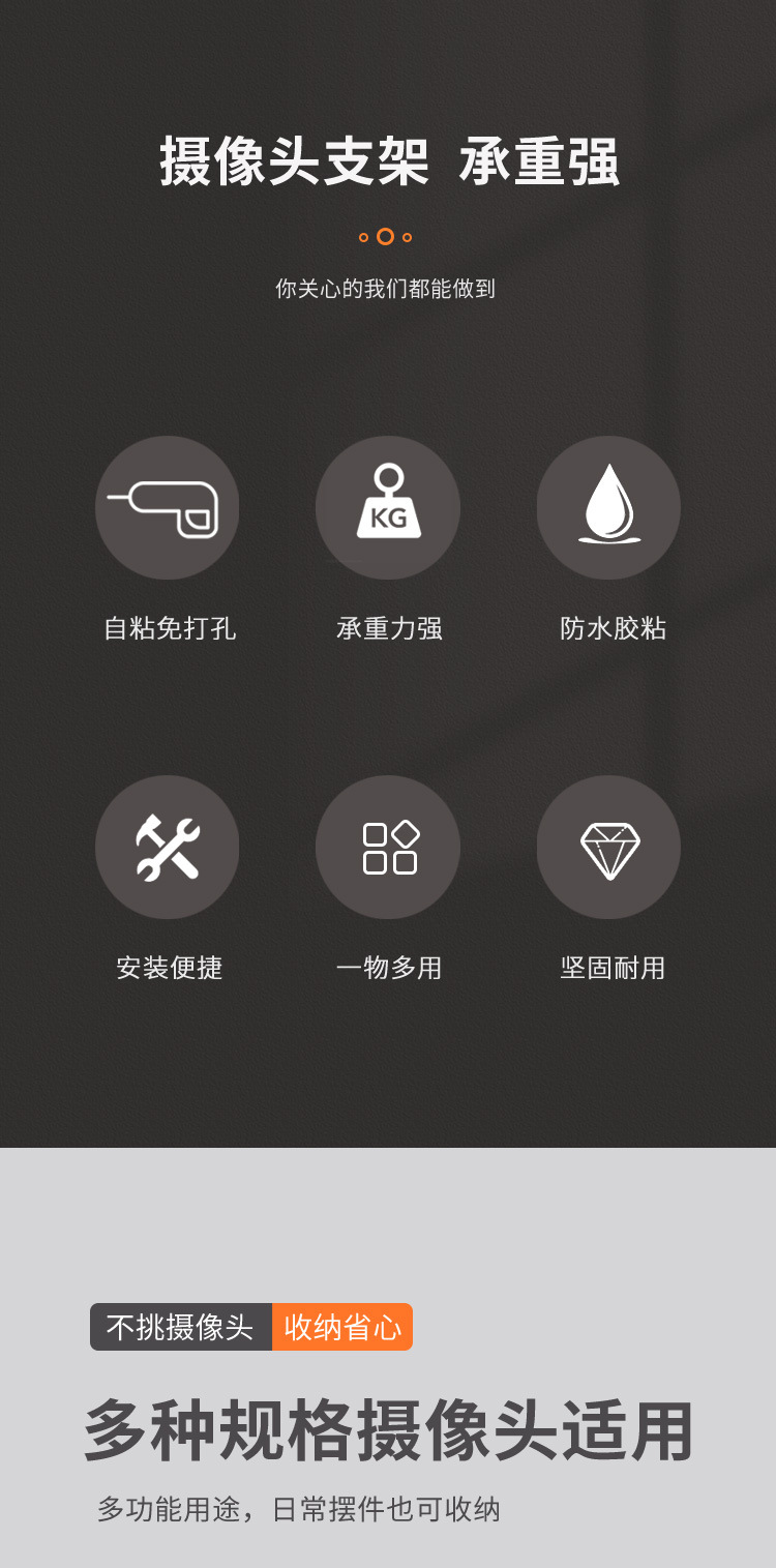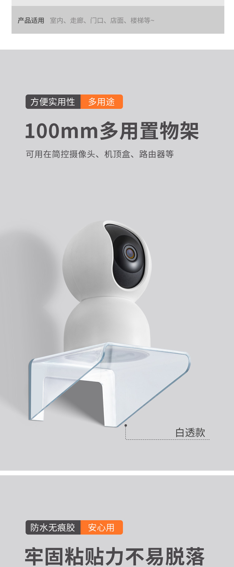 • 商品名称:日式无痕壁挂浴室置物架 监控摄像头支架