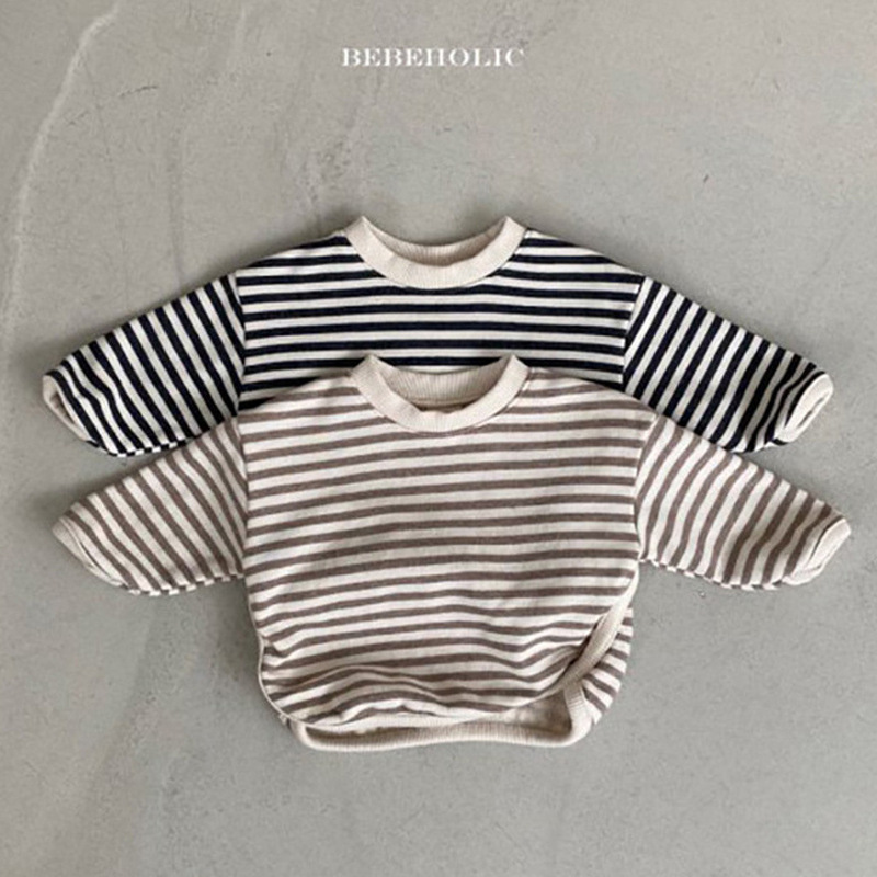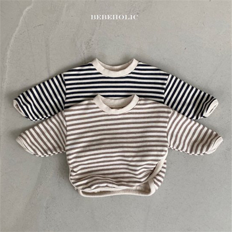 한국 스타일 봄과 가을 옷 아기 소년과 소녀 스트라이프 스웨터 어린이 긴 소매 티셔츠 아기 풀오버 0-2 세스토어 가기