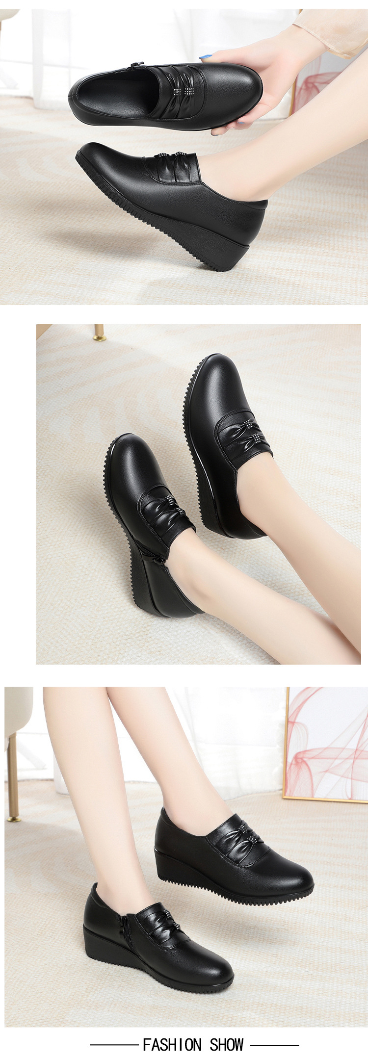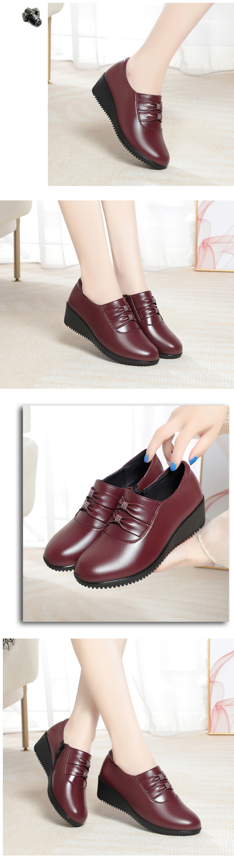 봄과 가을 가죽 신발 부드러운 가죽 중년 어머니 웨지 슈즈 싱글 슈즈 여성용 부드러운 단독 미끄럼 방지 미드 힐 편안한 중년 및 노인 여성 신발스토어 가기