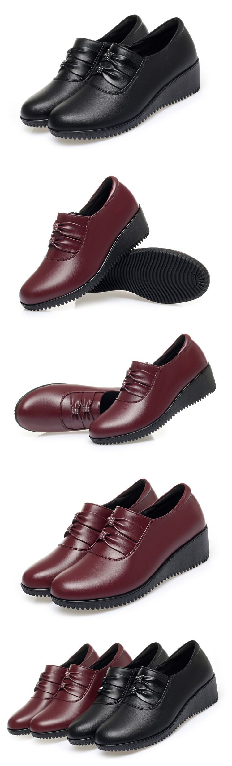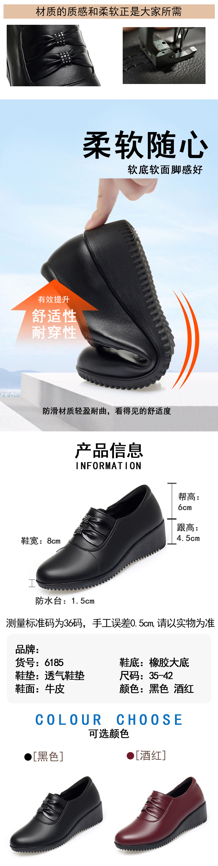봄과 가을 가죽 신발 부드러운 가죽 중년 어머니 웨지 슈즈 싱글 슈즈 여성용 부드러운 단독 미끄럼 방지 미드 힐 편안한 중년 및 노인 여성 신발