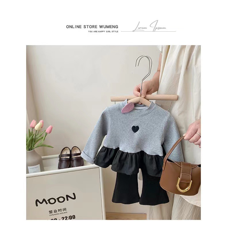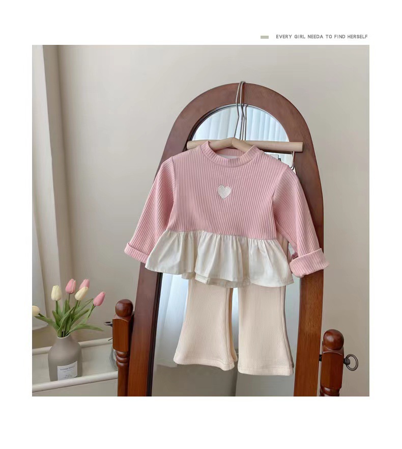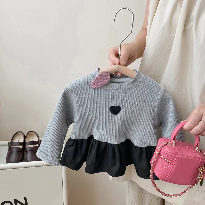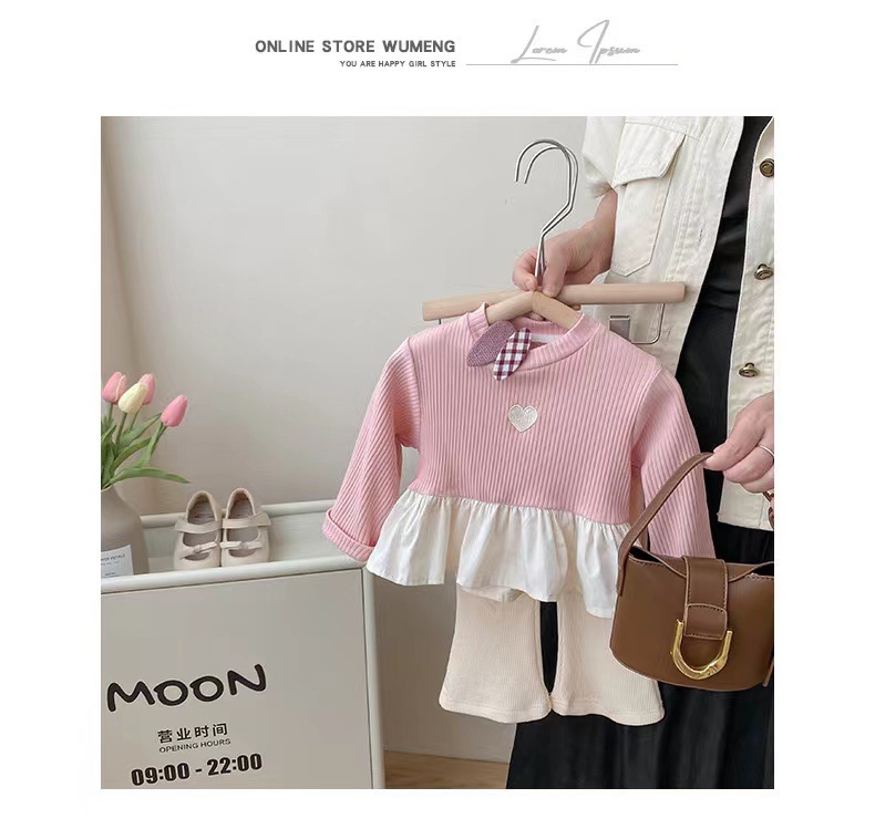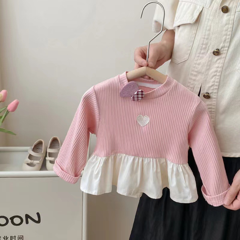 2023新款女童秋装打底衫儿童韩版长袖花边上衣女宝宝春秋季娃娃衫