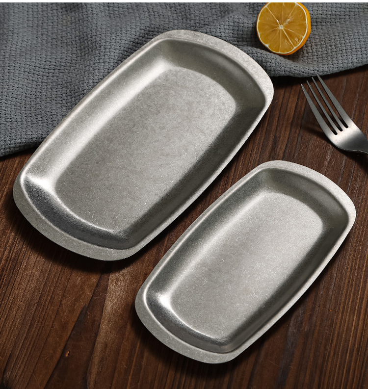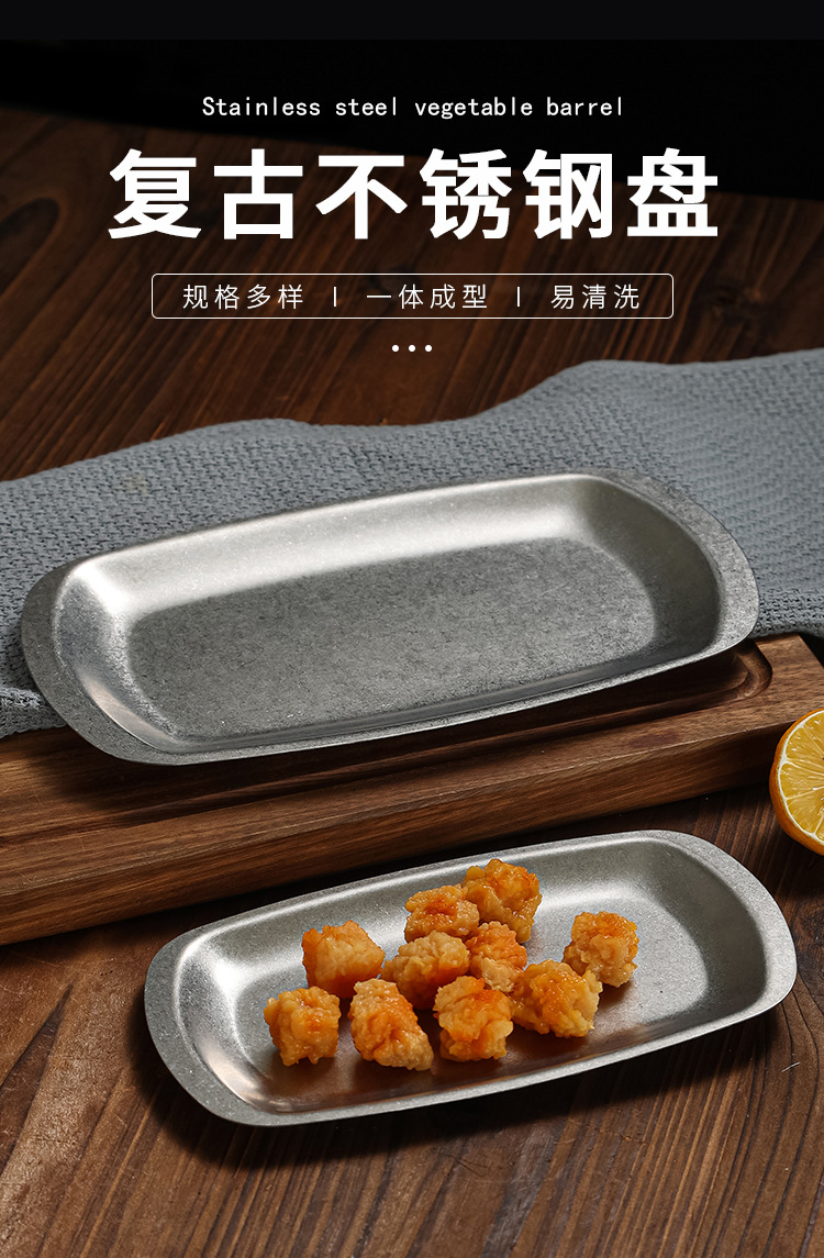 레트로 스테인레스 스틸 바베큐 플레이트 오래된 스낵 플레이트 냄비 접시 디저트 플레이트 바베큐 플레이트 과일 디저트 플레이트스토어 가기