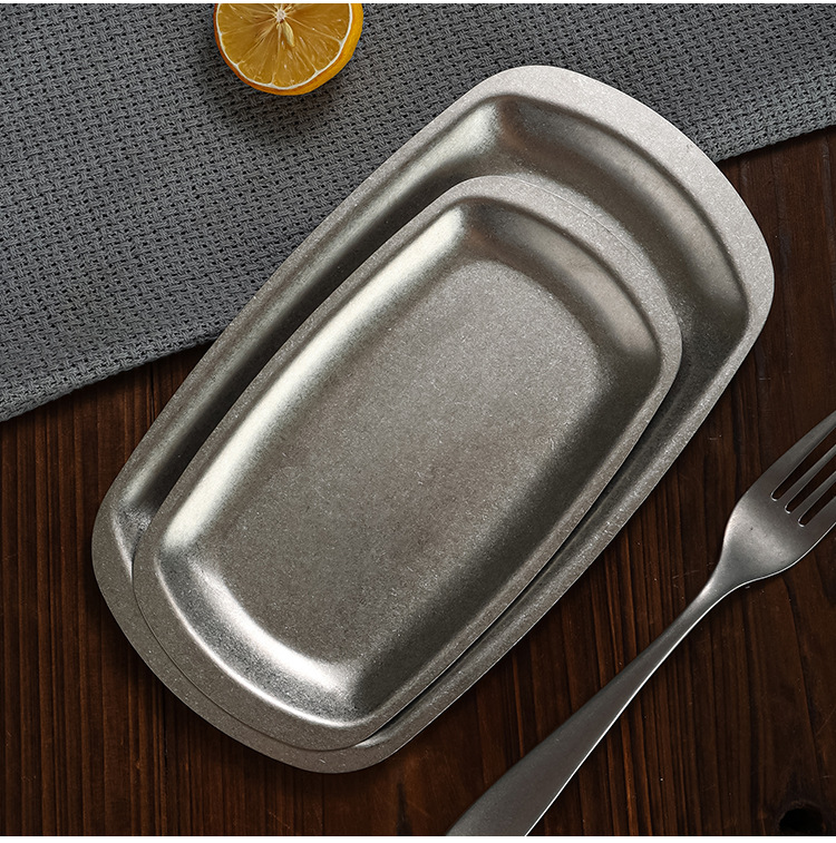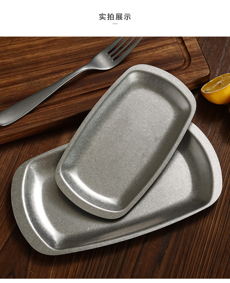 레트로 스테인레스 스틸 바베큐 플레이트 오래된 스낵 플레이트 냄비 접시 디저트 플레이트 바베큐 플레이트 과일 디저트 플레이트