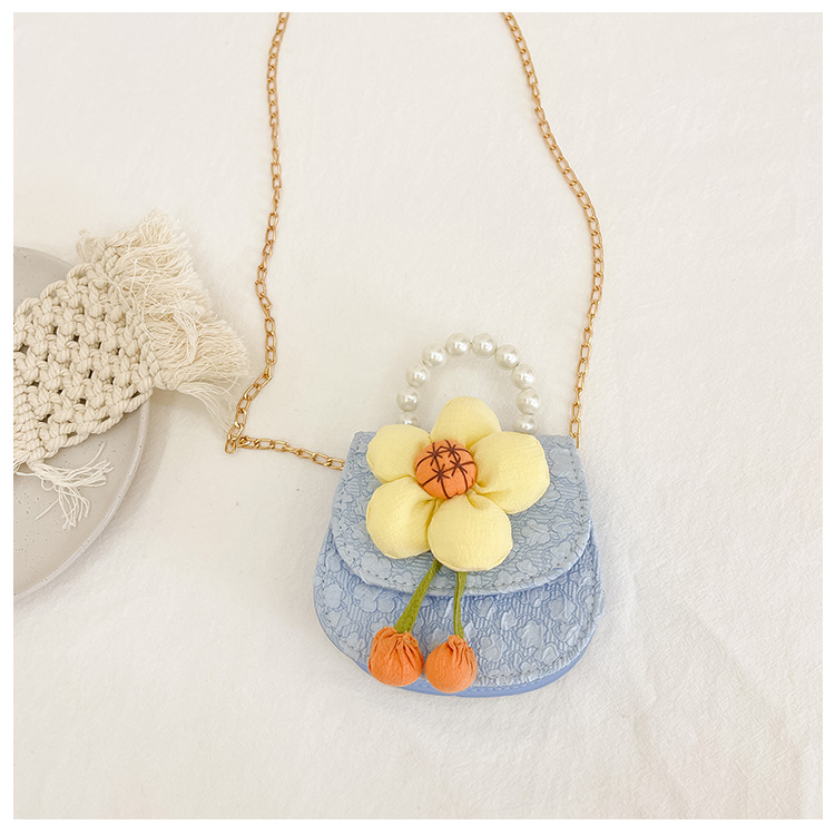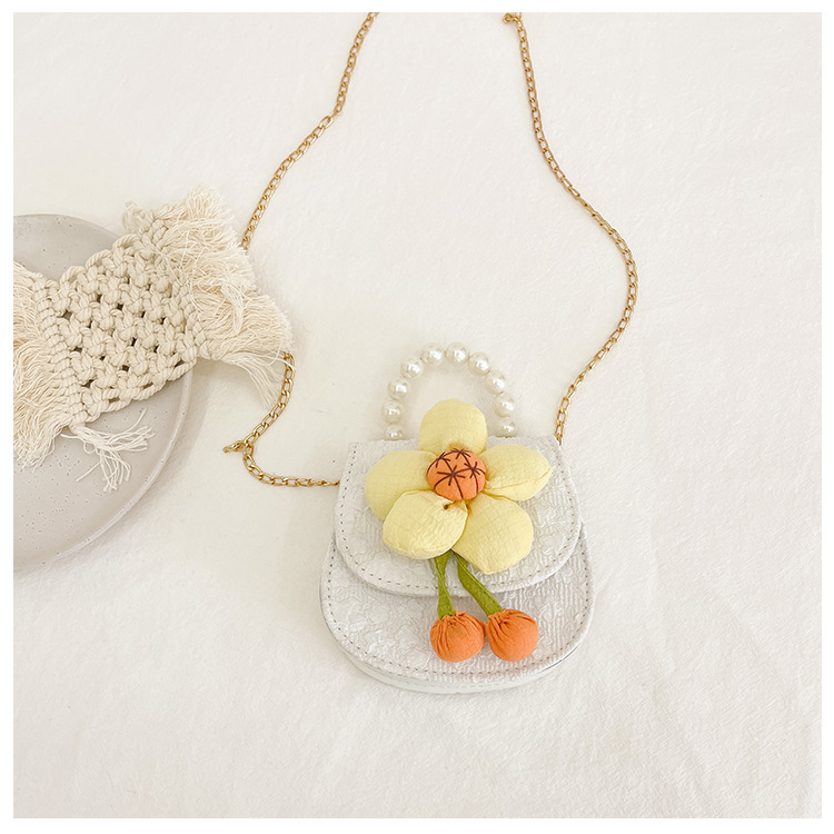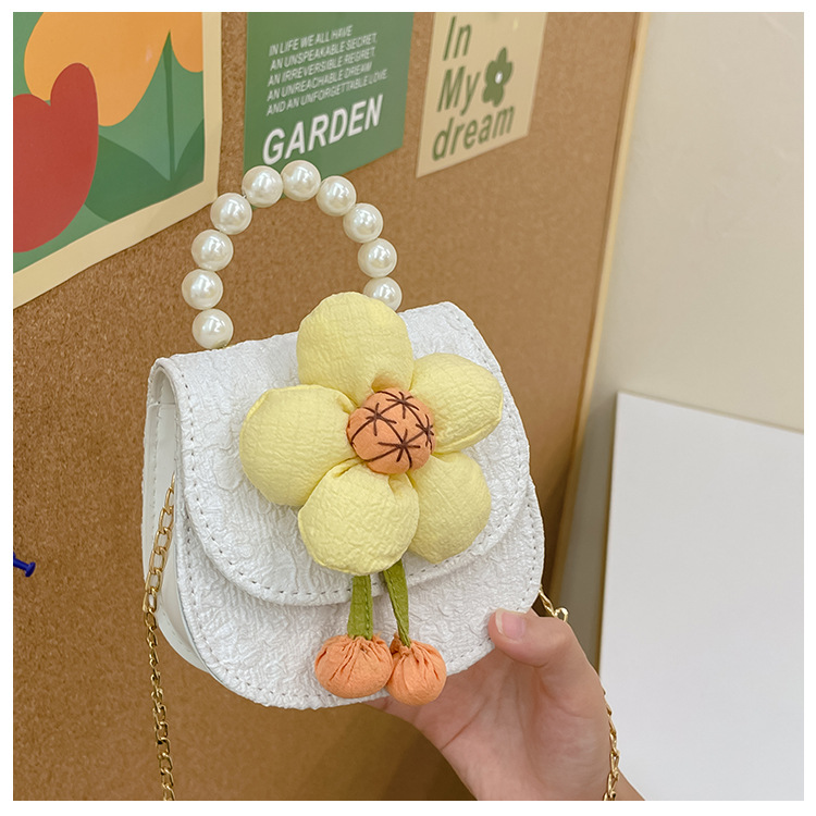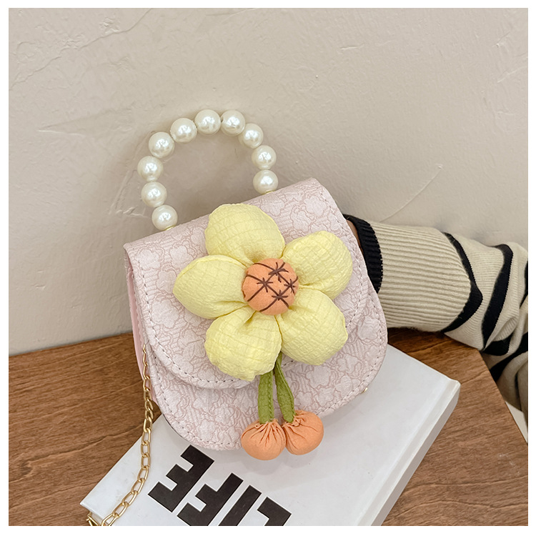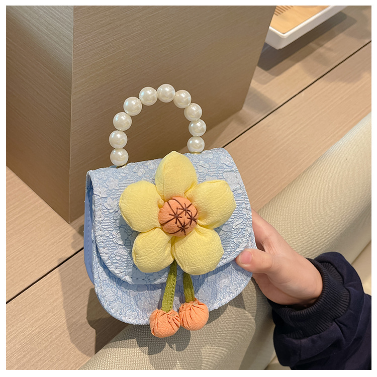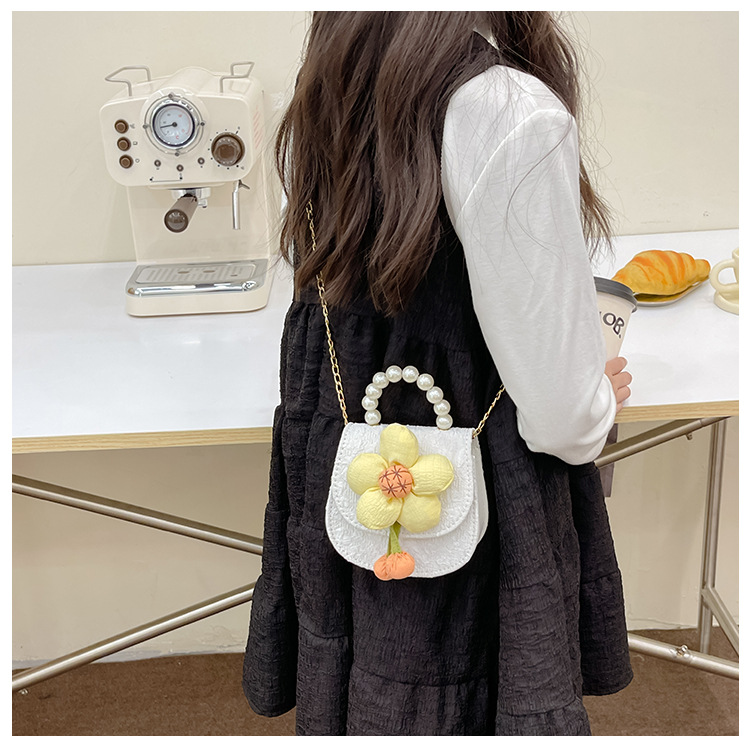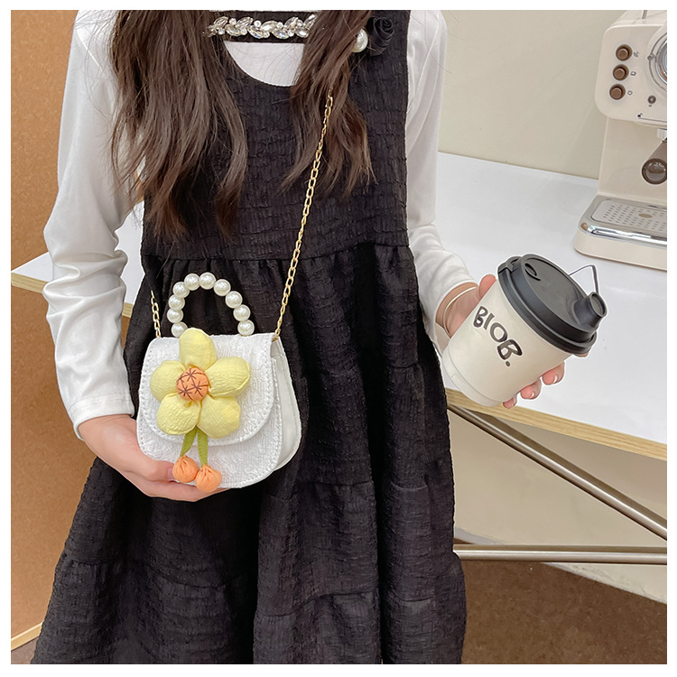 여자 공주 숄더 백 2024 새로운 어린이 유행 핸드백 해바라기 진주 크로스 바디 동전 지갑스토어 가기