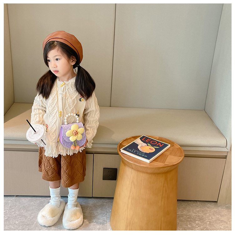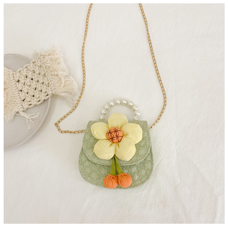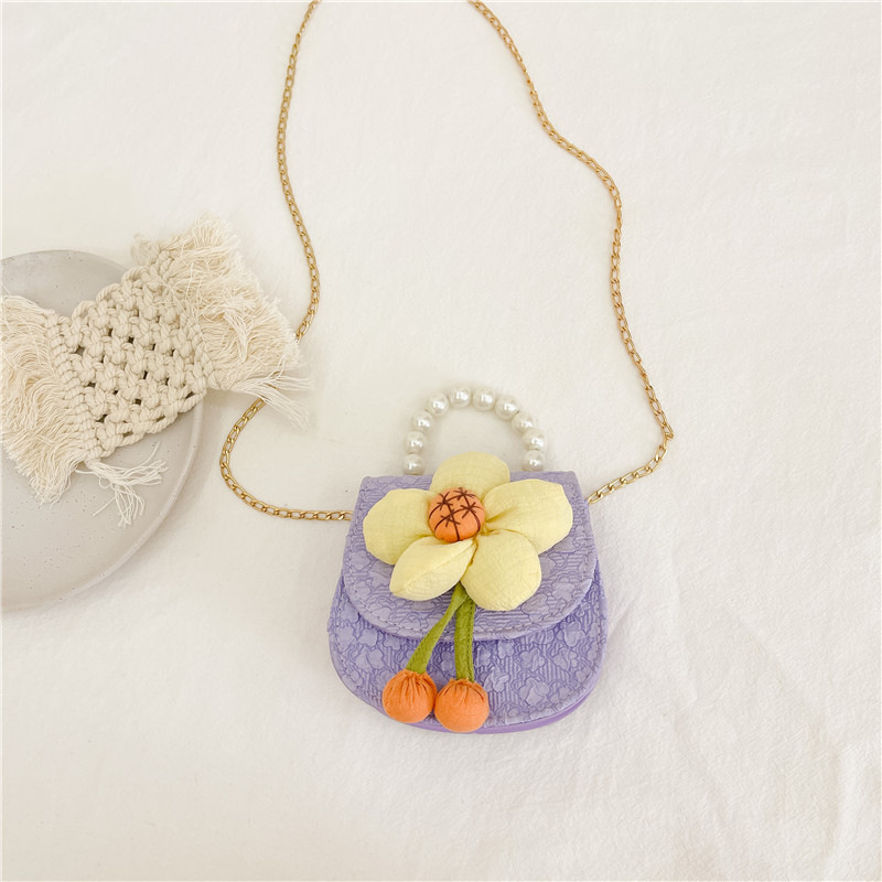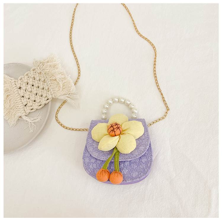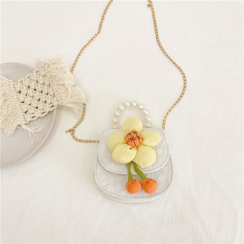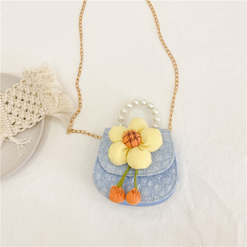 여자 공주 숄더 백 2024 새로운 어린이 유행 핸드백 해바라기 진주 크로스 바디 동전 지갑스토어 가기