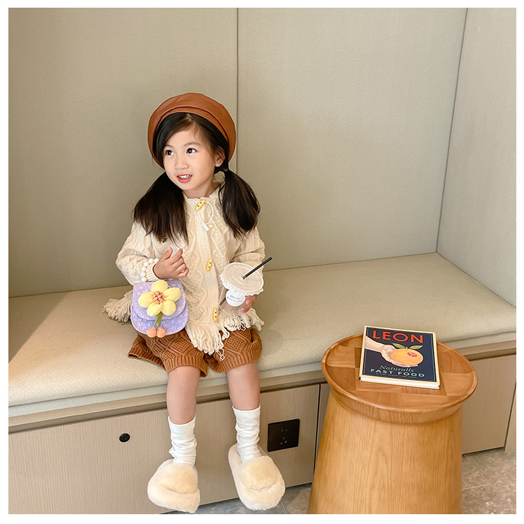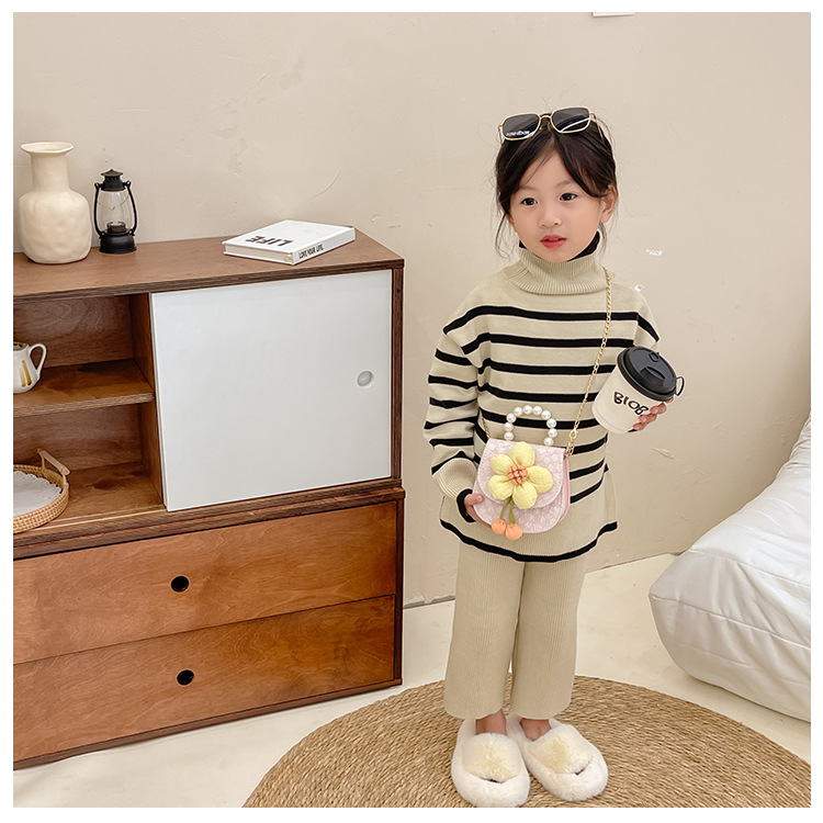 여자 공주 숄더 백 2024 새로운 어린이 유행 핸드백 해바라기 진주 크로스 바디 동전 지갑