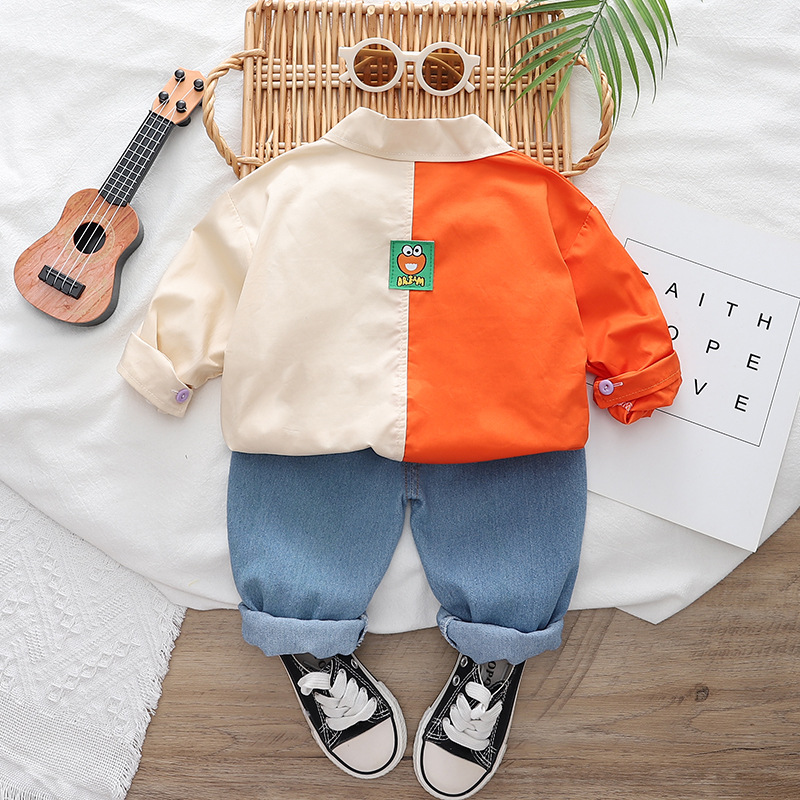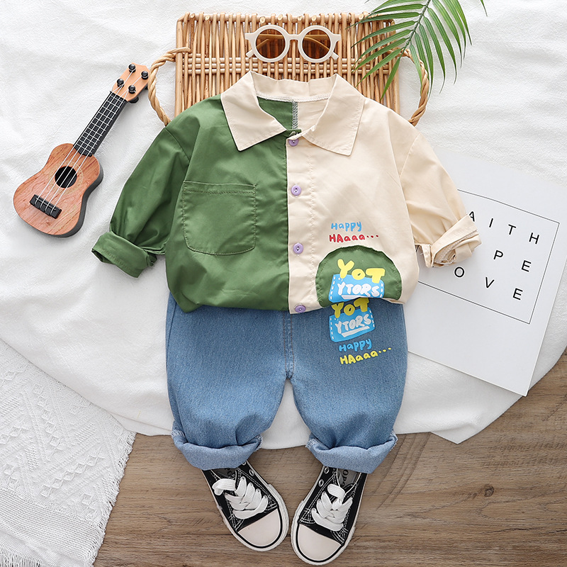 2023 새로운 어린이 좌우 비대칭 셔츠 세트 가을 옷 소년 한국 바지 여자 남자 보물 편지 세트
