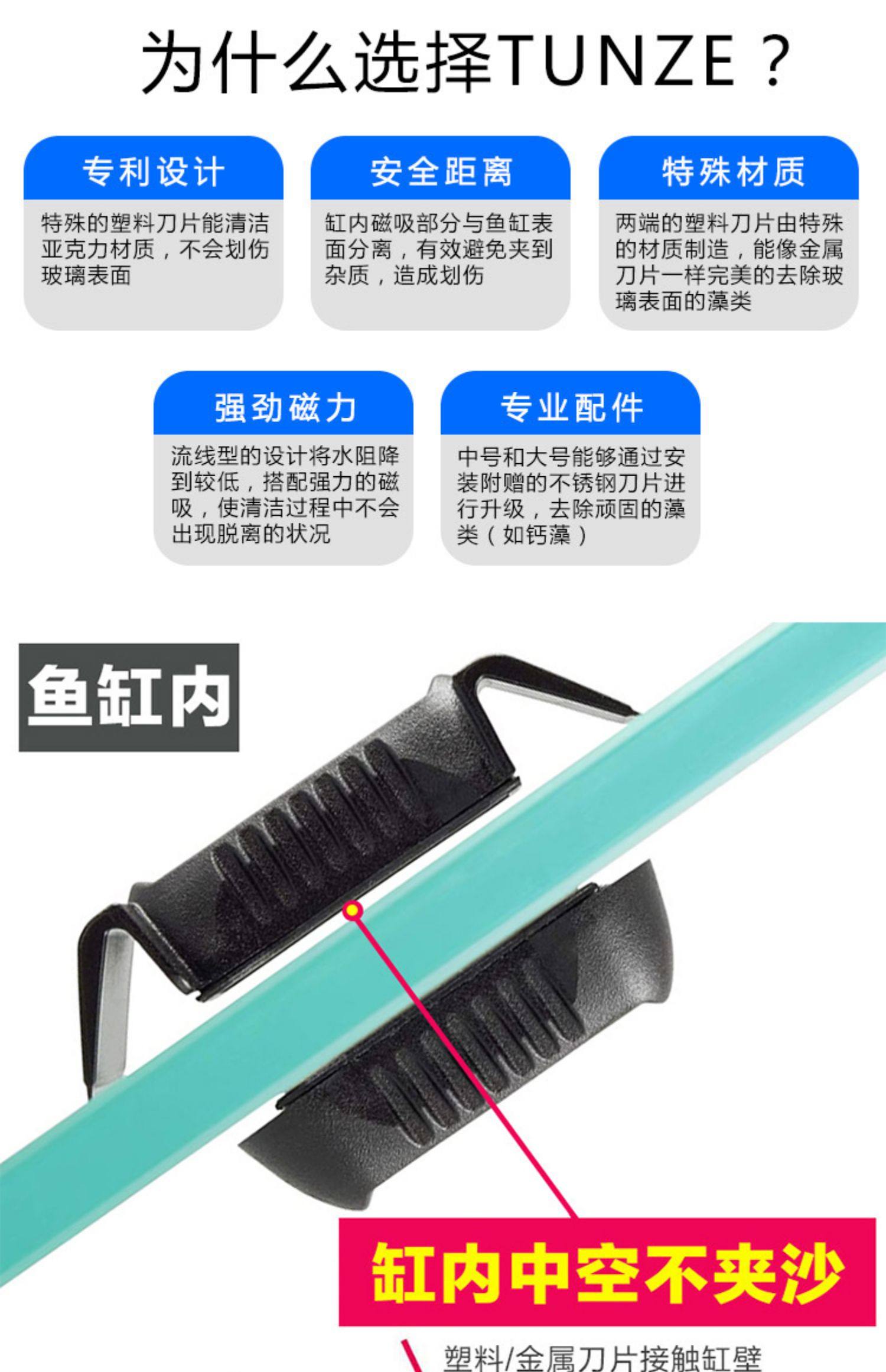 독일 TUNZE 소비 탱크 연마 브러시 산호 물고기 탱크 수족관 강력한 조류 제거 자기 브러시 스크레이퍼 청소 도구