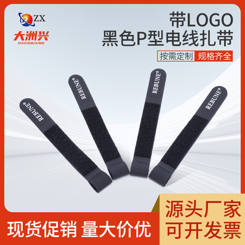 带logo黑色p型电线扎带桌子收纳整理神器绕线束绑带魔术贴扎带