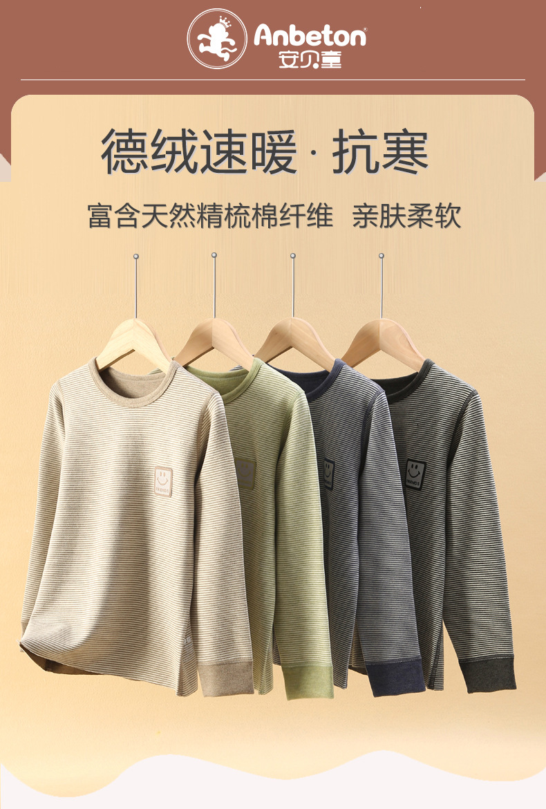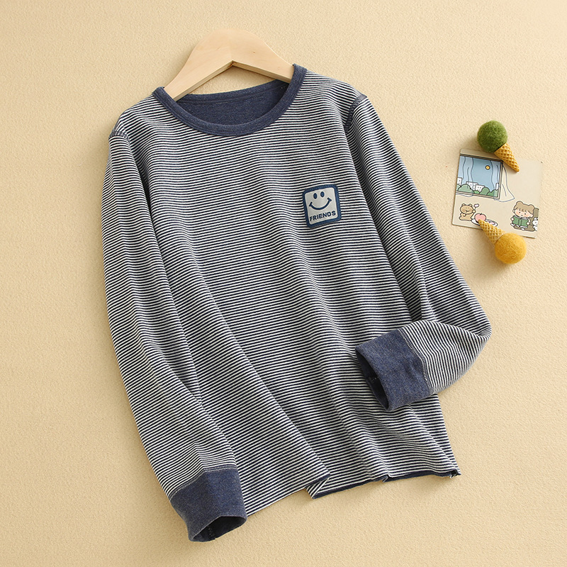 어린이 벨벳 열 속옷 추적없는 양면 기모 크루넥 가을 옷 소년과 소녀를위한 줄무늬 중간 및 큰 어린이 기본 의류스토어 가기