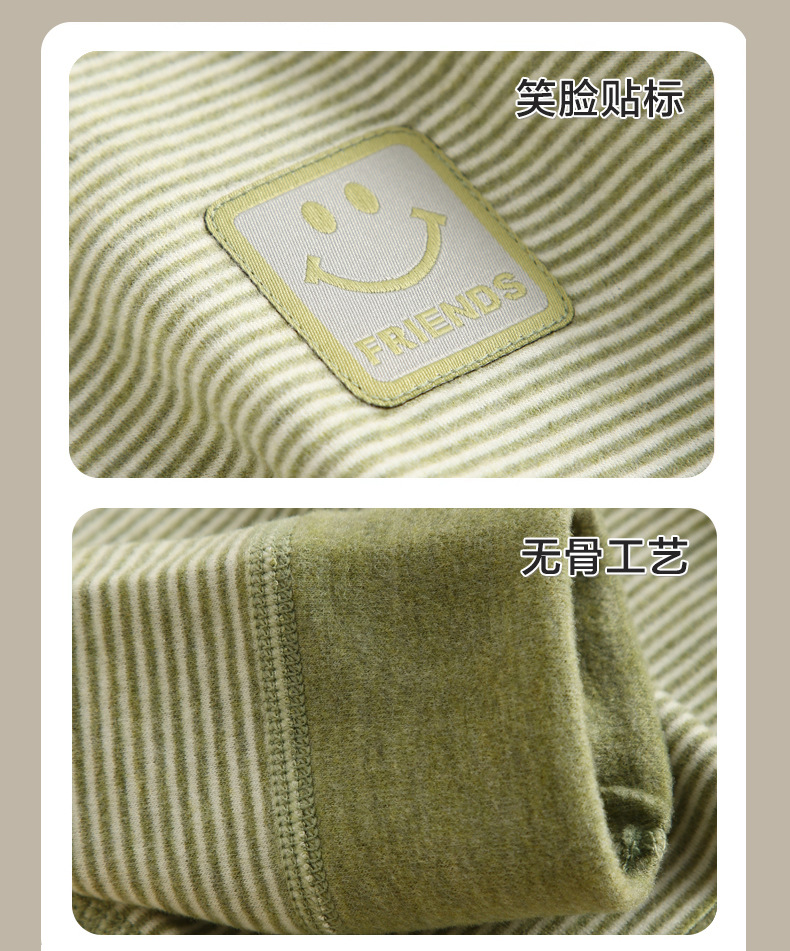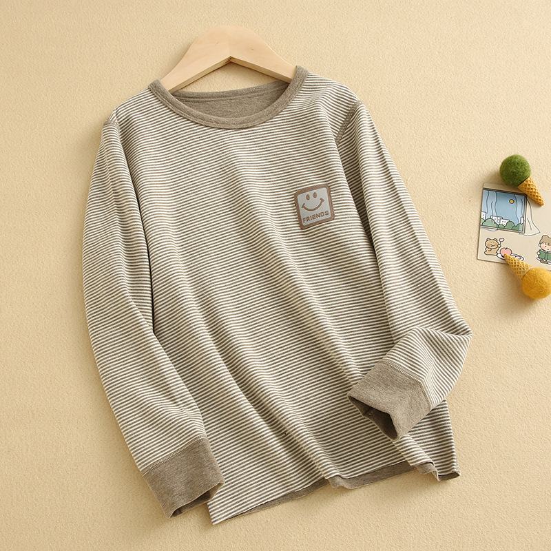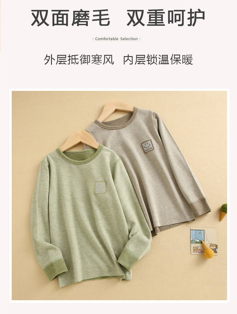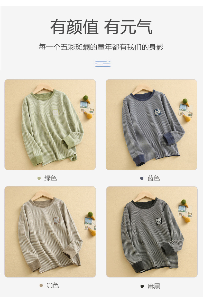 어린이 벨벳 열 속옷 추적없는 양면 기모 크루넥 가을 옷 소년과 소녀를위한 줄무늬 중간 및 큰 어린이 기본 의류