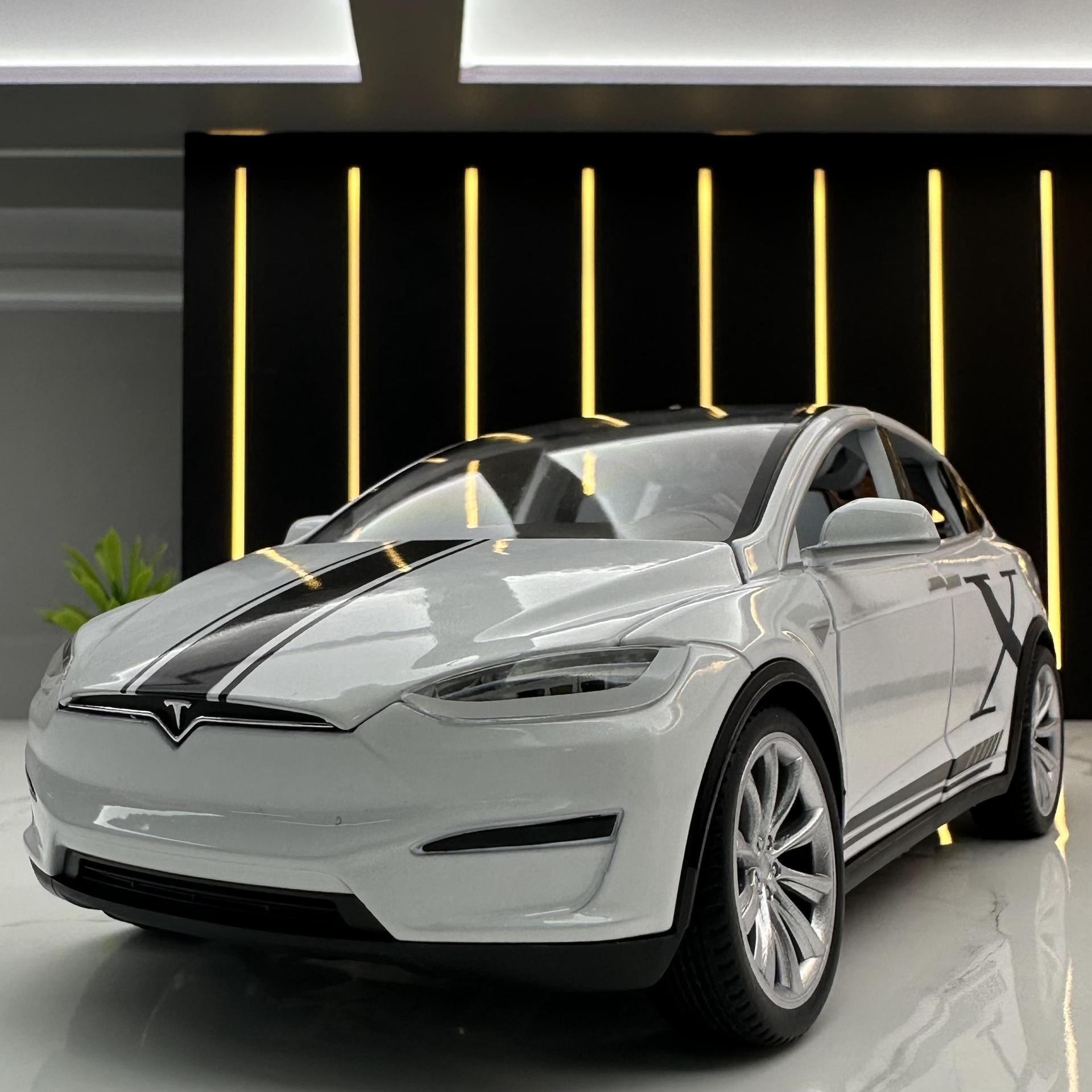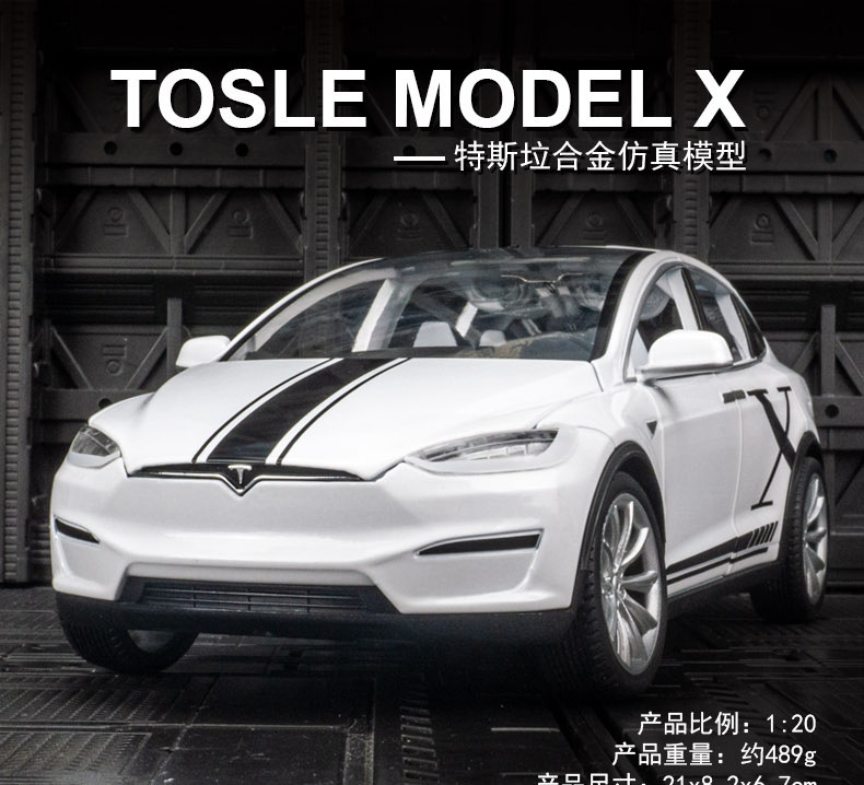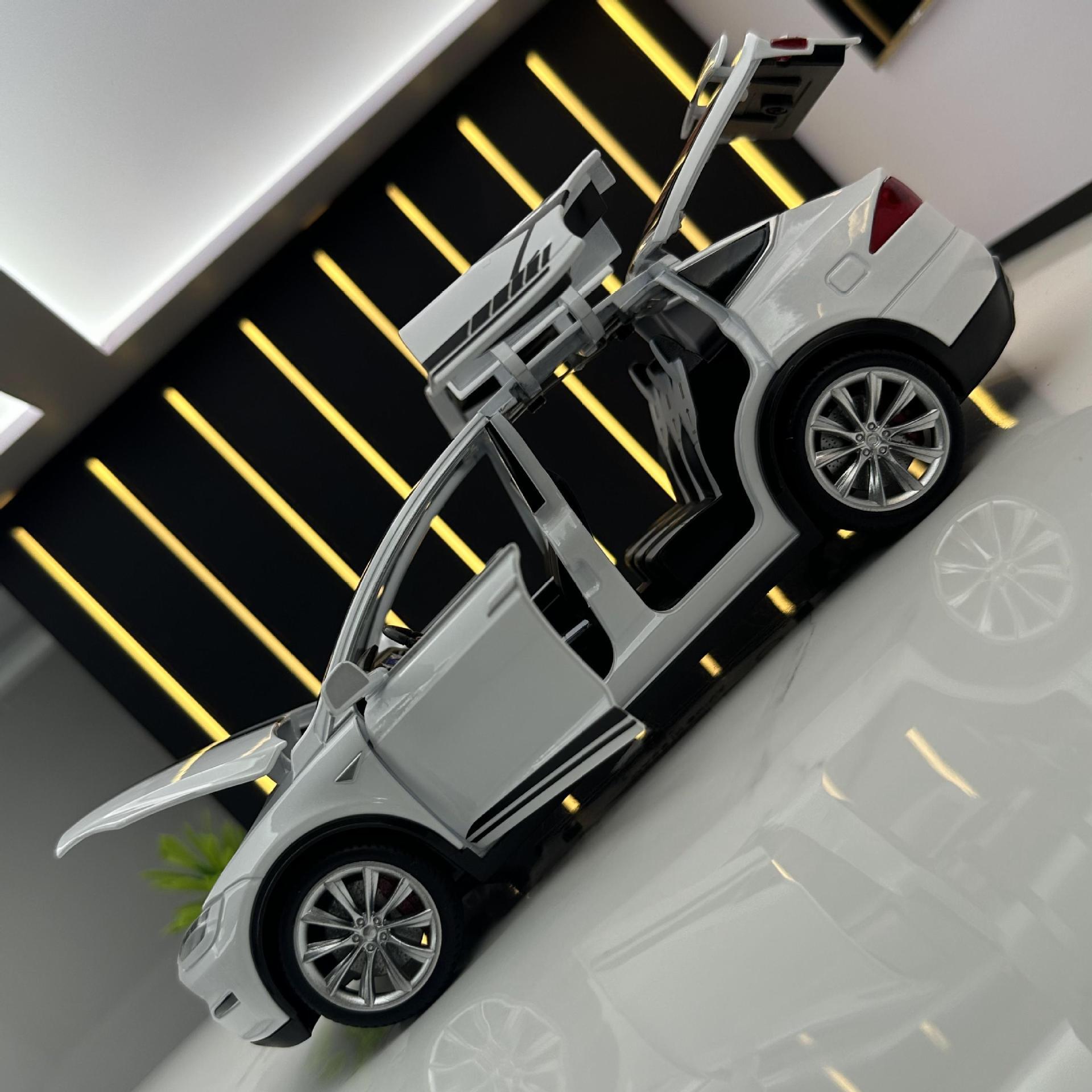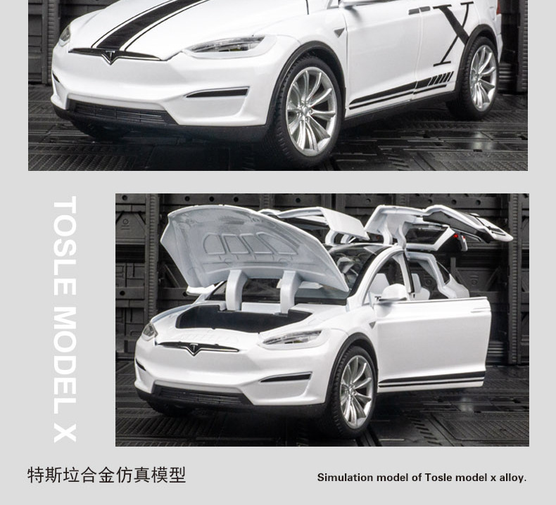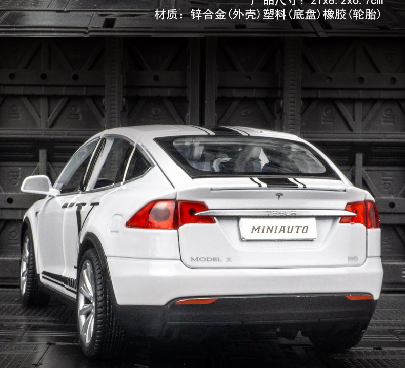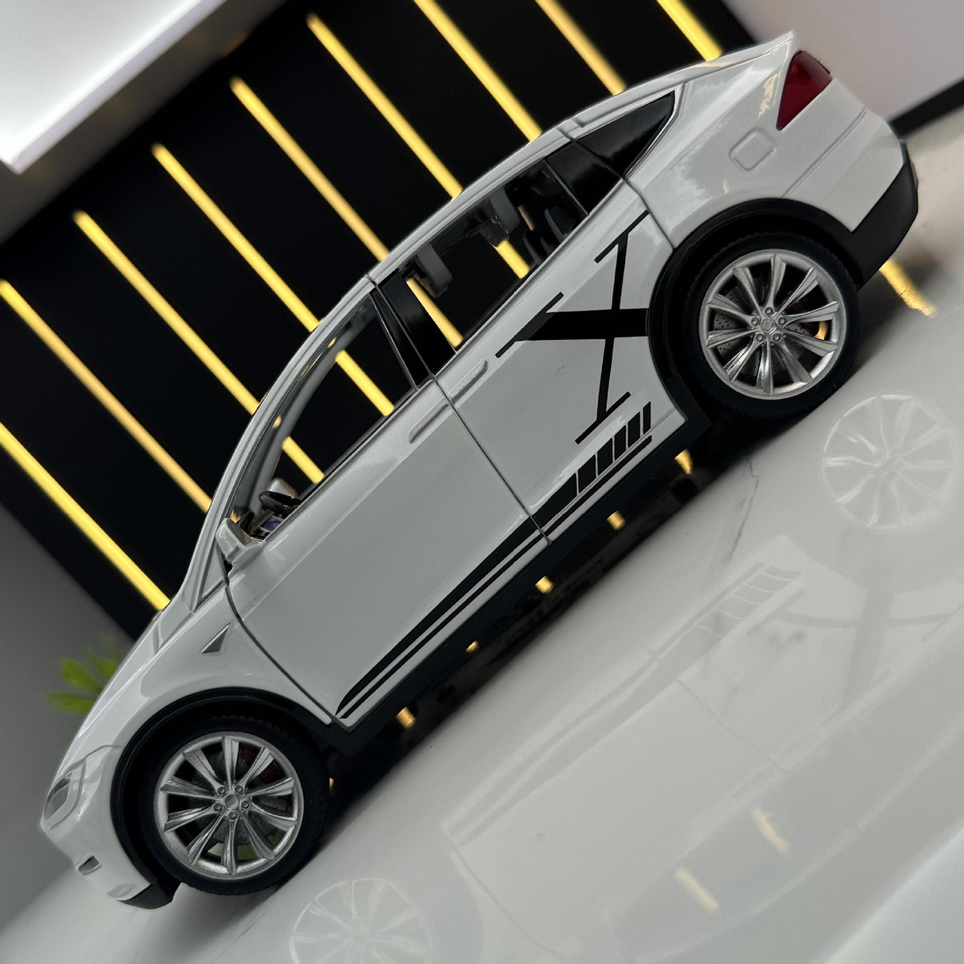 젠위안 합금 자동차 모형 1:24 테슬라 모델X 신에너지 자동차 후렉션 기능이 있는 사운드 및 라이트 장난감 자동차 모형
