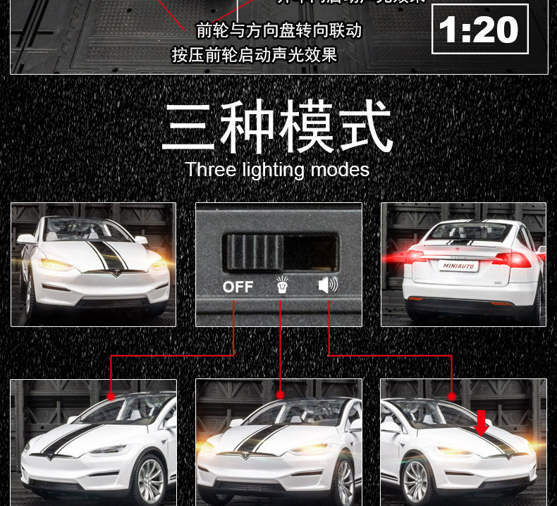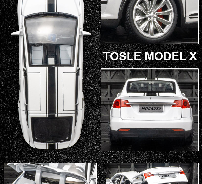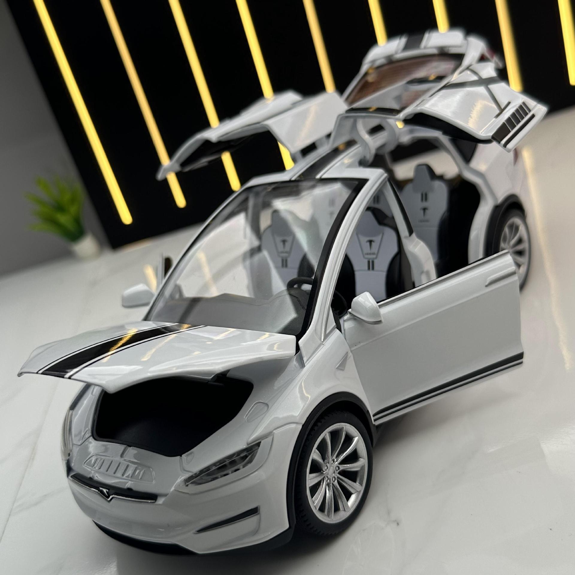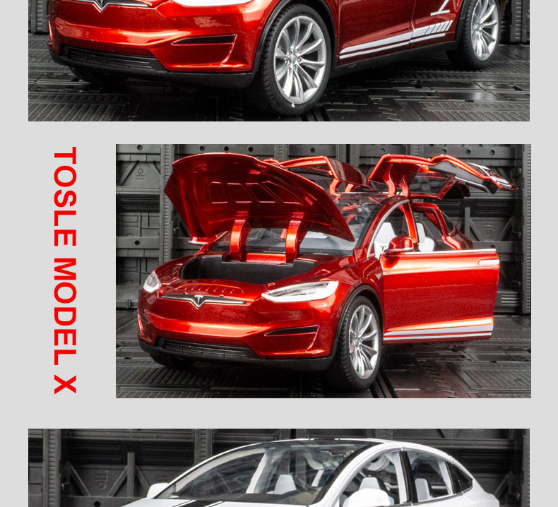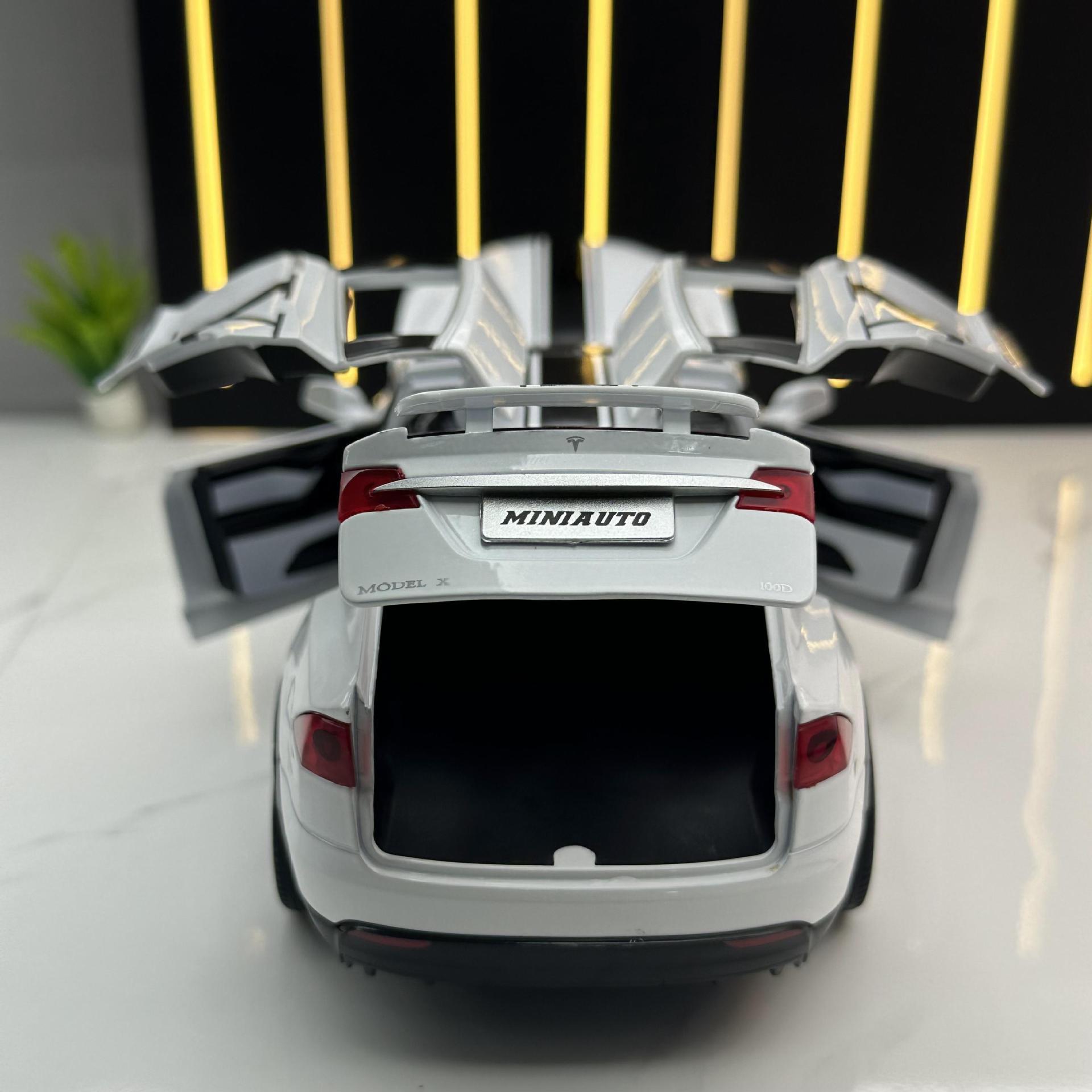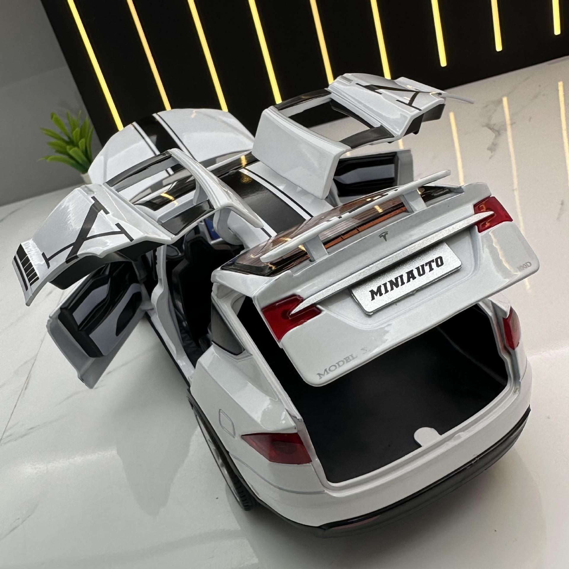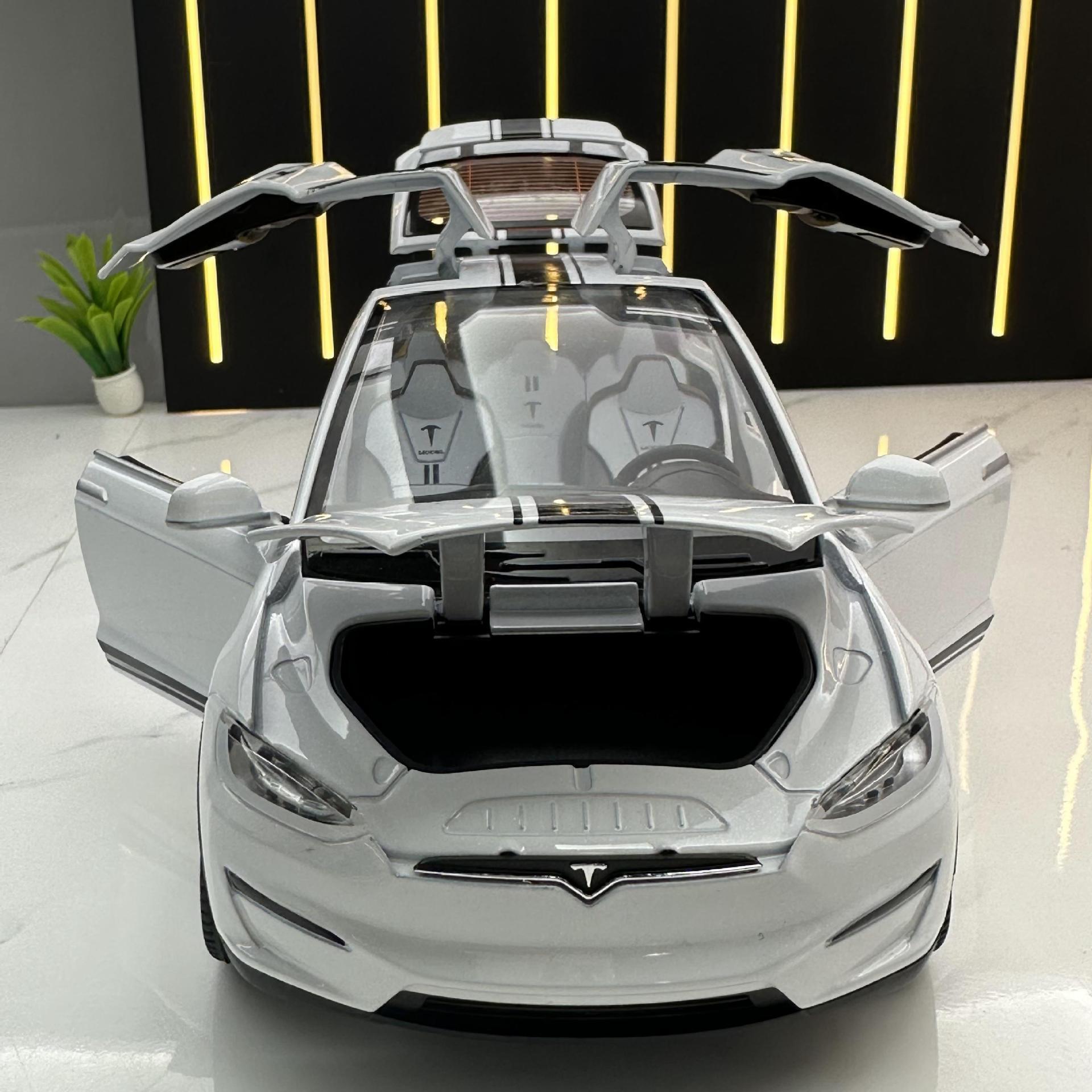 젠위안 합금 자동차 모형 1:24 테슬라 모델X 신에너지 자동차 후렉션 기능이 있는 사운드 및 라이트 장난감 자동차 모형
