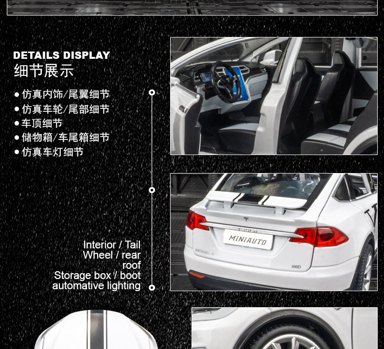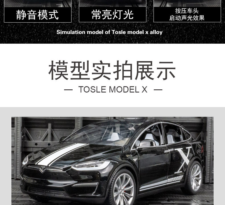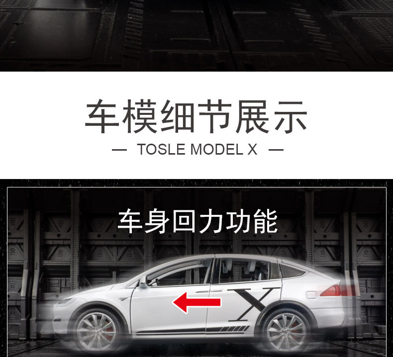 젠위안 합금 자동차 모형 1:24 테슬라 모델X 신에너지 자동차 후렉션 기능이 있는 사운드 및 라이트 장난감 자동차 모형스토어 가기