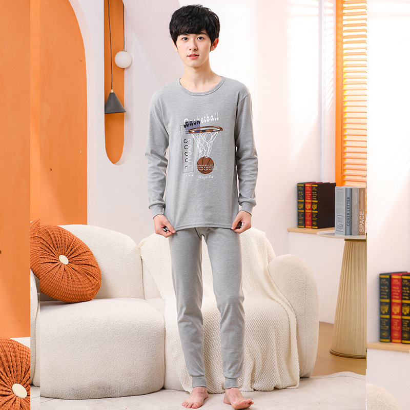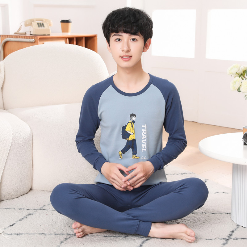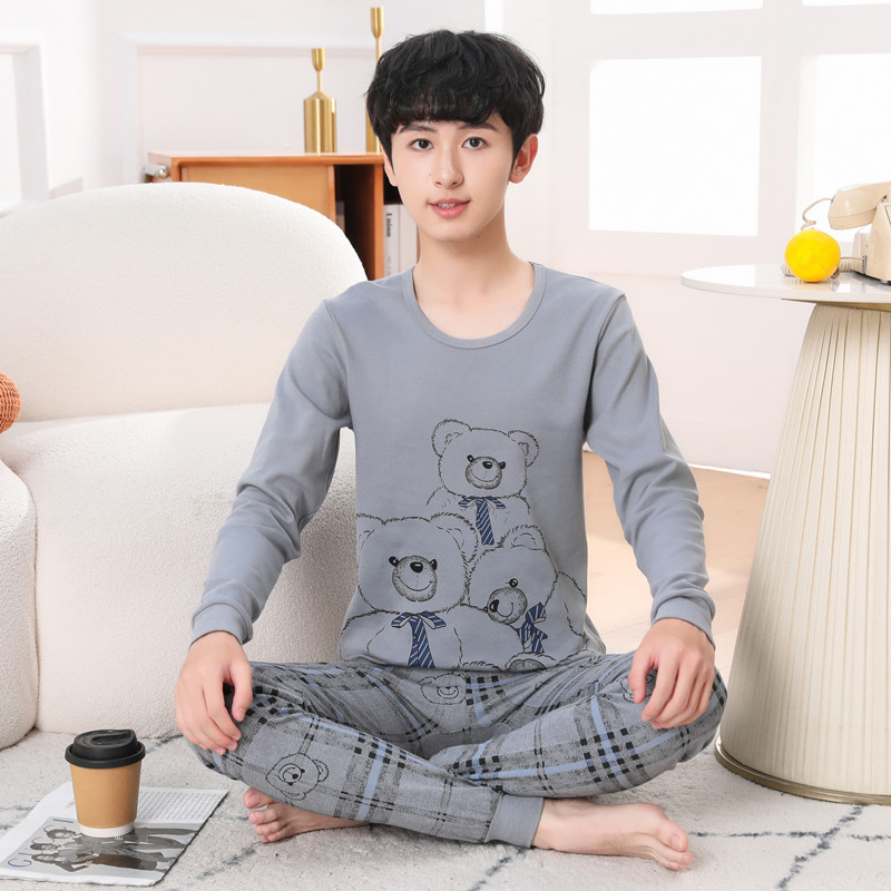 2023 십대 가을과 겨울 새로운 면 속옷 세트 만화 인쇄 라운드 넥 홈 의류 소년과 소녀
