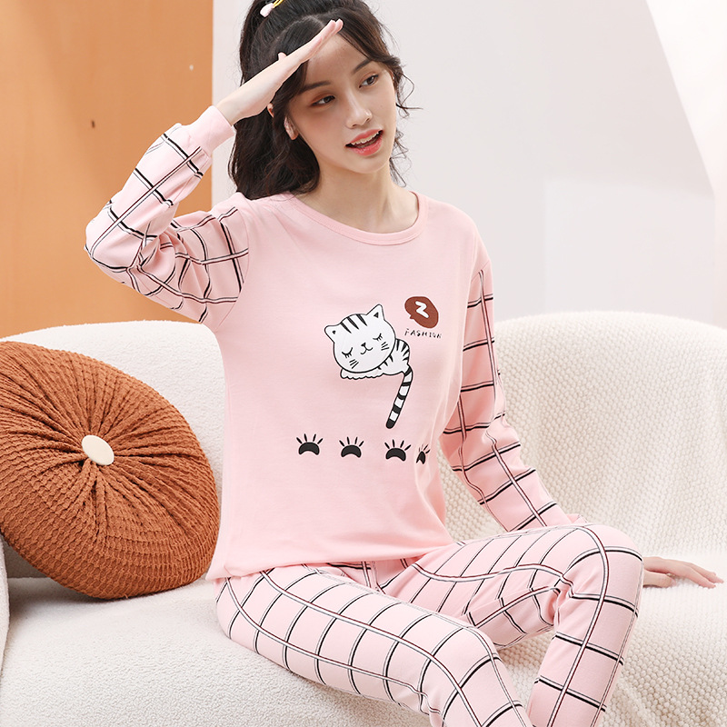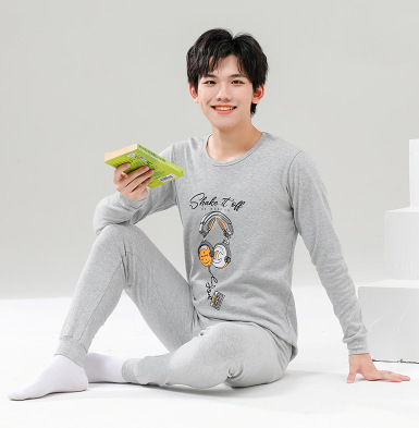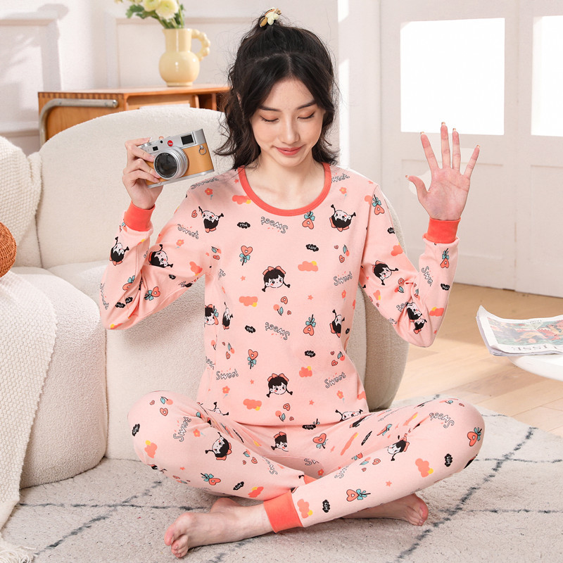2023 십대 가을과 겨울 새로운 면 속옷 세트 만화 인쇄 라운드 넥 홈 의류 소년과 소녀스토어 가기