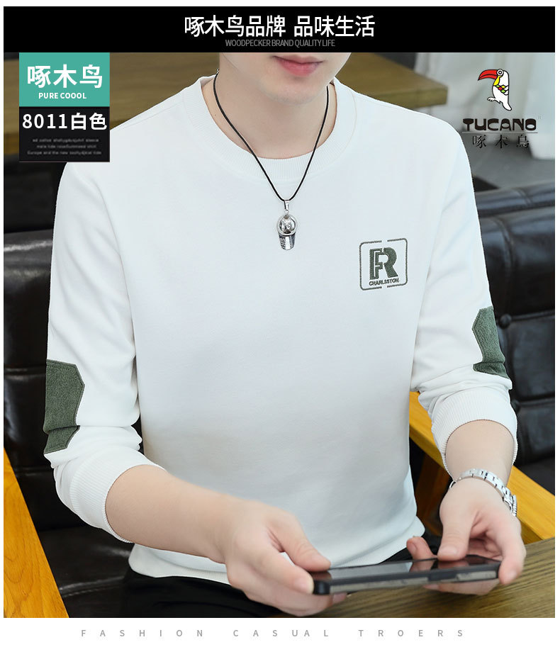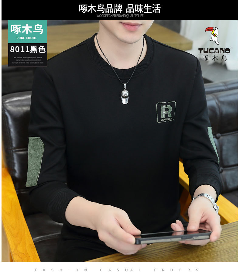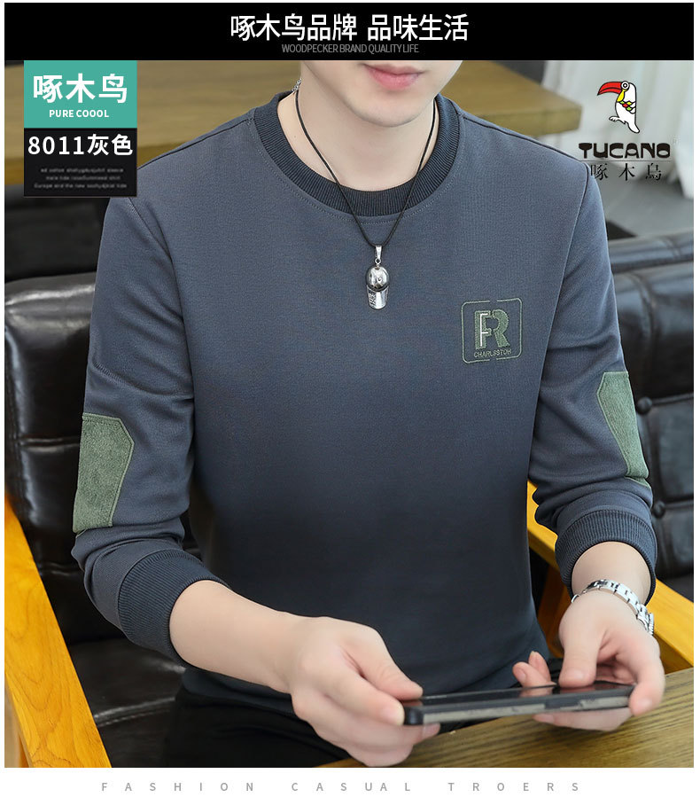 딱따구리 젊고 중년 남자의 긴팔 가을과 겨울 새로운 라운드 넥 기모 두꺼운 따뜻한 베이스 셔츠 스웨터 트렌디 한 겉옷
