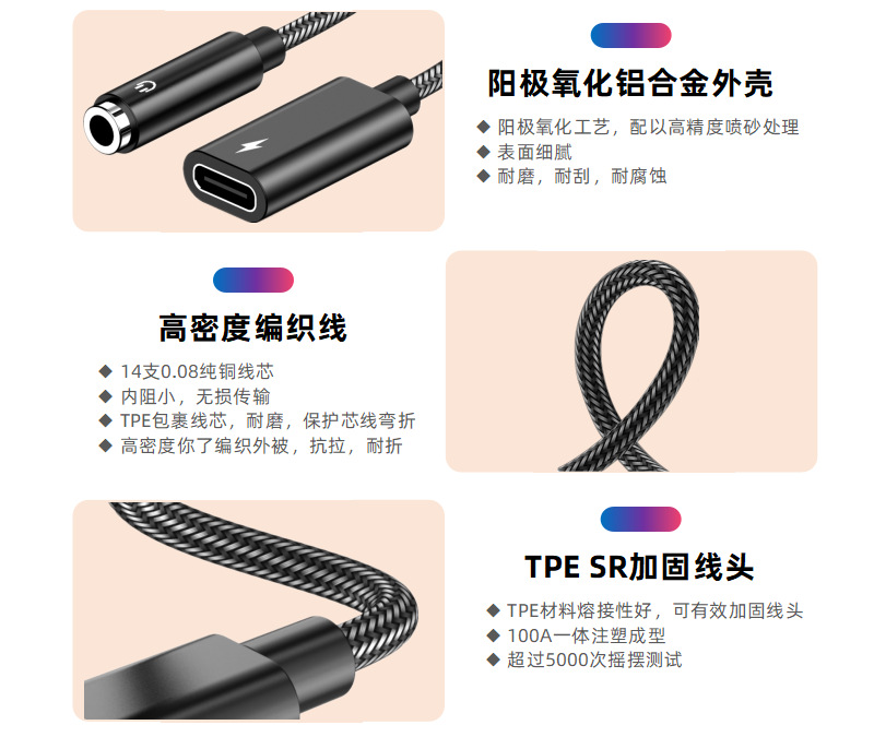 Type-C 디지털 어댑터 3.5mm 헤드셋 변환기 휴대 전화 태블릿 충전 PD27W 고속 충전 오디오 라인