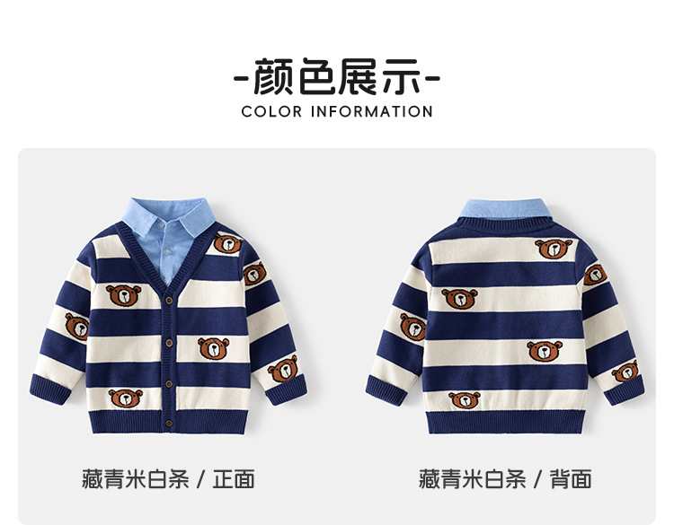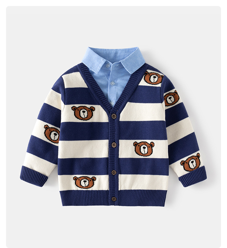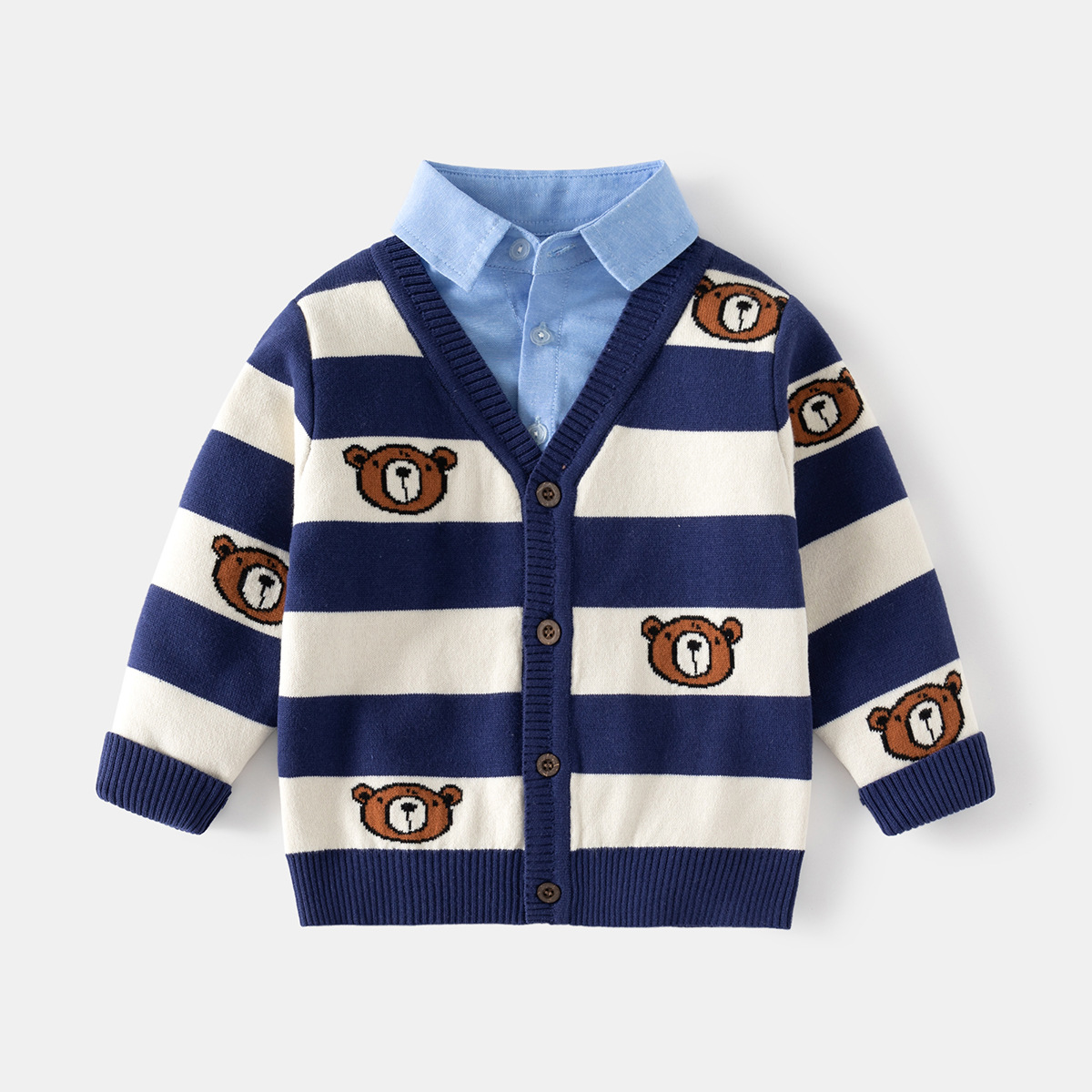 2024 새로운 가을 소년 스웨터 어린이 스웨터 풀오버 스트라이프 만화 아기 셔츠 칼라 스웨터 도매