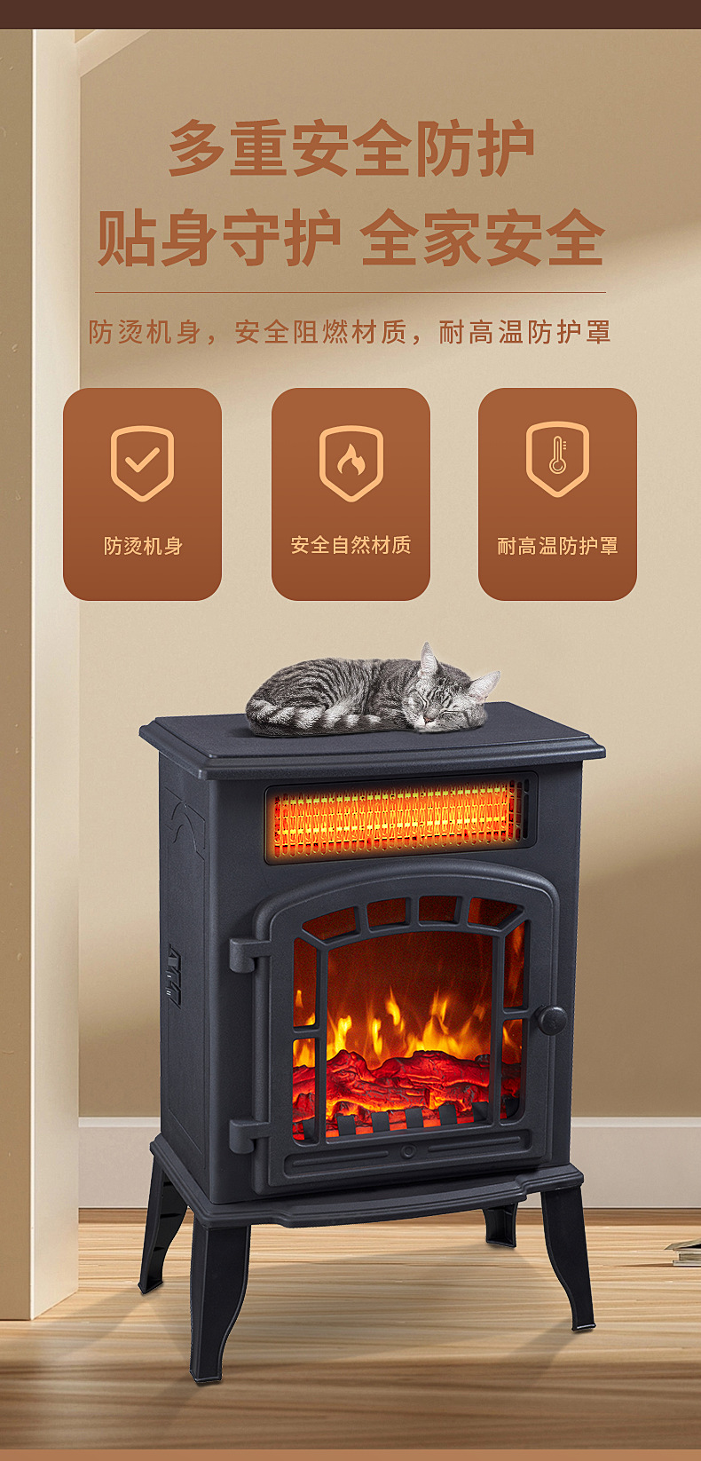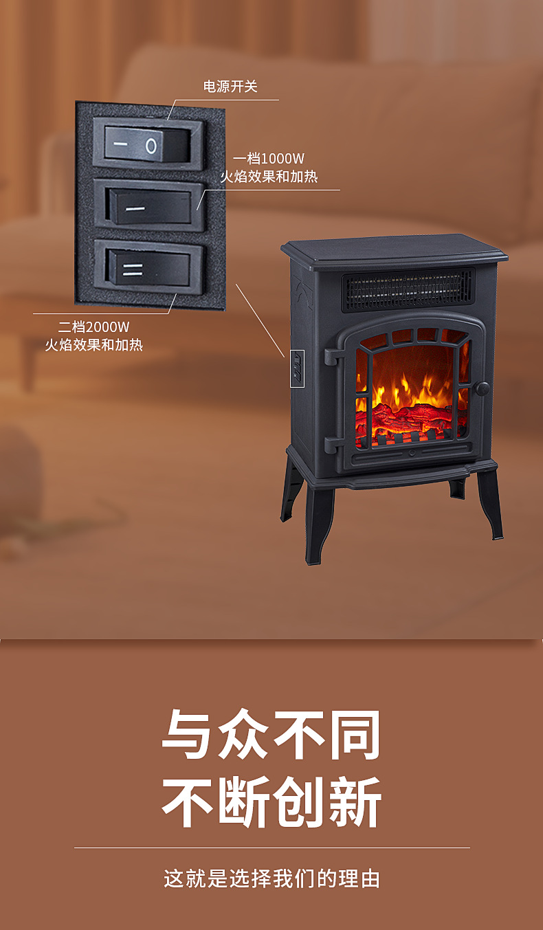 국경 간 재고 있음, 시뮬레이션 화염산 가정용/사무실용 전기 벽난로, 소형 히터, 데스크탑 열풍기