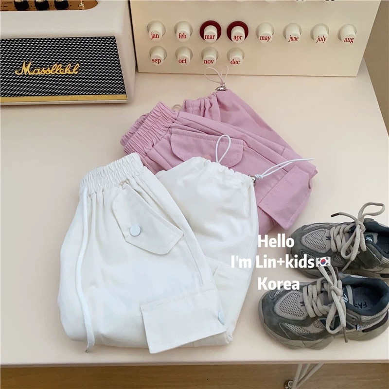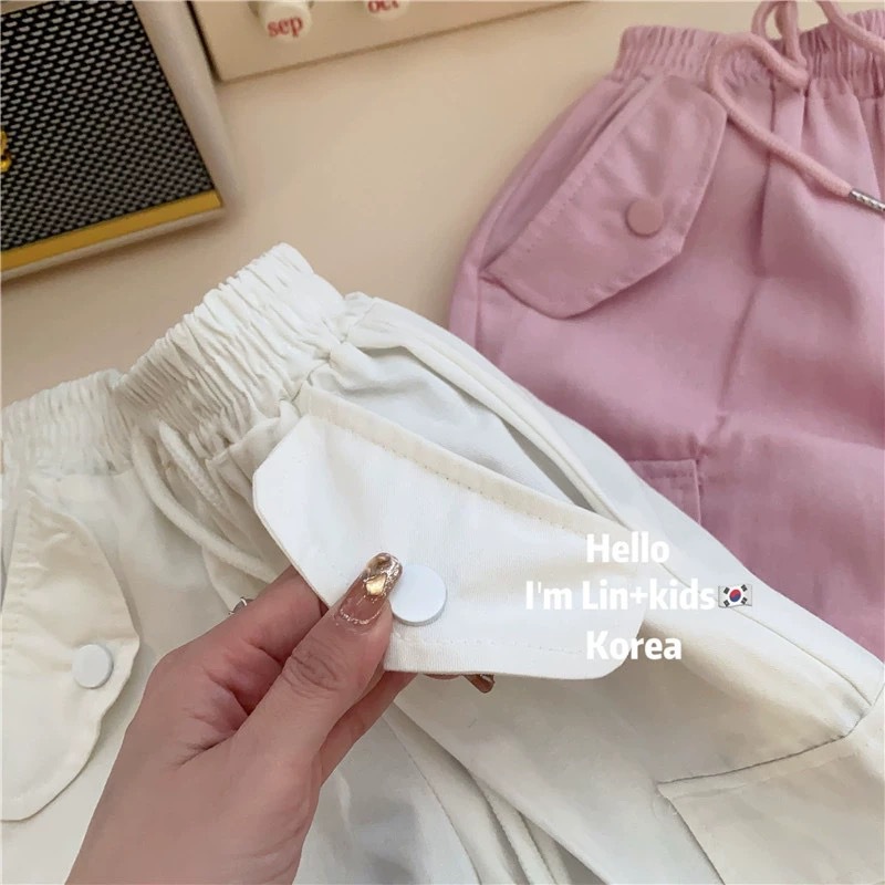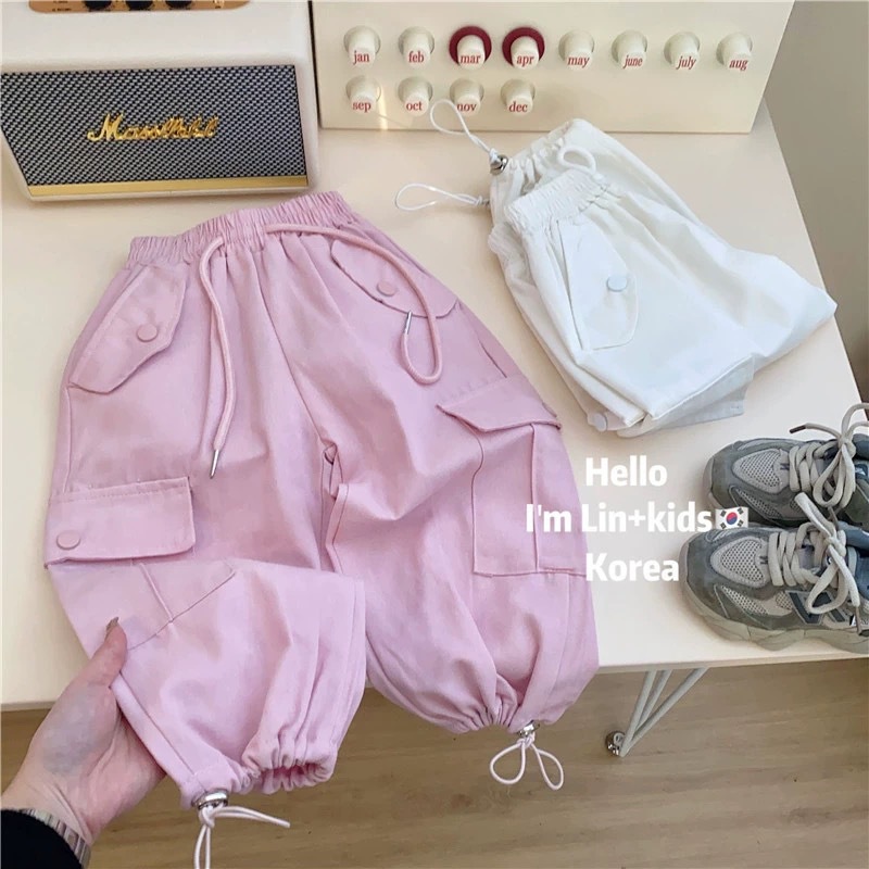여아 작업복 2024 봄, 가을 새로운 스타일 어린 소녀의 세련된 느슨한 스트레이트 레그 타이 어린이 다용도 캐주얼 바지스토어 가기