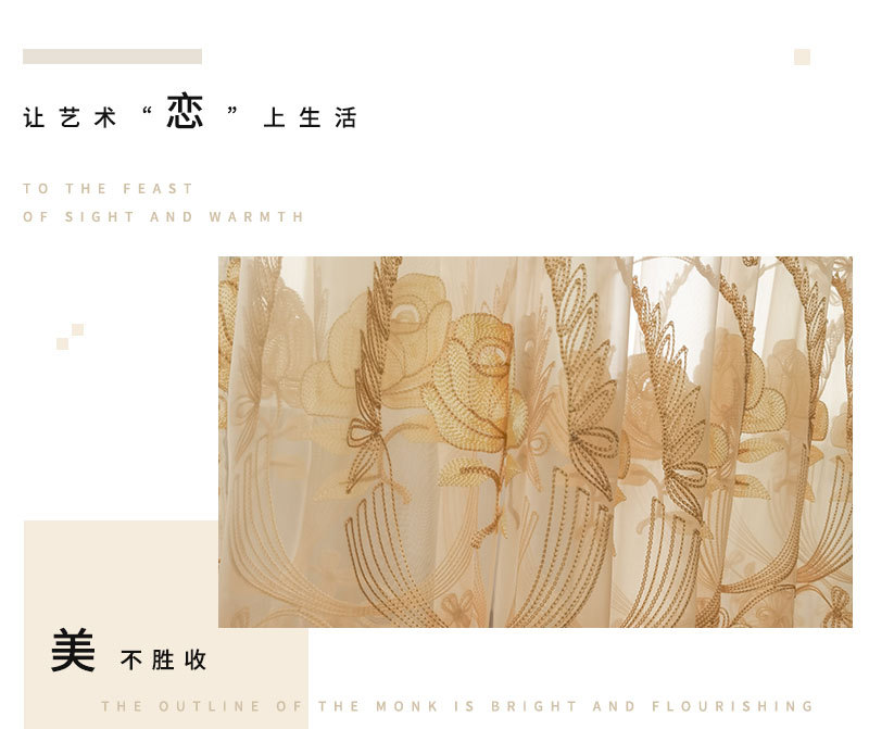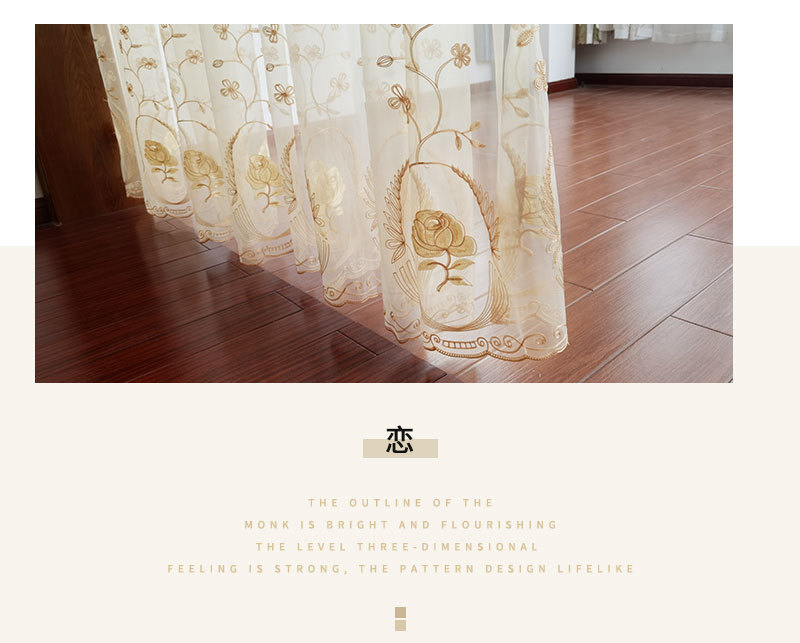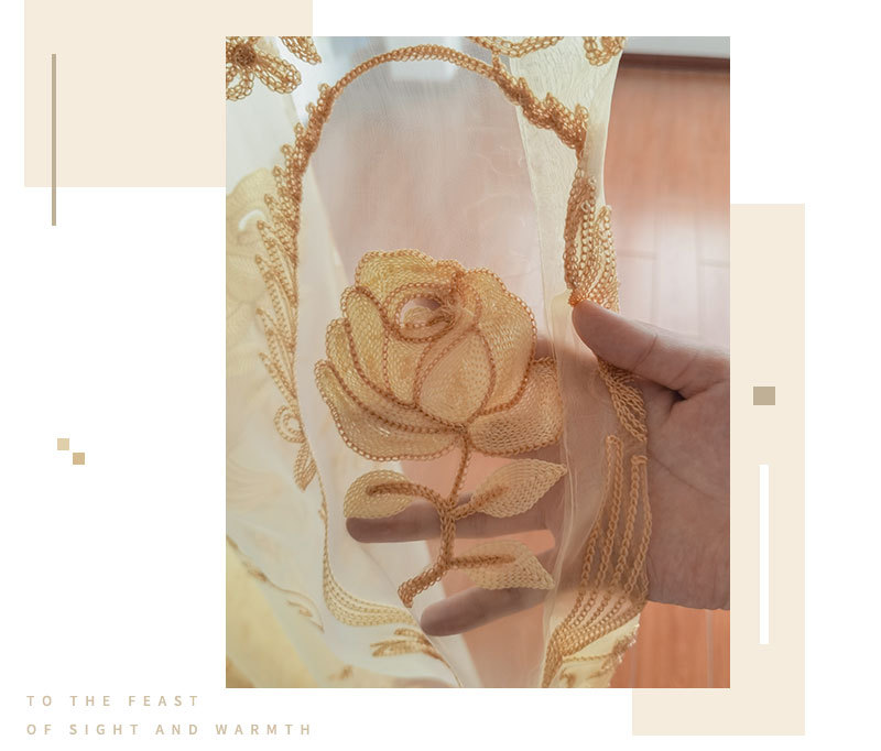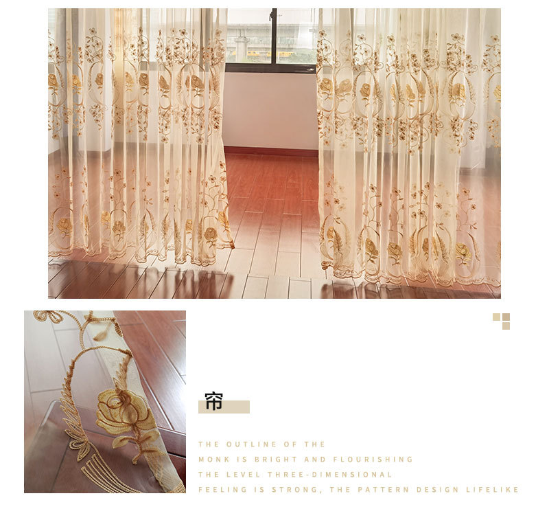 완성 된 수 놓은 황금 거즈 커튼 거실 발코니 투명 장식 파티션 커튼 고급 창 스크린 침실 베이 창 커튼스토어 가기
