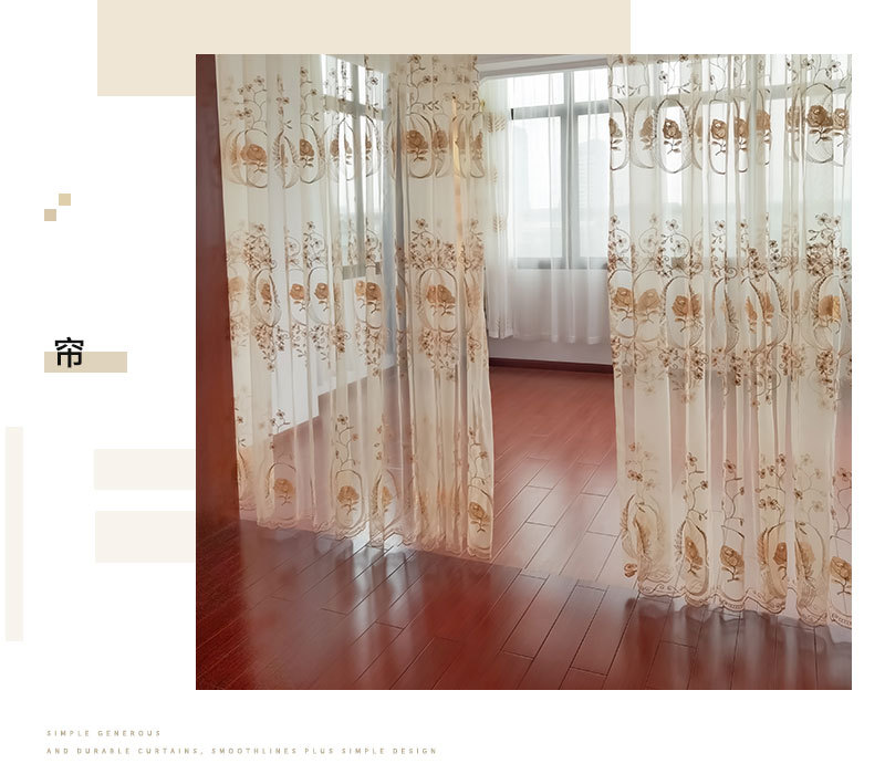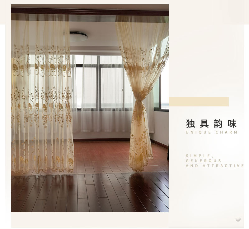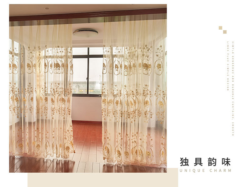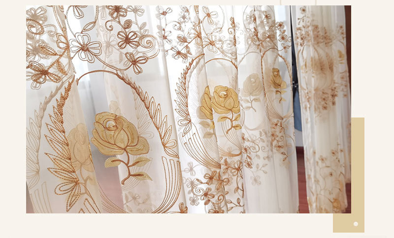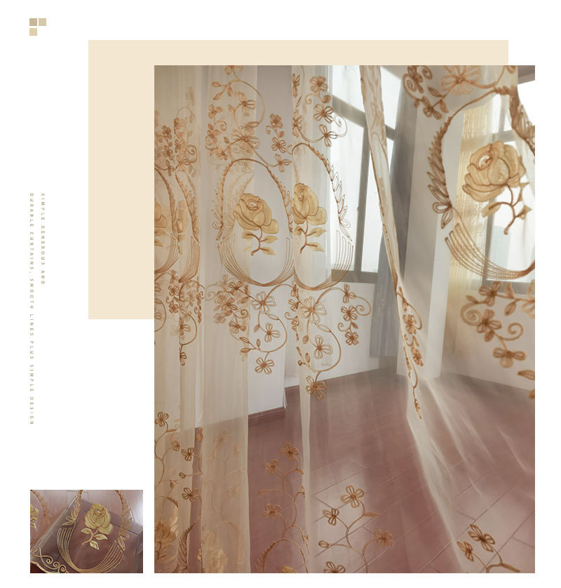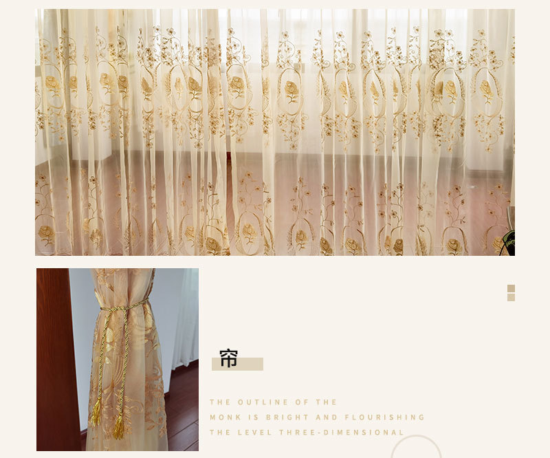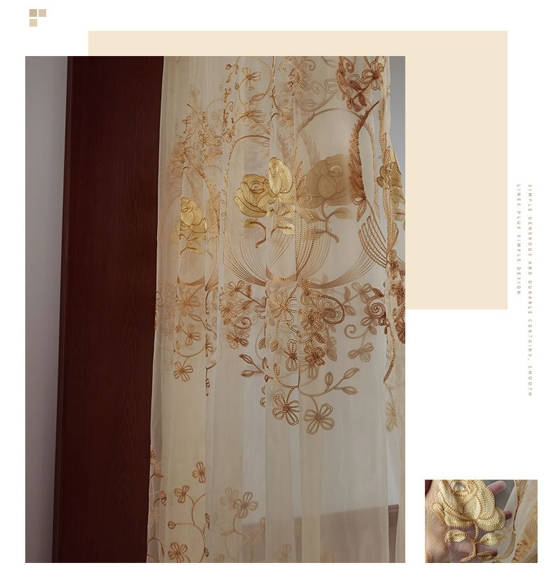 완성 된 수 놓은 황금 거즈 커튼 거실 발코니 투명 장식 파티션 커튼 고급 창 스크린 침실 베이 창 커튼