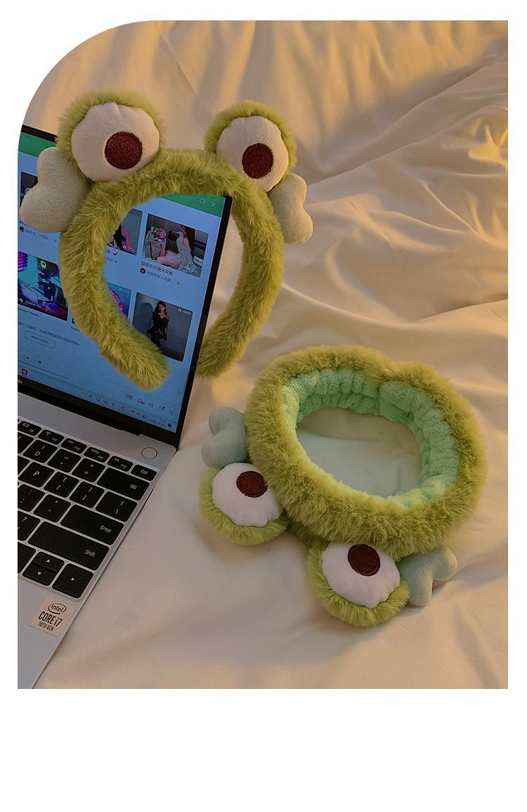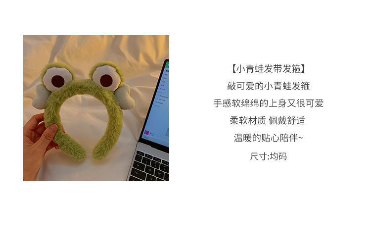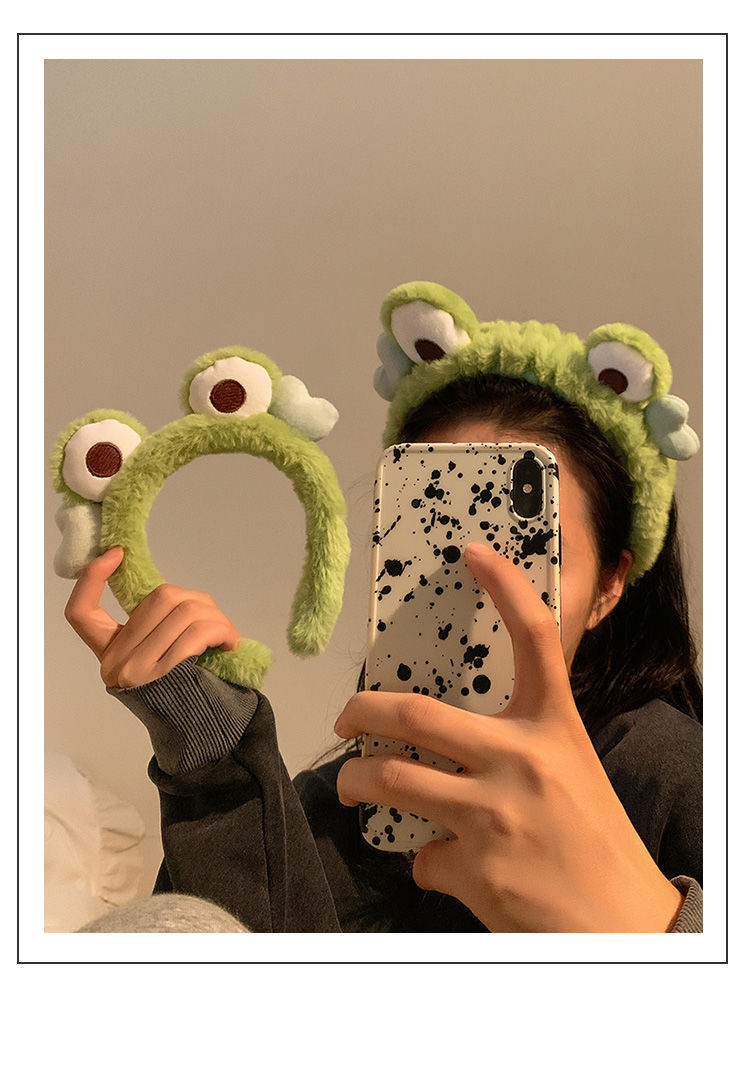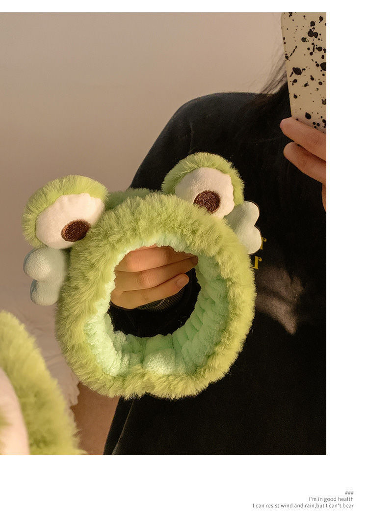가을과 겨울 귀여운 작은 개구리 헤어 밴드 여성용 워시 페이스 적용 마스크 머리띠 만화 한국 스타일 봉제 헤어 밴드 인터넷 연예인 같은 스타일스토어 가기