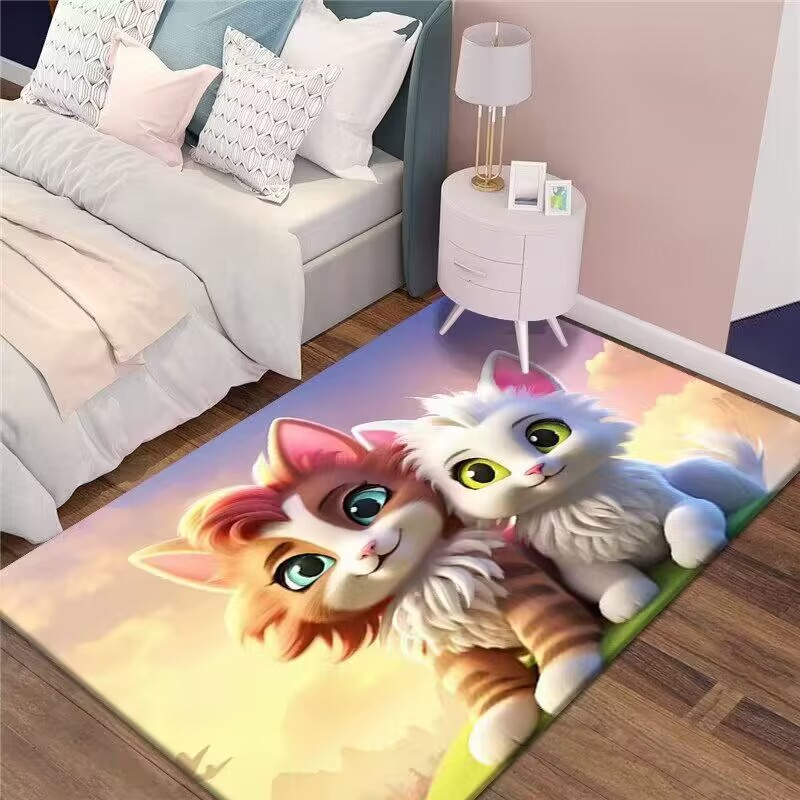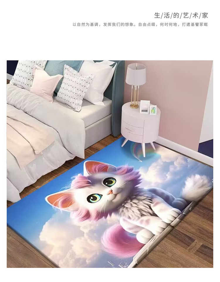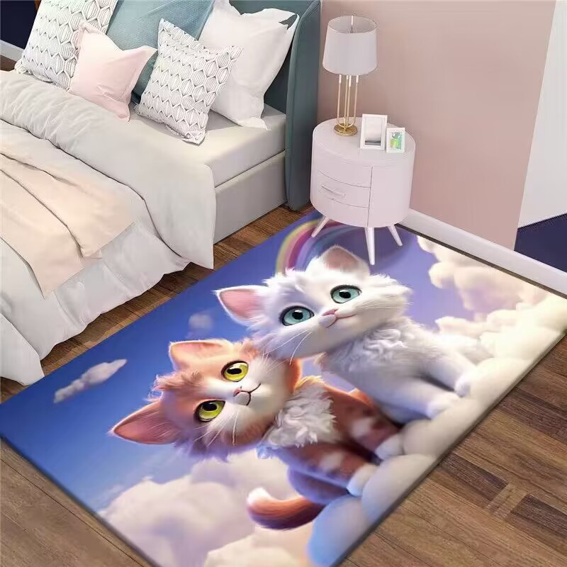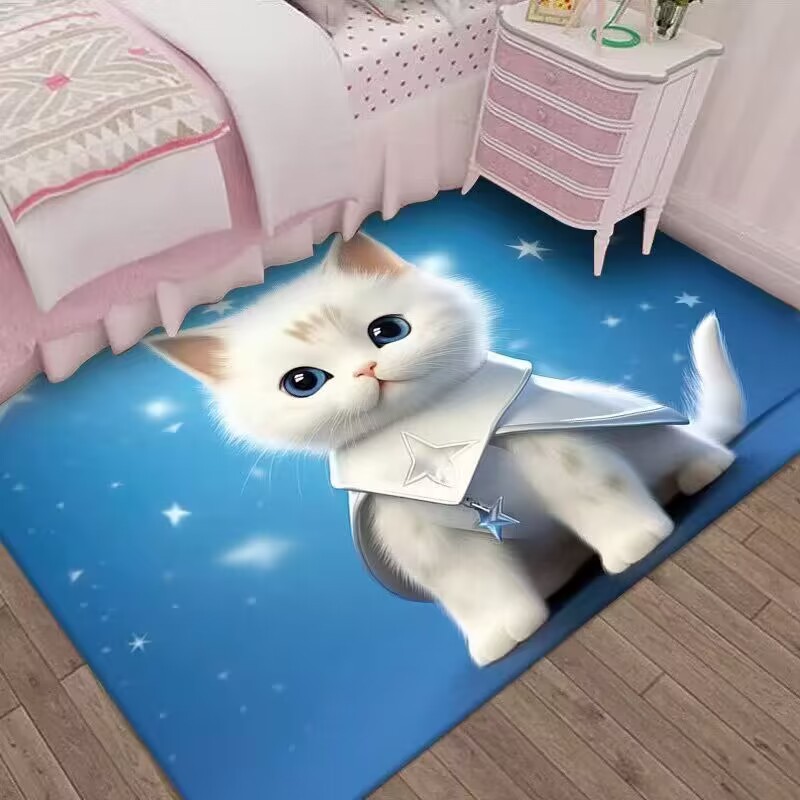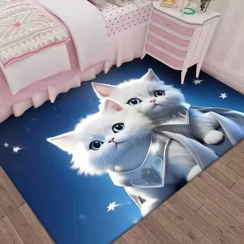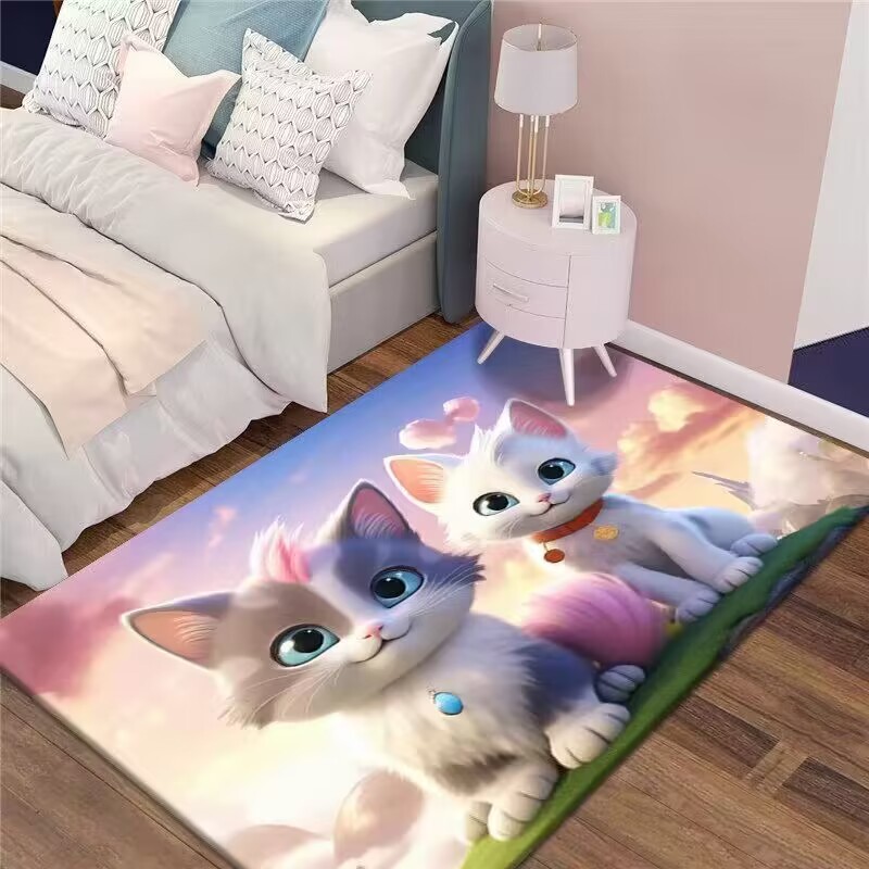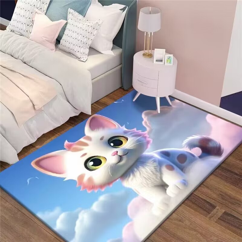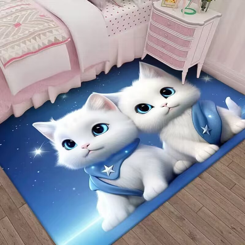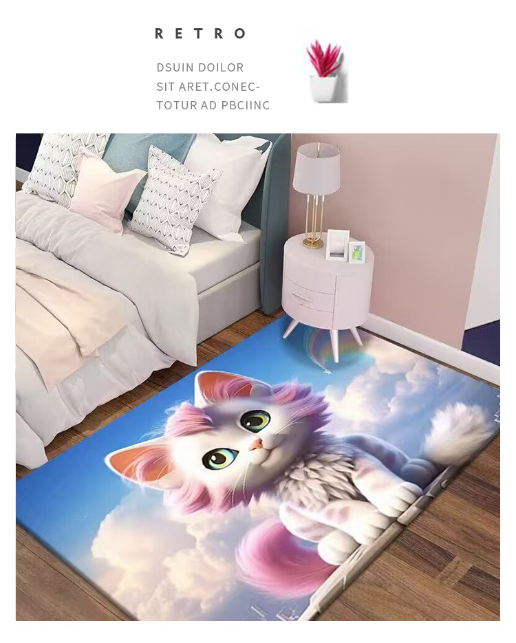 만화 3D 고양이 크리스탈 벨벳 카펫 홈 거실 소파 커피 테이블 카펫 어린이 방 전체 상점 머리카락을 대체 할 수 있습니다스토어 가기