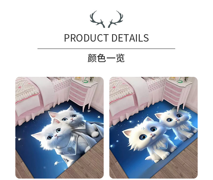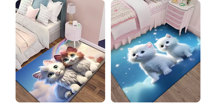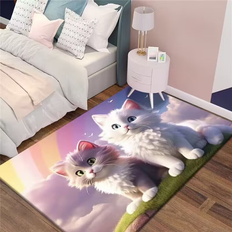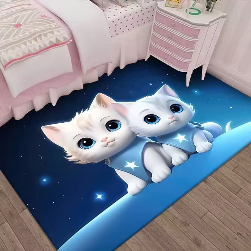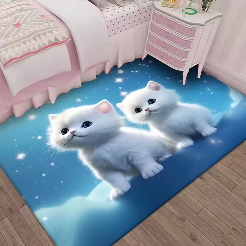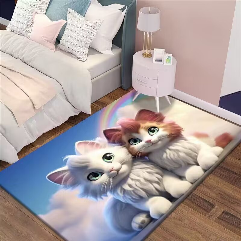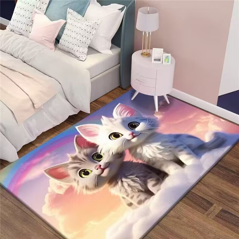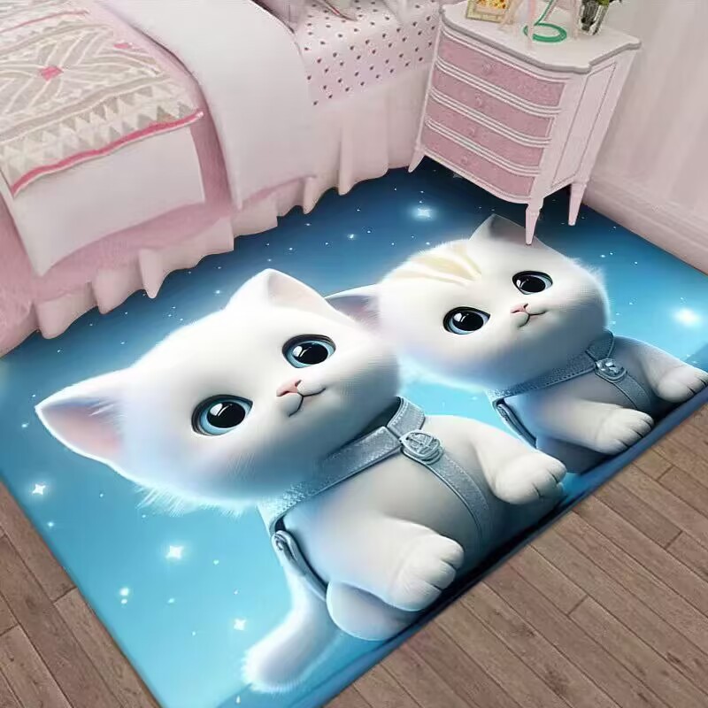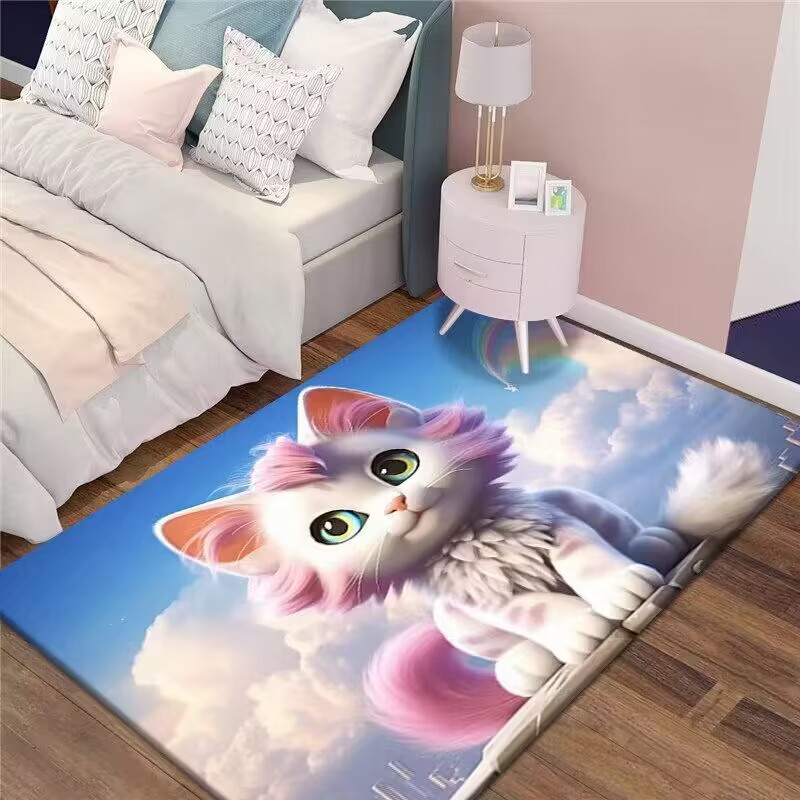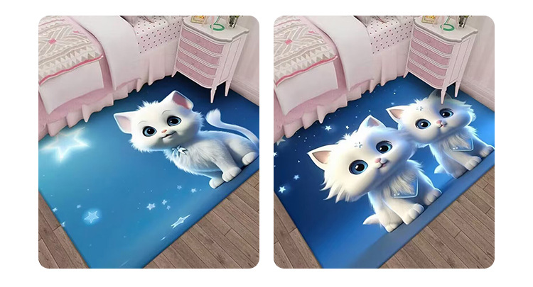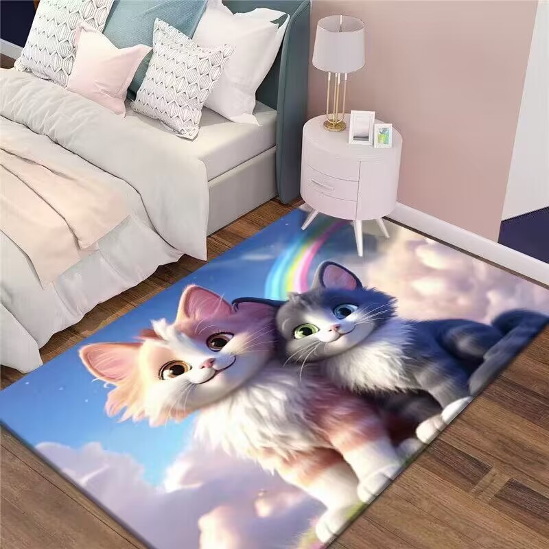 만화 3D 고양이 크리스탈 벨벳 카펫 홈 거실 소파 커피 테이블 카펫 어린이 방 전체 상점 머리카락을 대체 할 수 있습니다스토어 가기