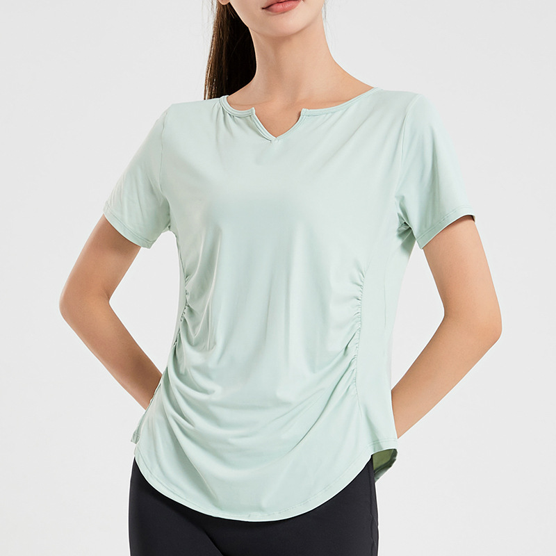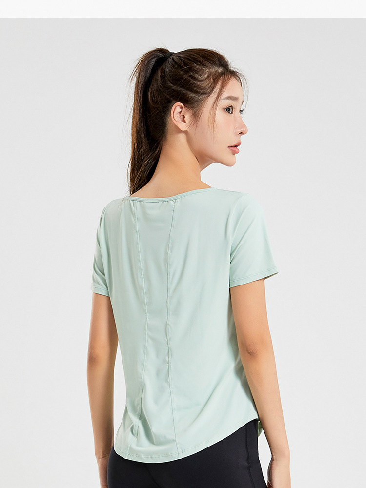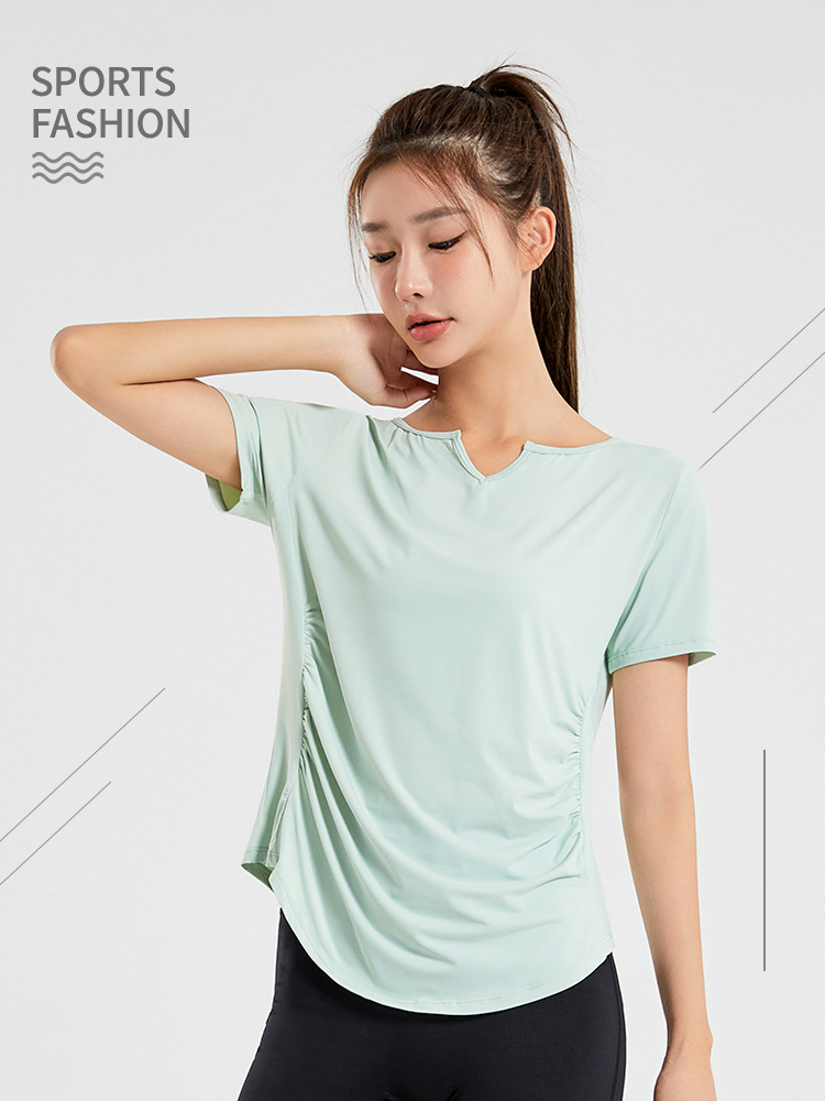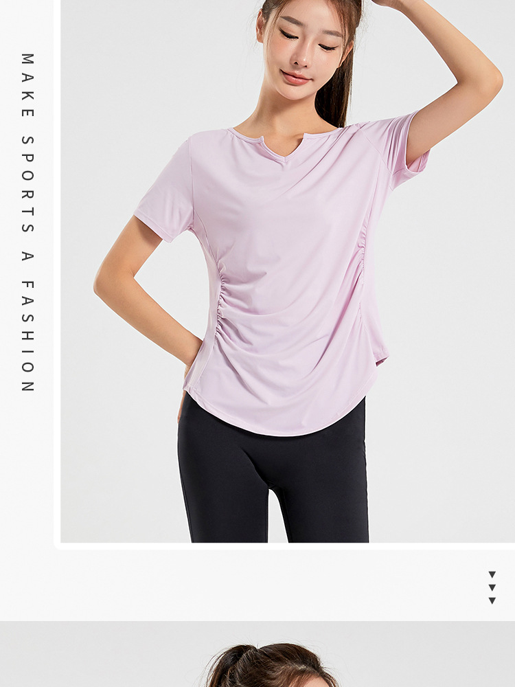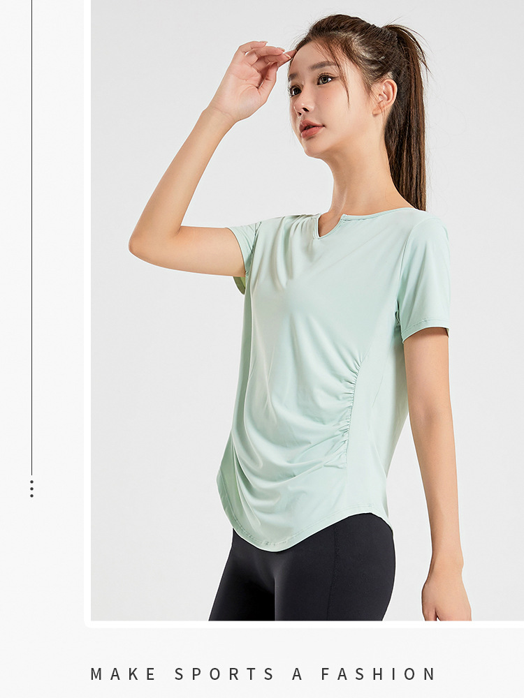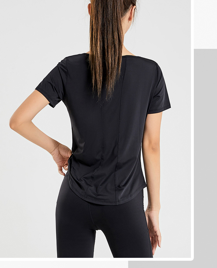 플러스 사이즈 요가 의류 여성의 속건 피트니스 의류 스포츠 탑 필라테스 트레이닝 반팔 의류 러닝 티셔츠 모닝 런