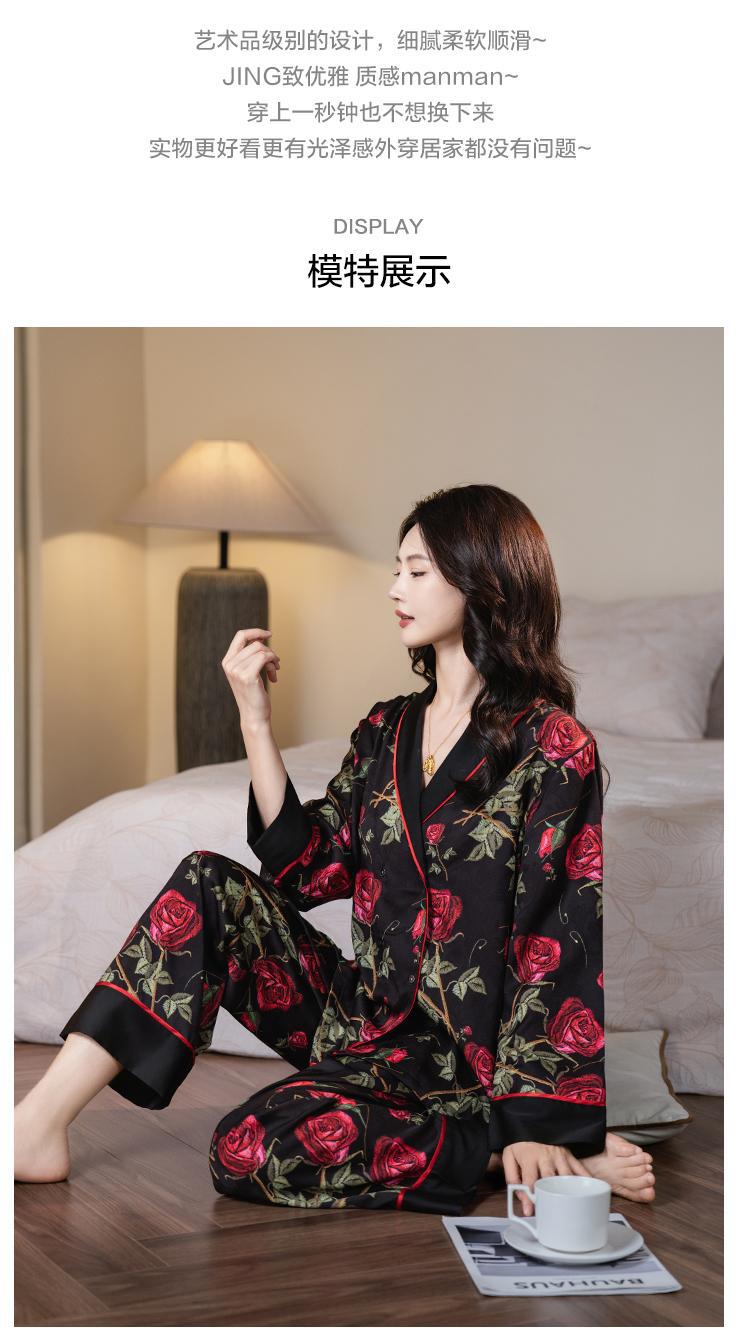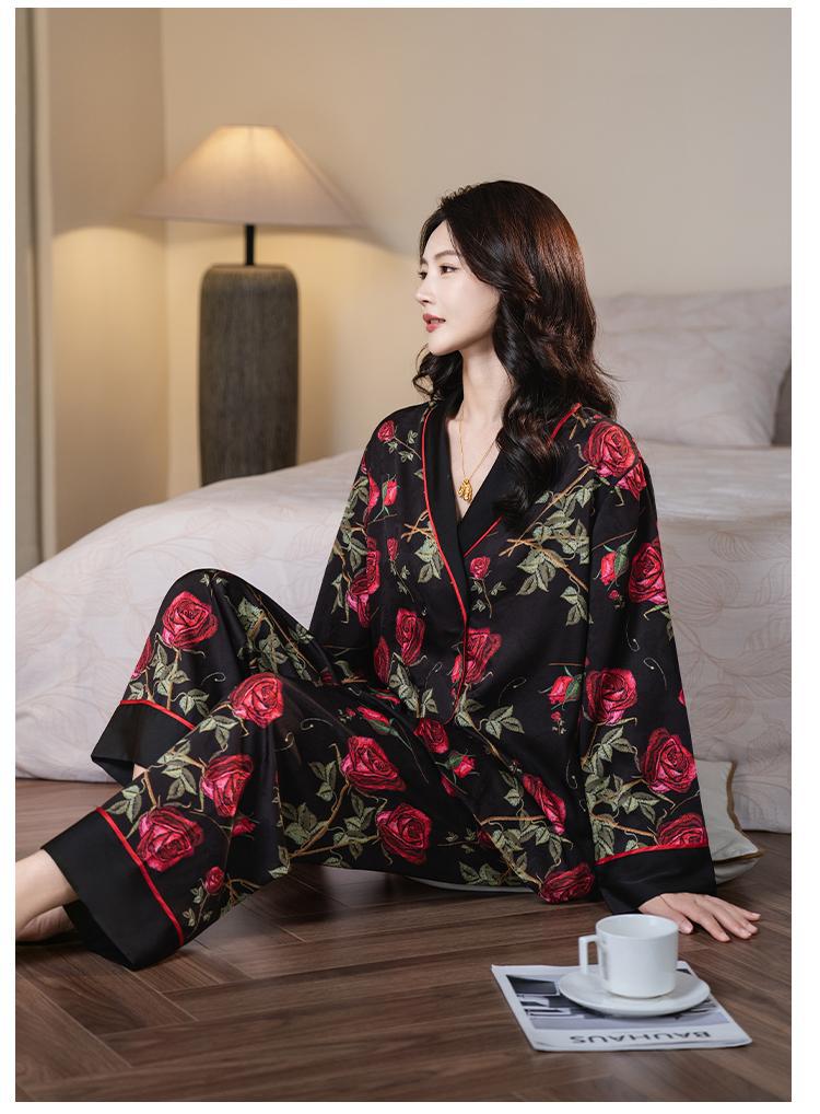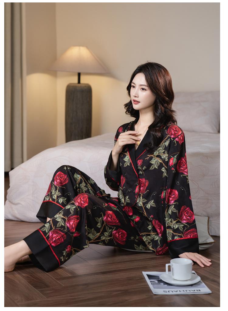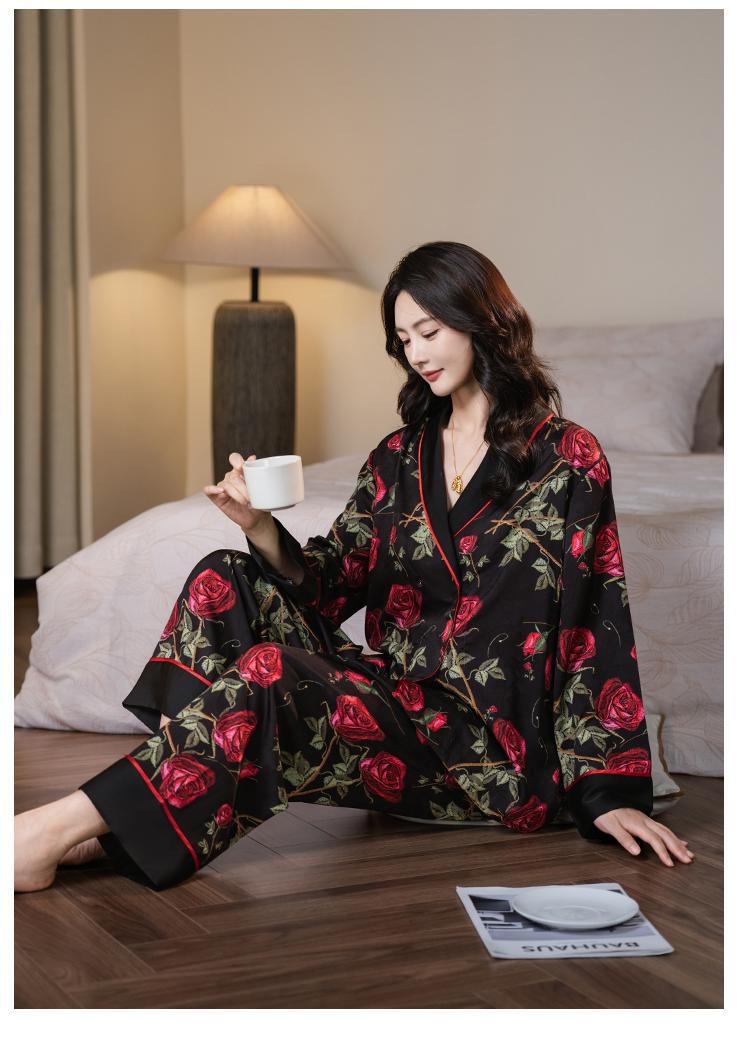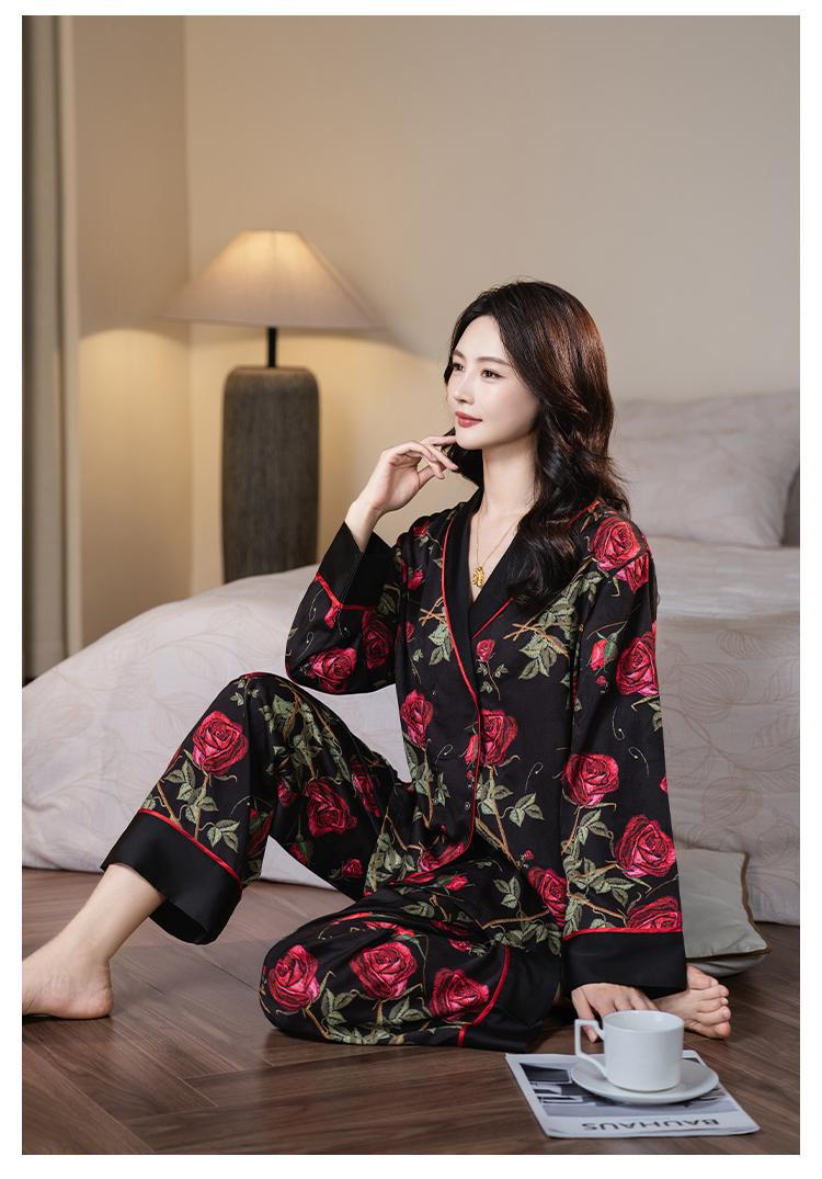 다빈치 코드 잠옷 여성용 블랙 골드 로즈 고급스러운 아이스 실크 인기 홈웨어 세트 외출복으로도 가능