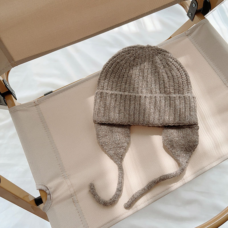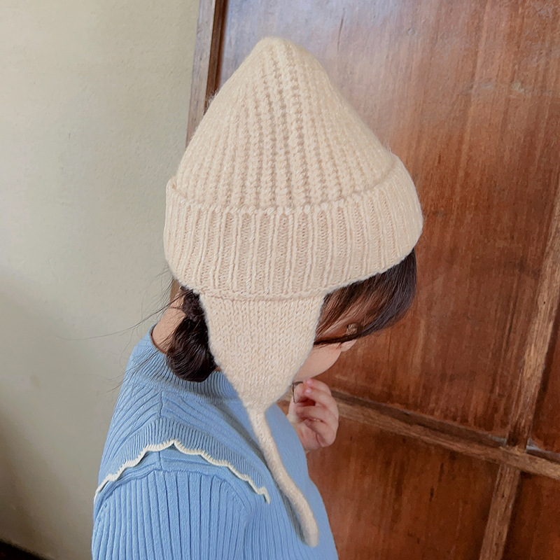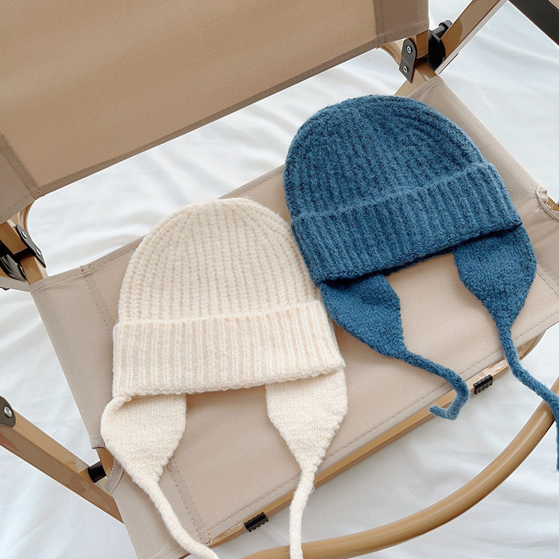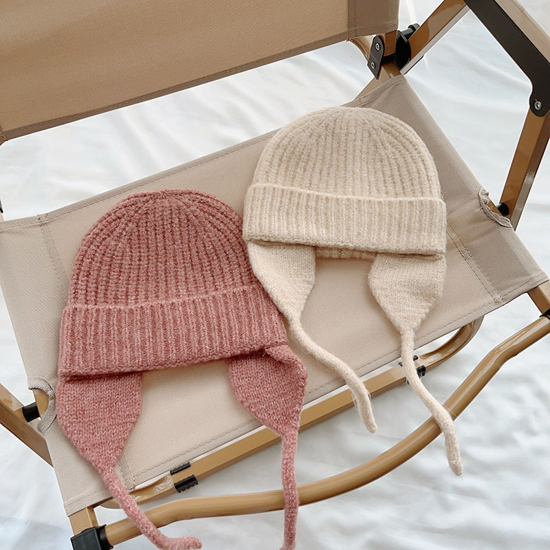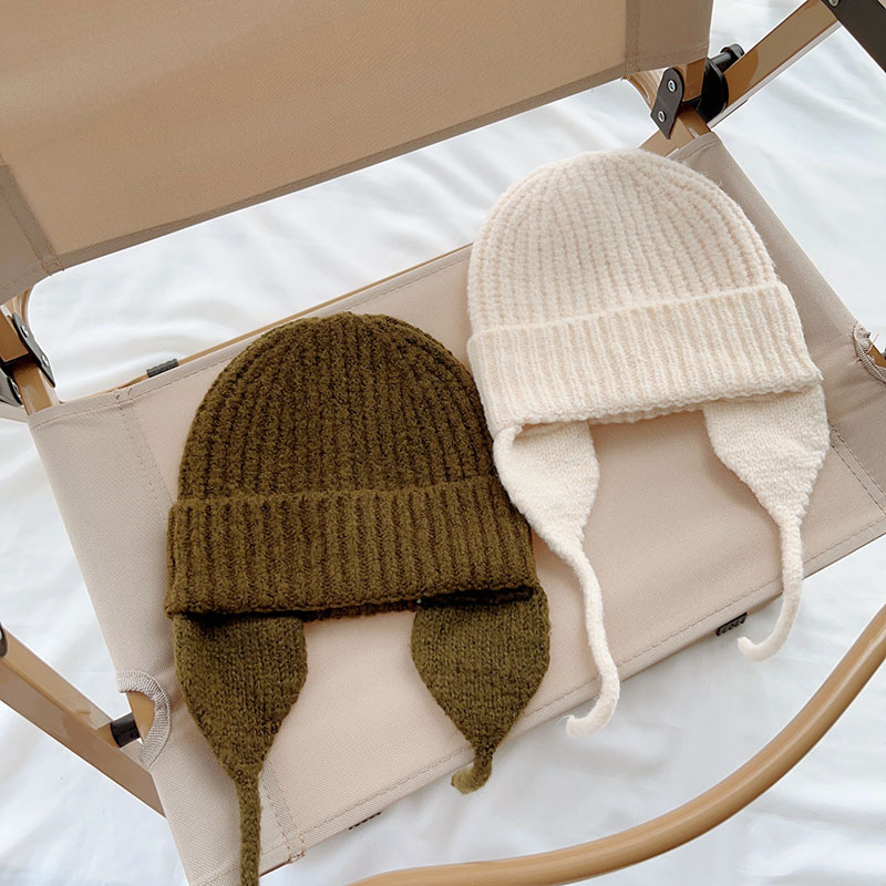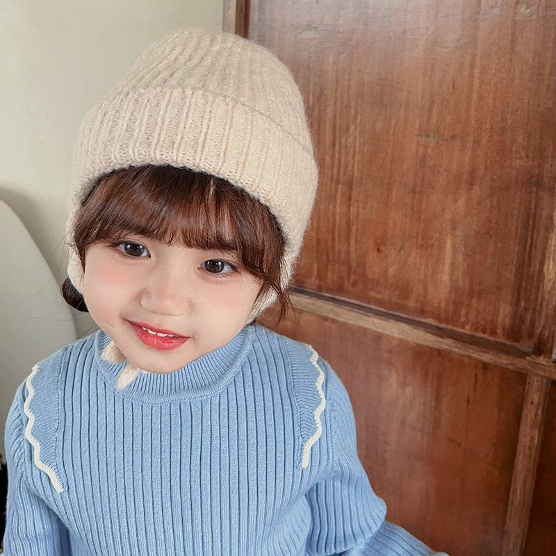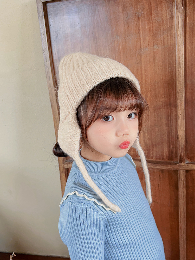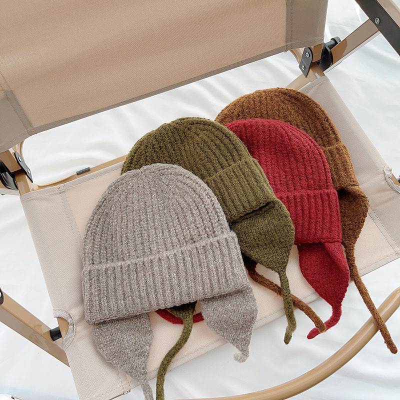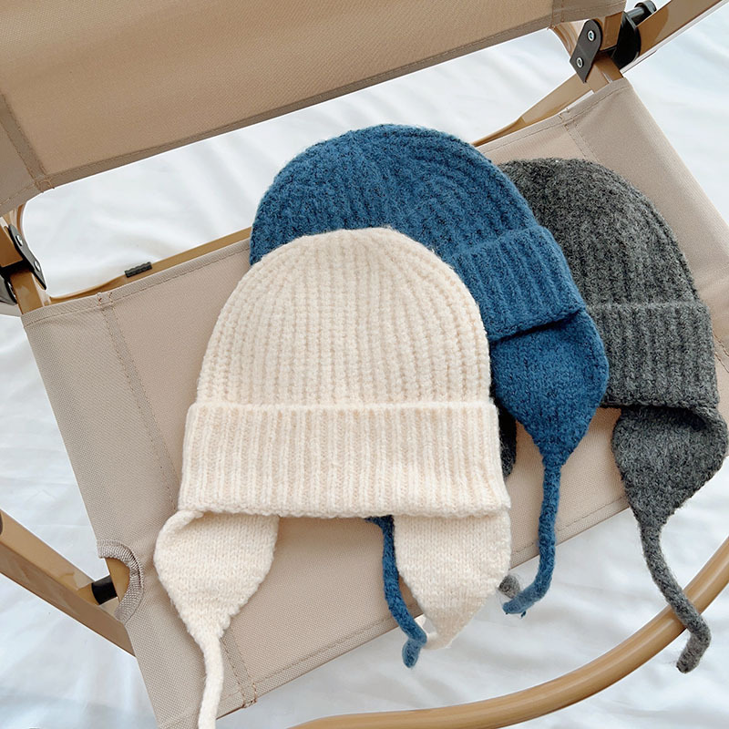 일본식 어린이 니트 귀 보호 모자 새로운 가을, 겨울 어두운 색상 우아한 따뜻한 모직 모자 단색 니트 모자스토어 가기