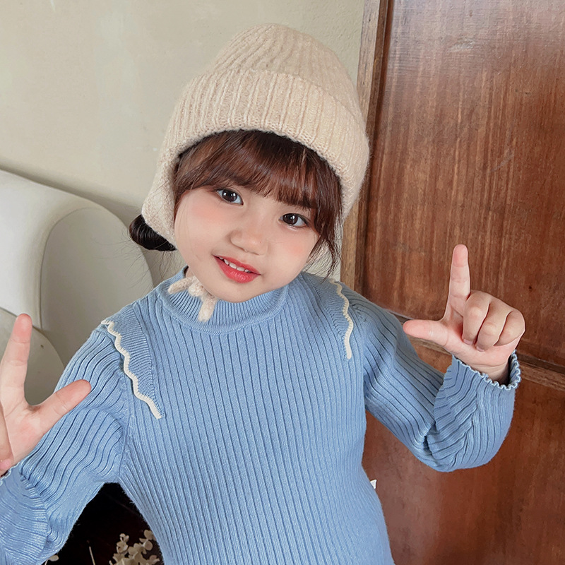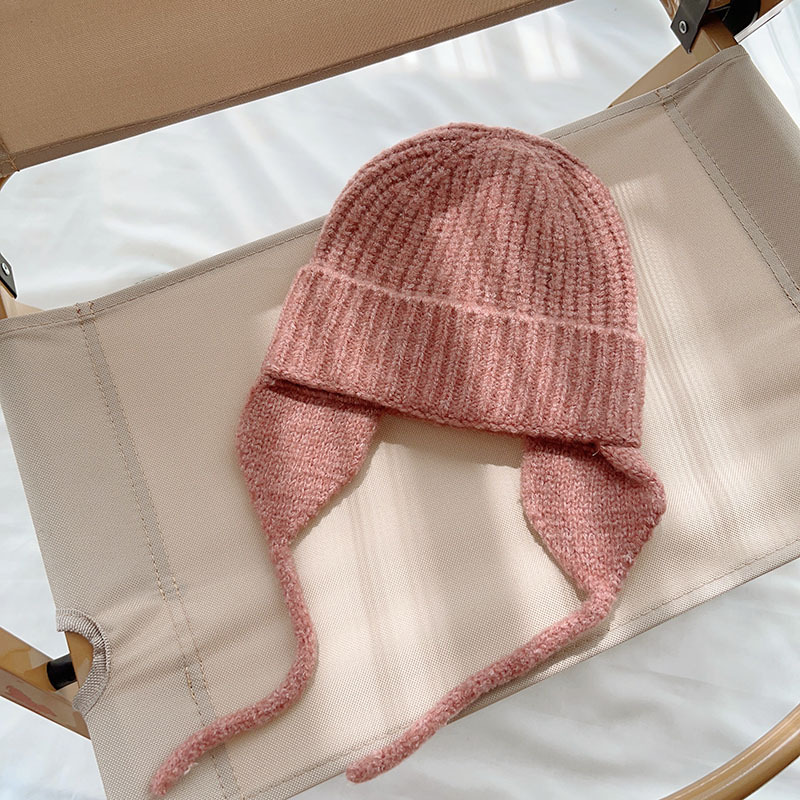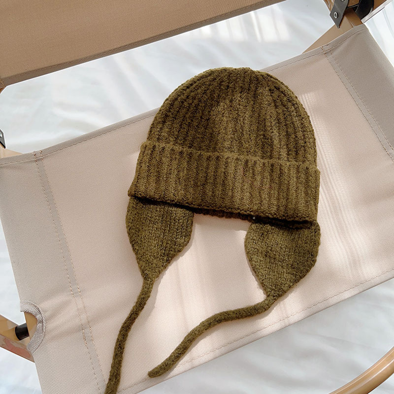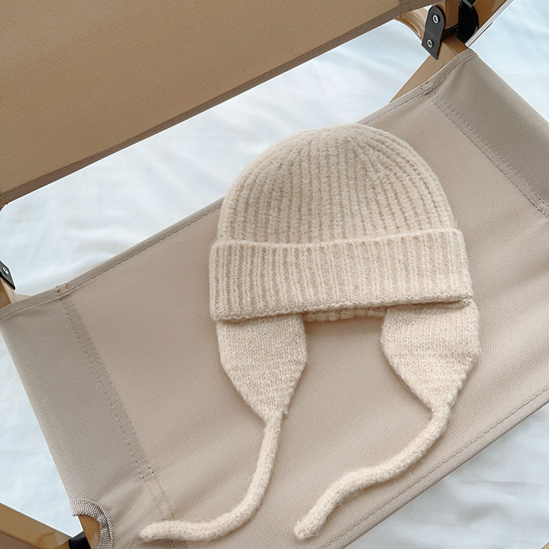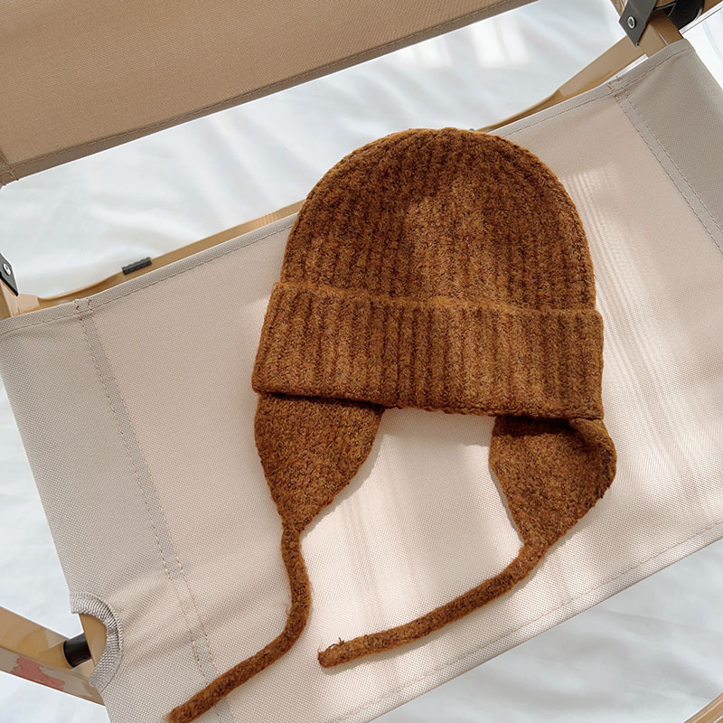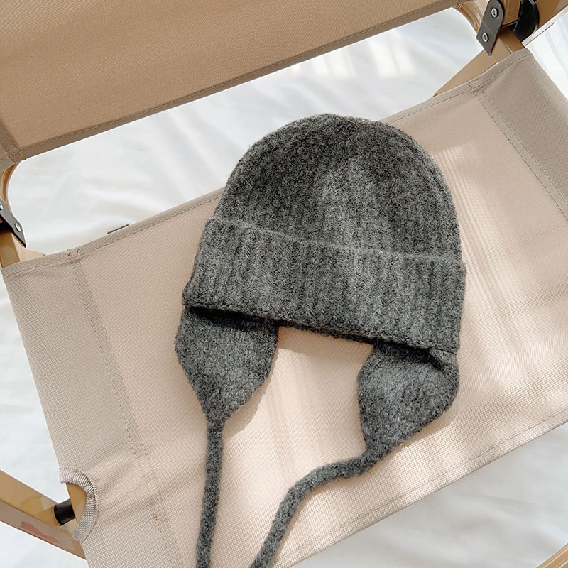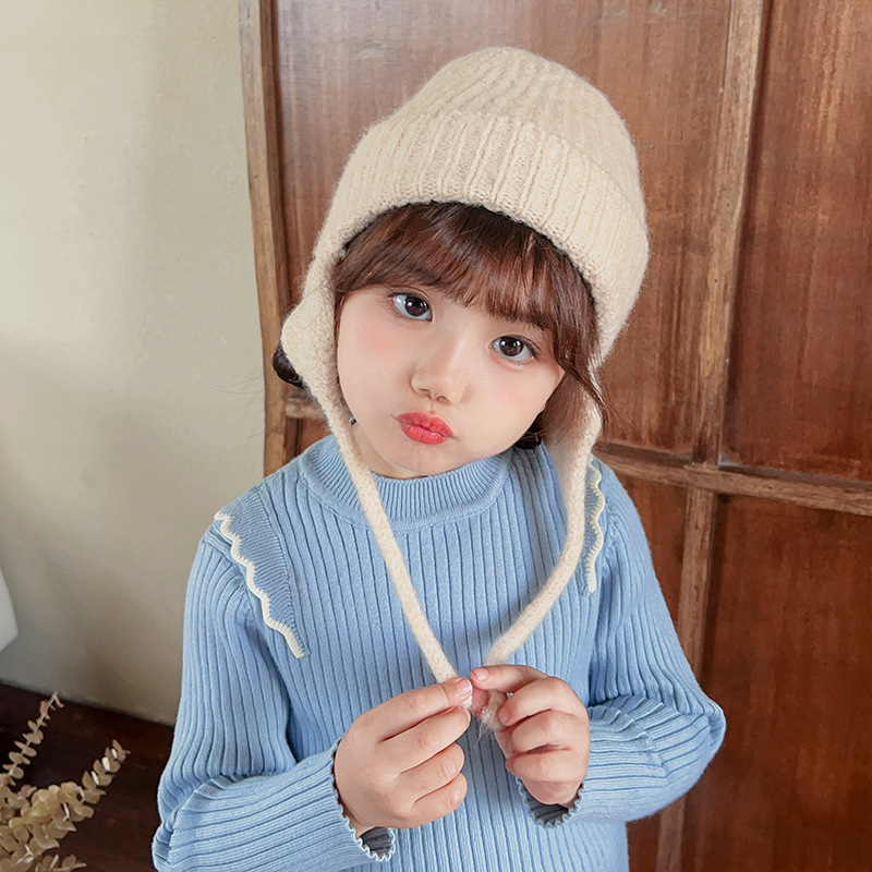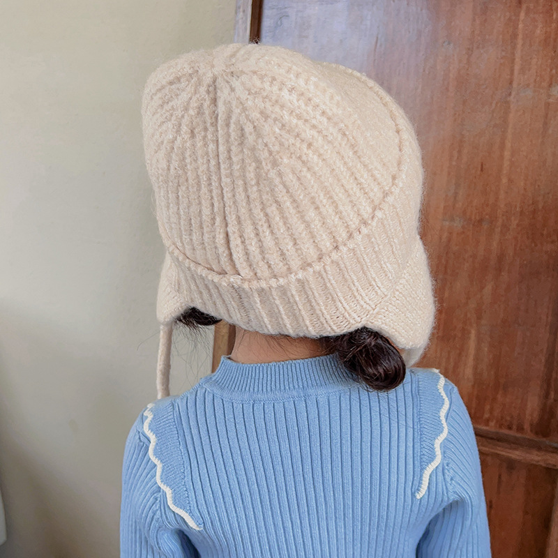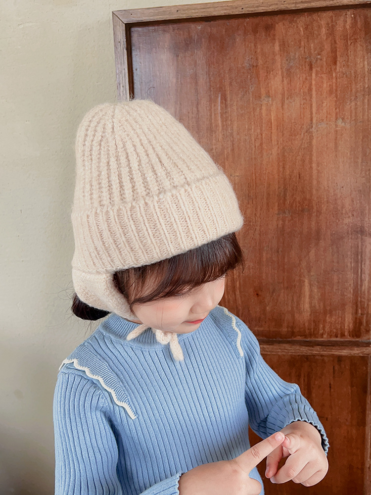 일본식 어린이 니트 귀 보호 모자 새로운 가을, 겨울 어두운 색상 우아한 따뜻한 모직 모자 단색 니트 모자스토어 가기