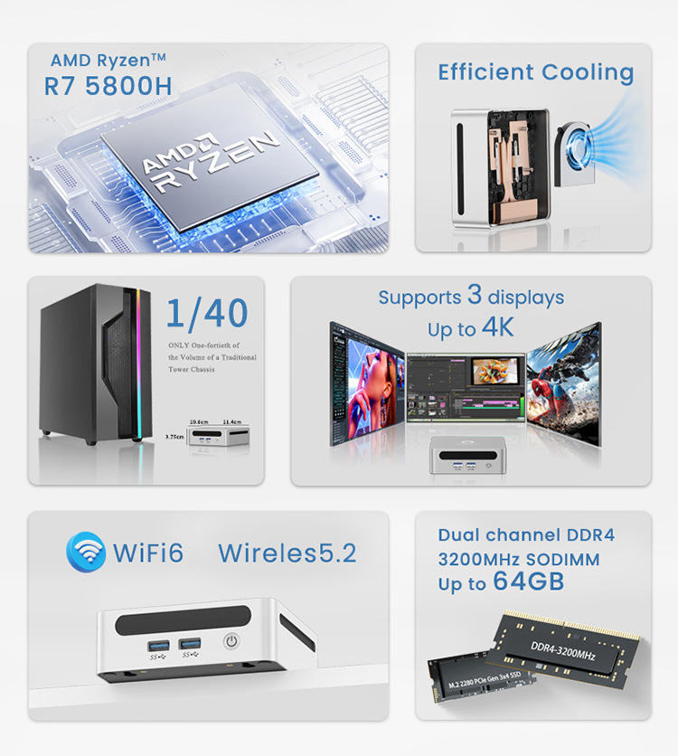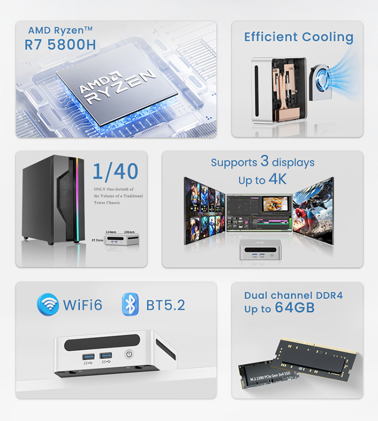 기계 Jun MINI 컴퓨터 작은 호스트 Ruilong R7-5800H 게임 LOL 비즈니스 오피스 디자인 미니 PC