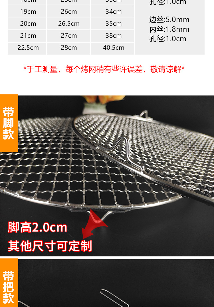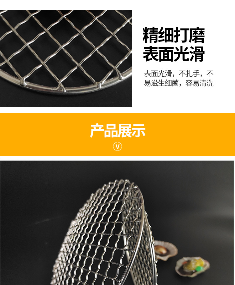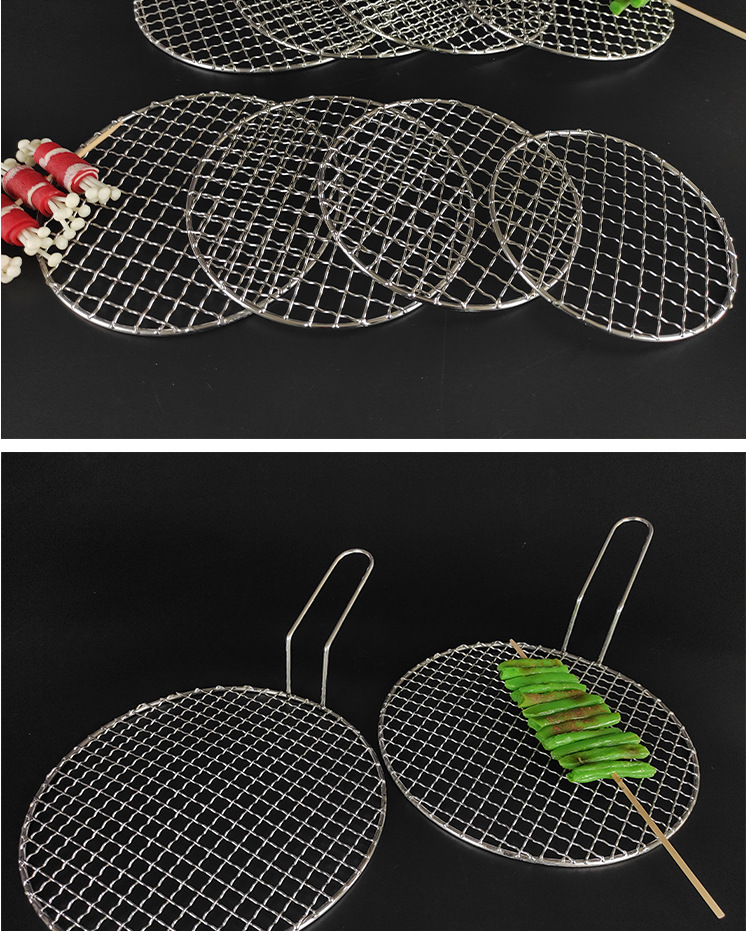 스테인레스 스틸 바베큐 메쉬 라운드 두꺼운 두꺼운 기름 격자 격자 가정용 야외 전기 오븐 탄소 불 바베큐 철 메쉬스토어 가기