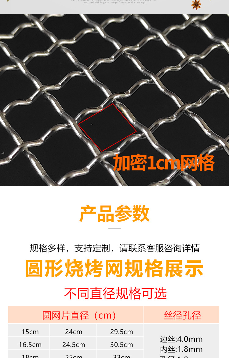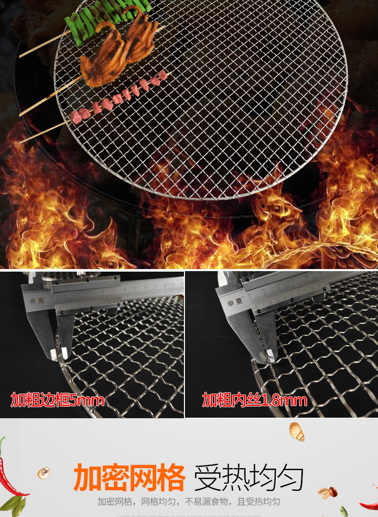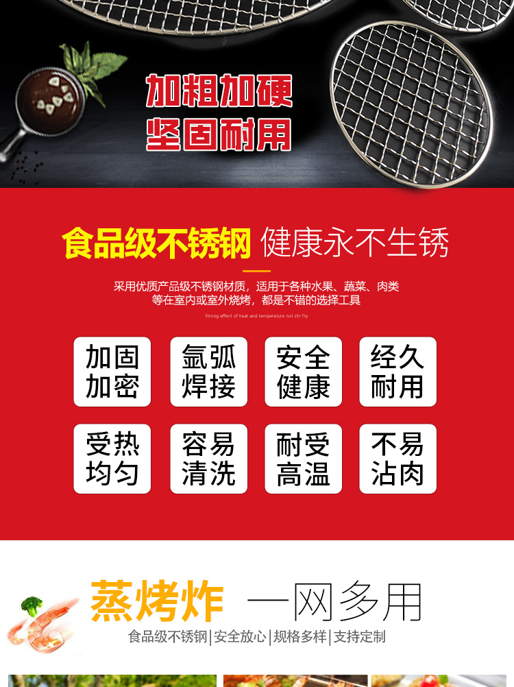 스테인레스 스틸 바베큐 메쉬 라운드 두꺼운 두꺼운 기름 격자 격자 가정용 야외 전기 오븐 탄소 불 바베큐 철 메쉬