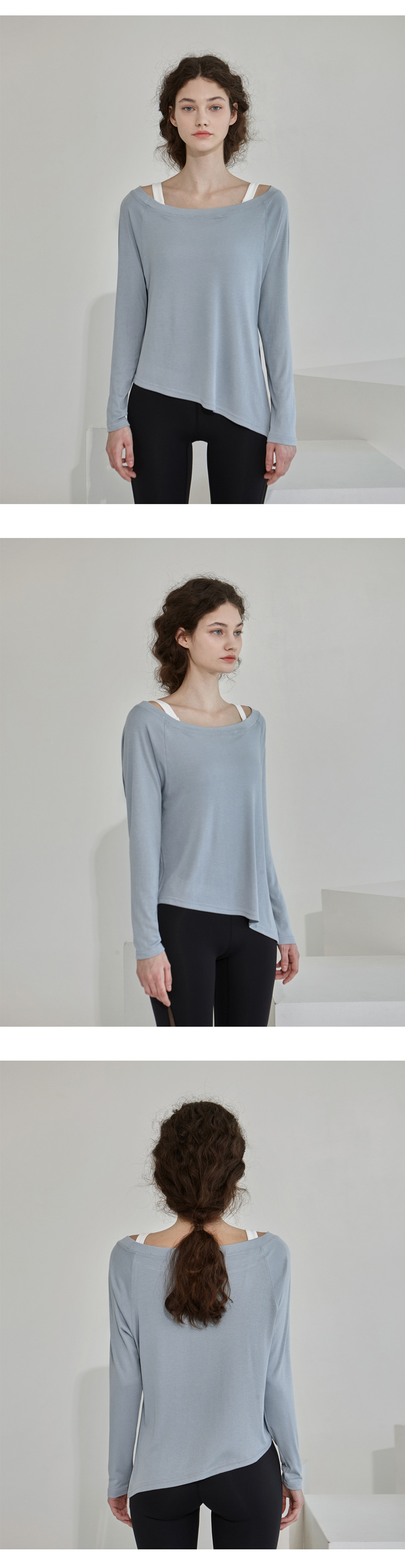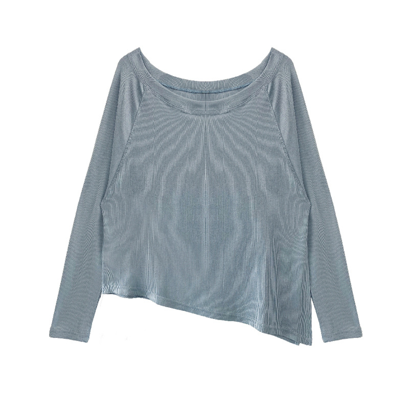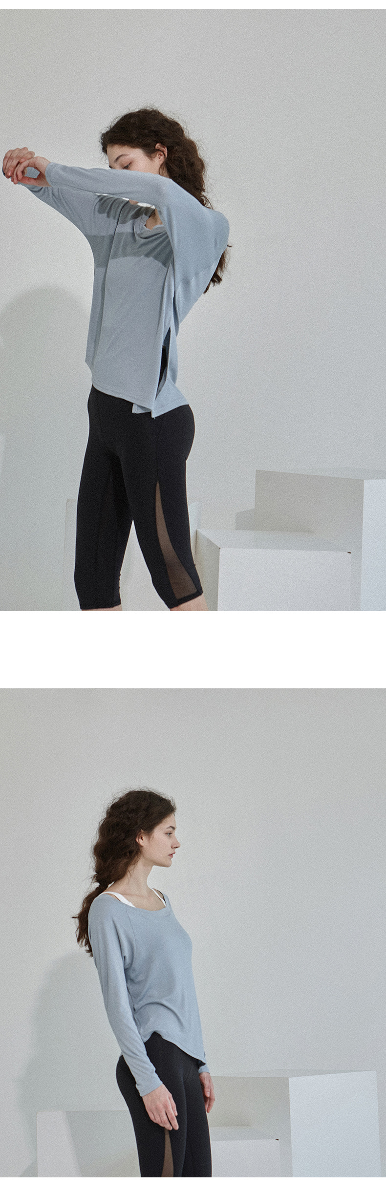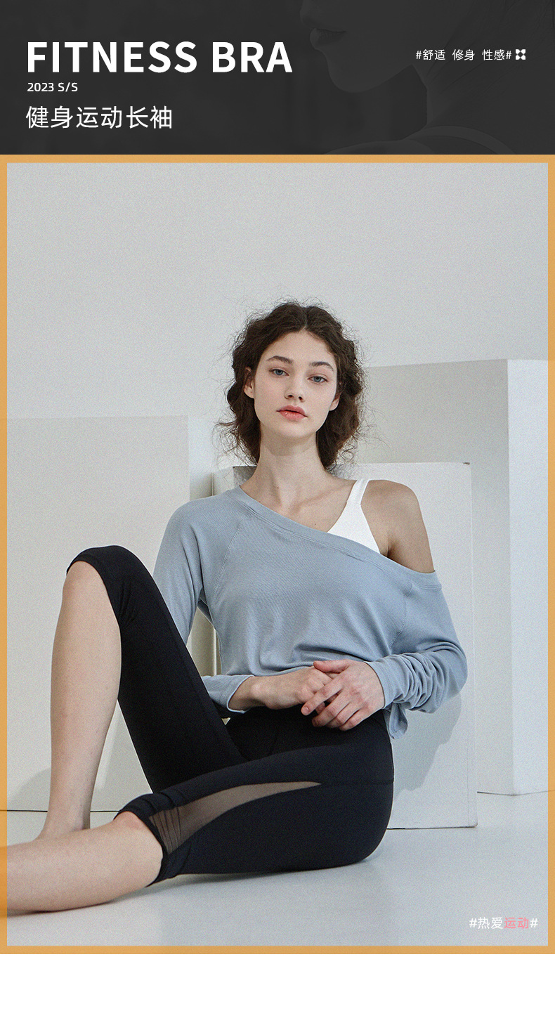 새로운 간단한 긴팔 요가 의류 티셔츠 경사 밑단 통풍구 허리 통기성 피트니스 스포츠 탑 여성용 댄스 티셔츠스토어 가기