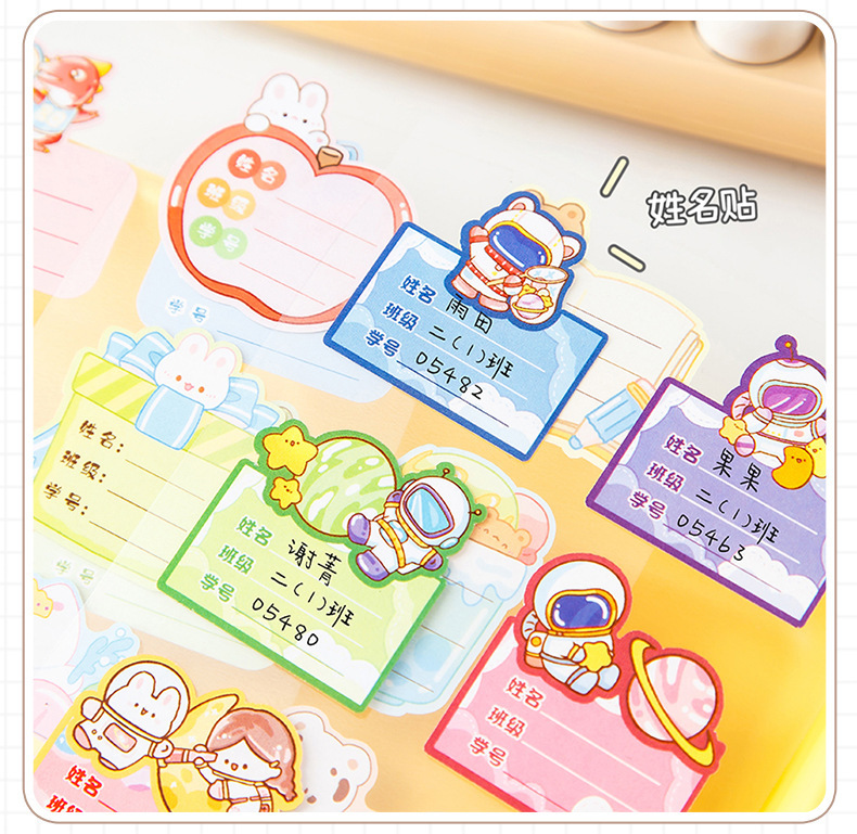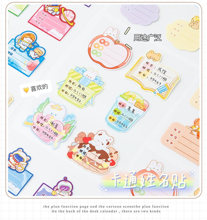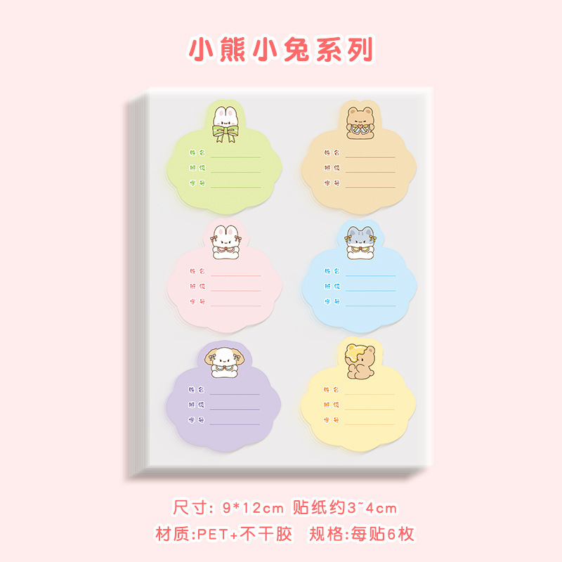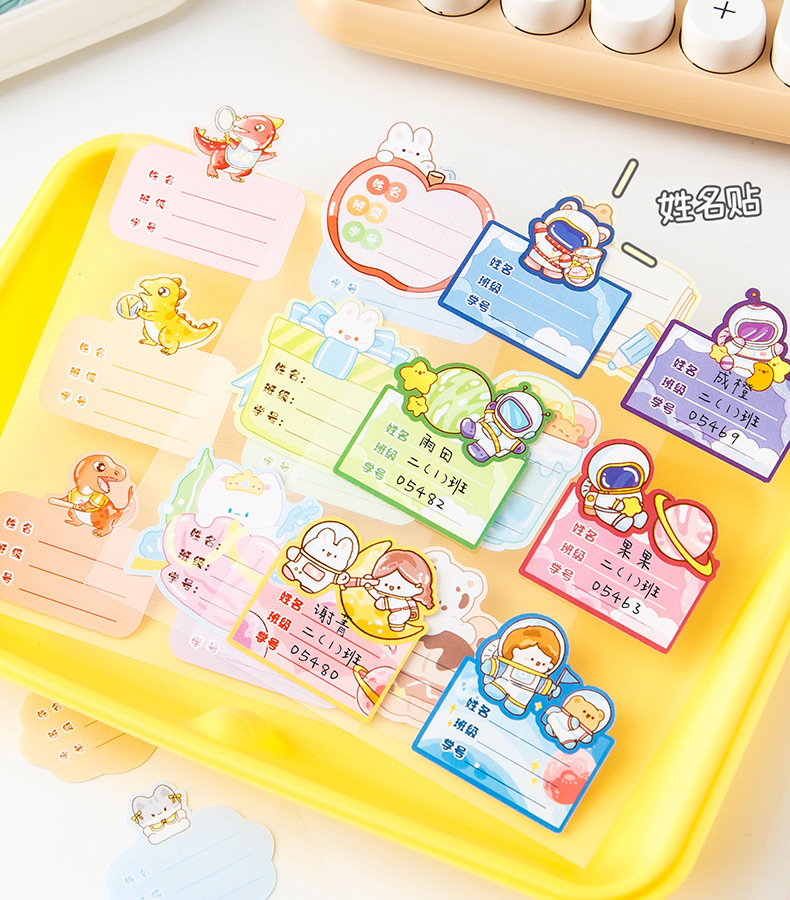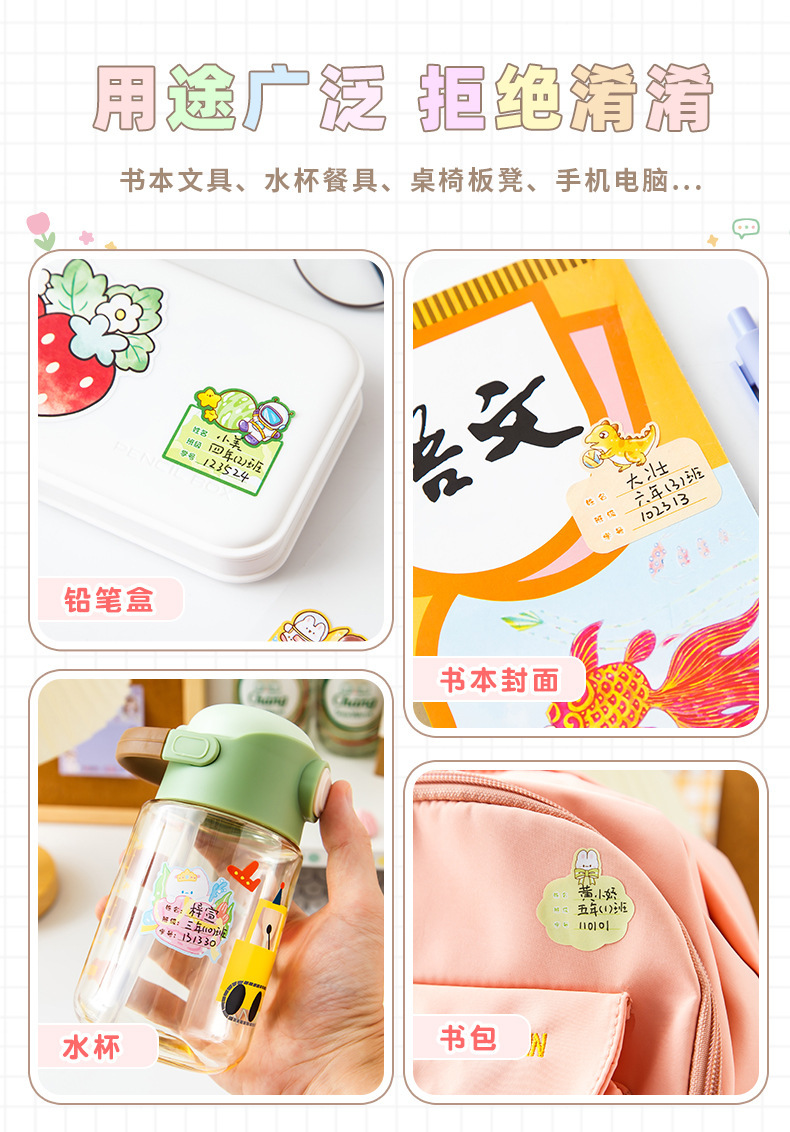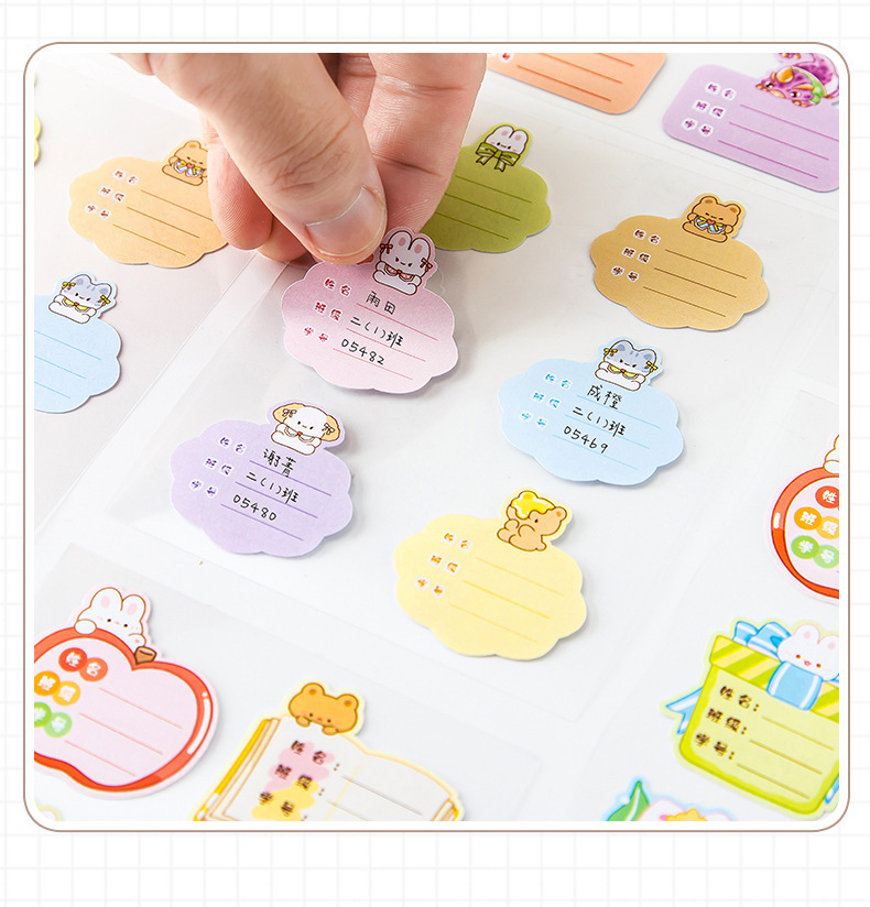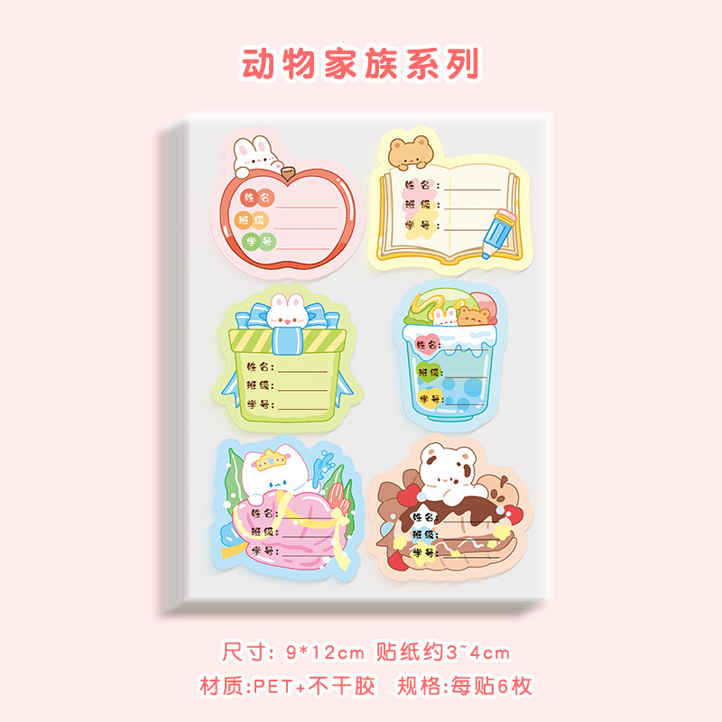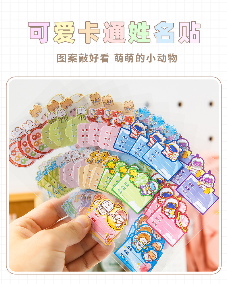 귀여운 PET 이름 스티커 만화 방수 학생 이름 스티커 어린이 라벨 스티커 필기 문구 스티커 도매