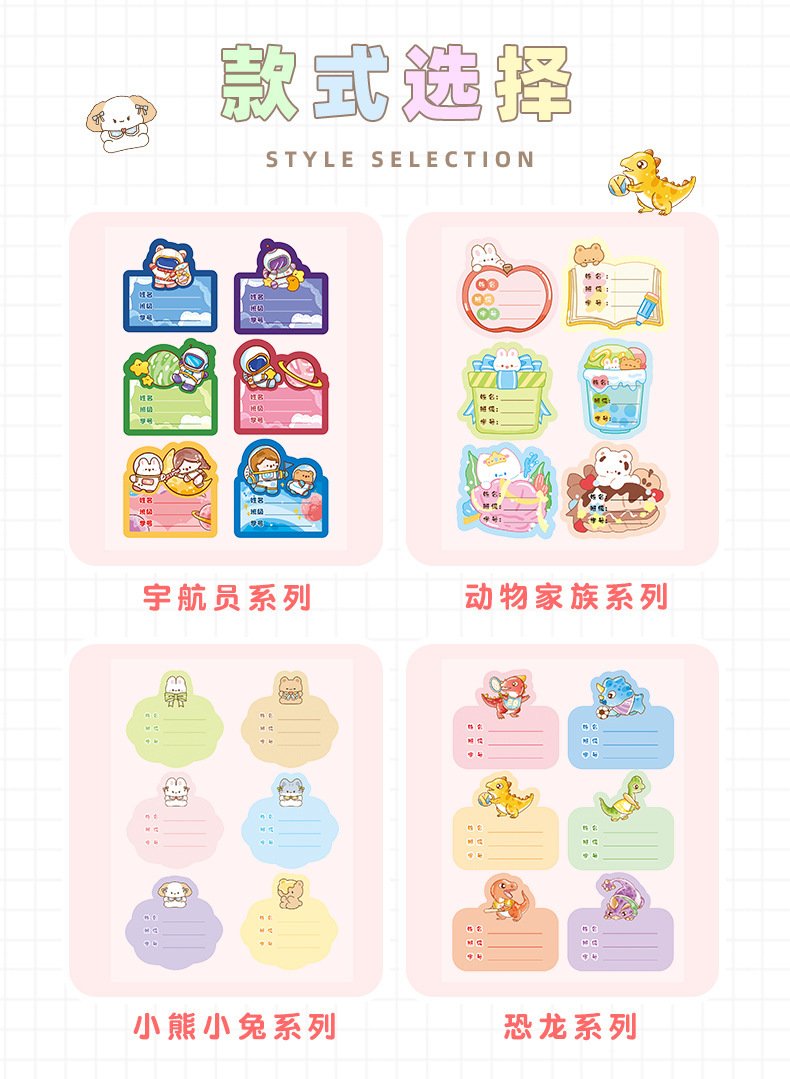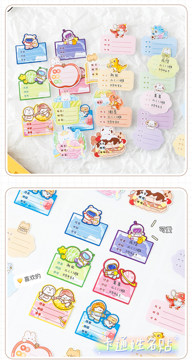 귀여운 PET 이름 스티커 만화 방수 학생 이름 스티커 어린이 라벨 스티커 필기 문구 스티커 도매스토어 가기