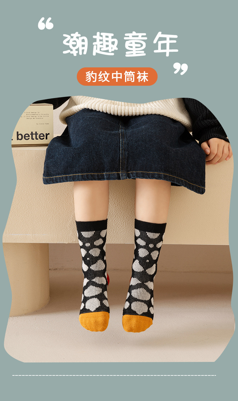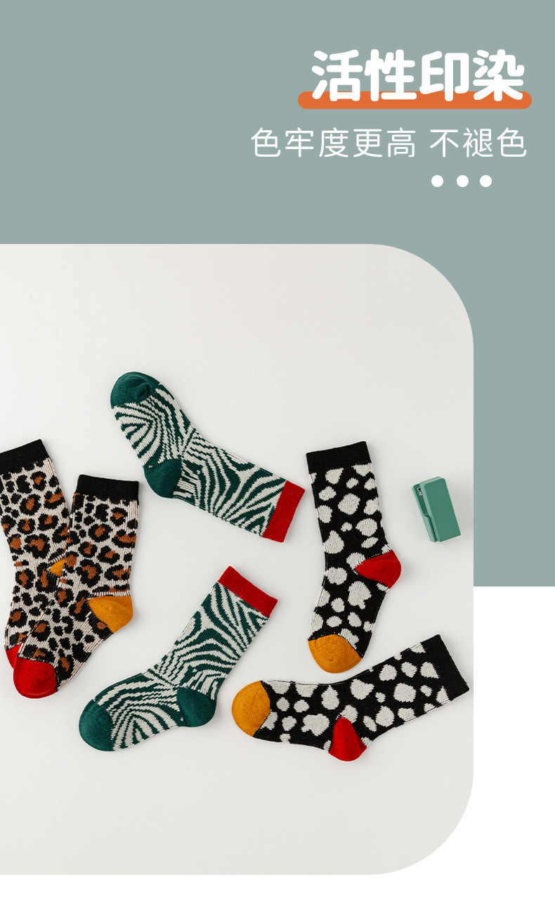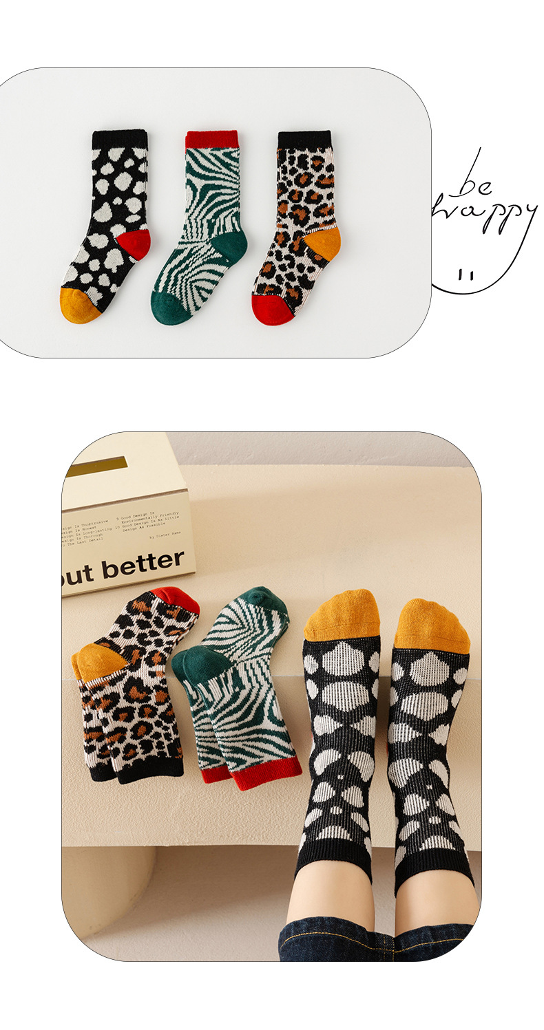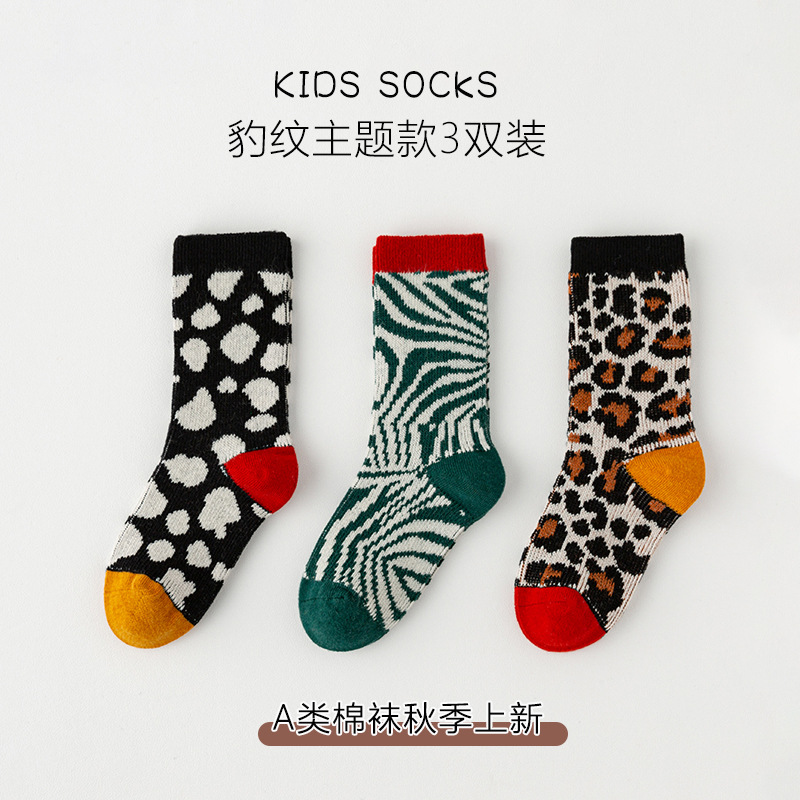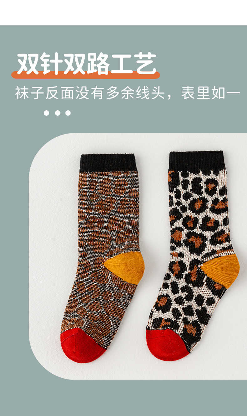 가을과 겨울 새로운 어린이 튜브 양말 간단한 복고풍 이중 바늘 더블 도로 소년과 소녀 양말 레오파드 무늬 아기 양말 도매스토어 가기