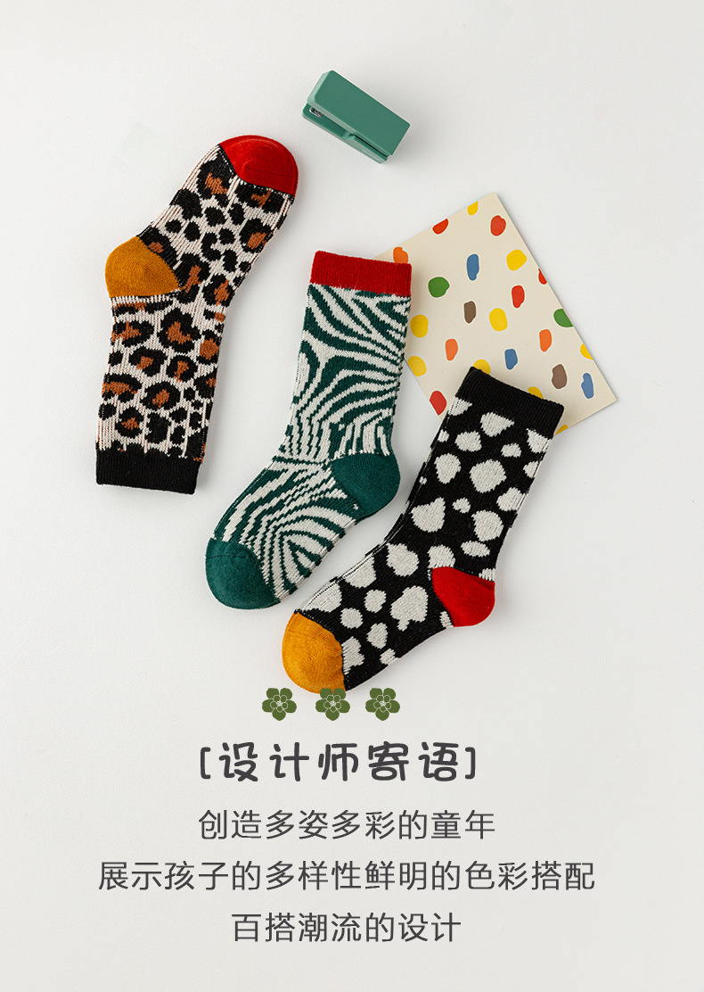 가을과 겨울 새로운 어린이 튜브 양말 간단한 복고풍 이중 바늘 더블 도로 소년과 소녀 양말 레오파드 무늬 아기 양말 도매