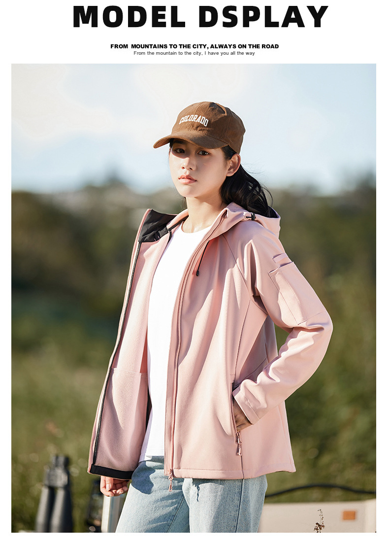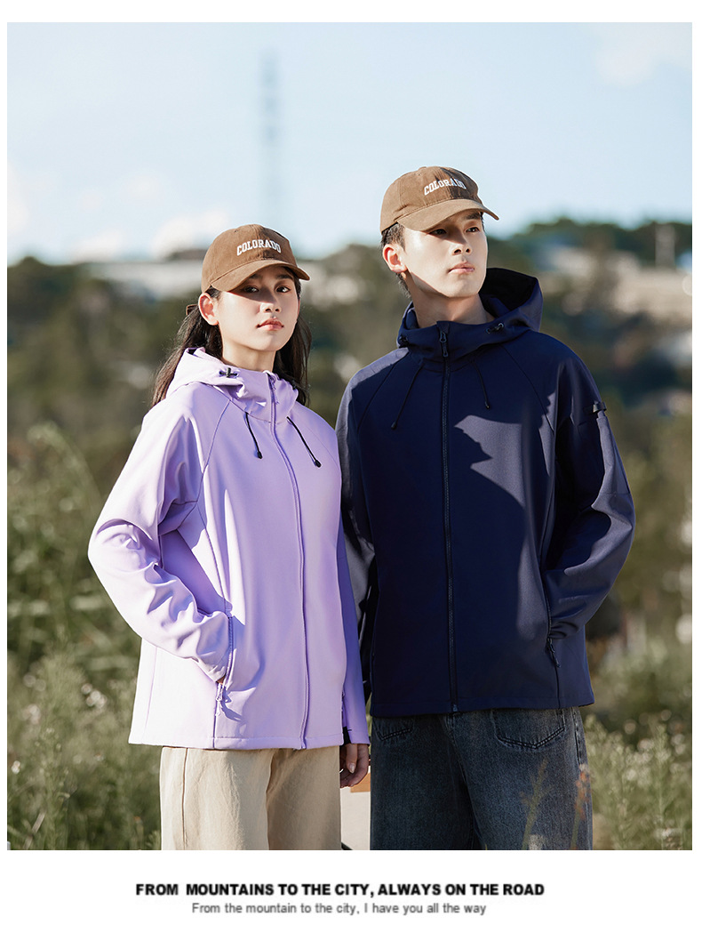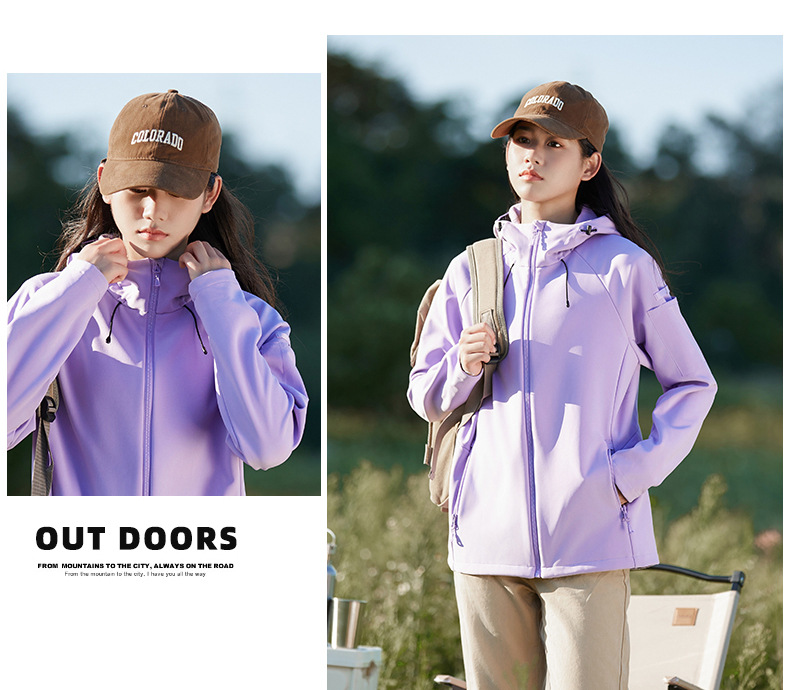 24 가을과 겨울 야외 소프트 쉘 의류 여성의 반 튀는 바람 기술 경량 코트 남성 폭행 의류 등산 의류