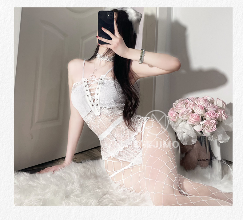 섹시한 잠옷 투명 란제리 레이스 원피스 옷 노 이륙 가랑이 유니폼 유혹 세트 중공 8053스토어 가기
